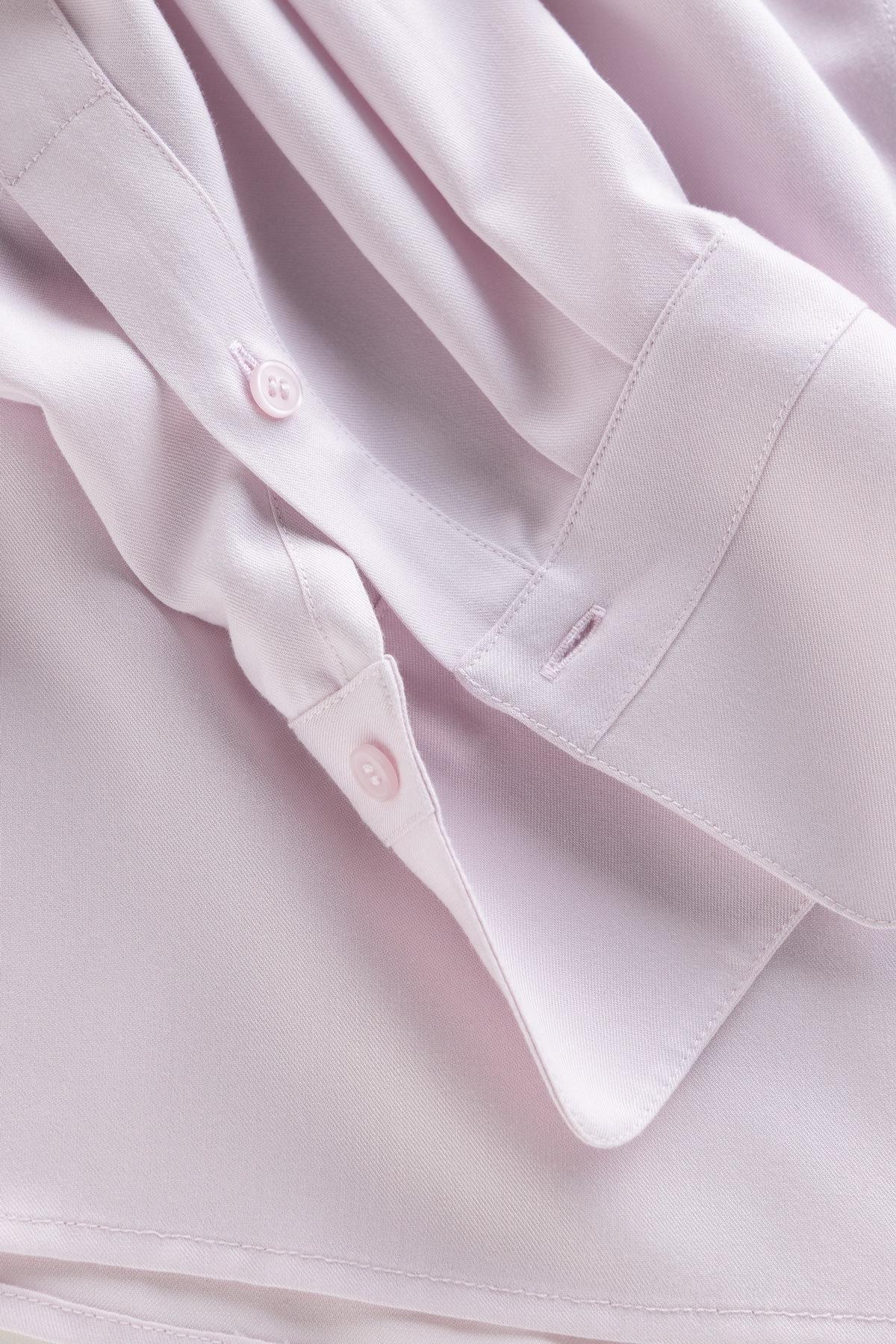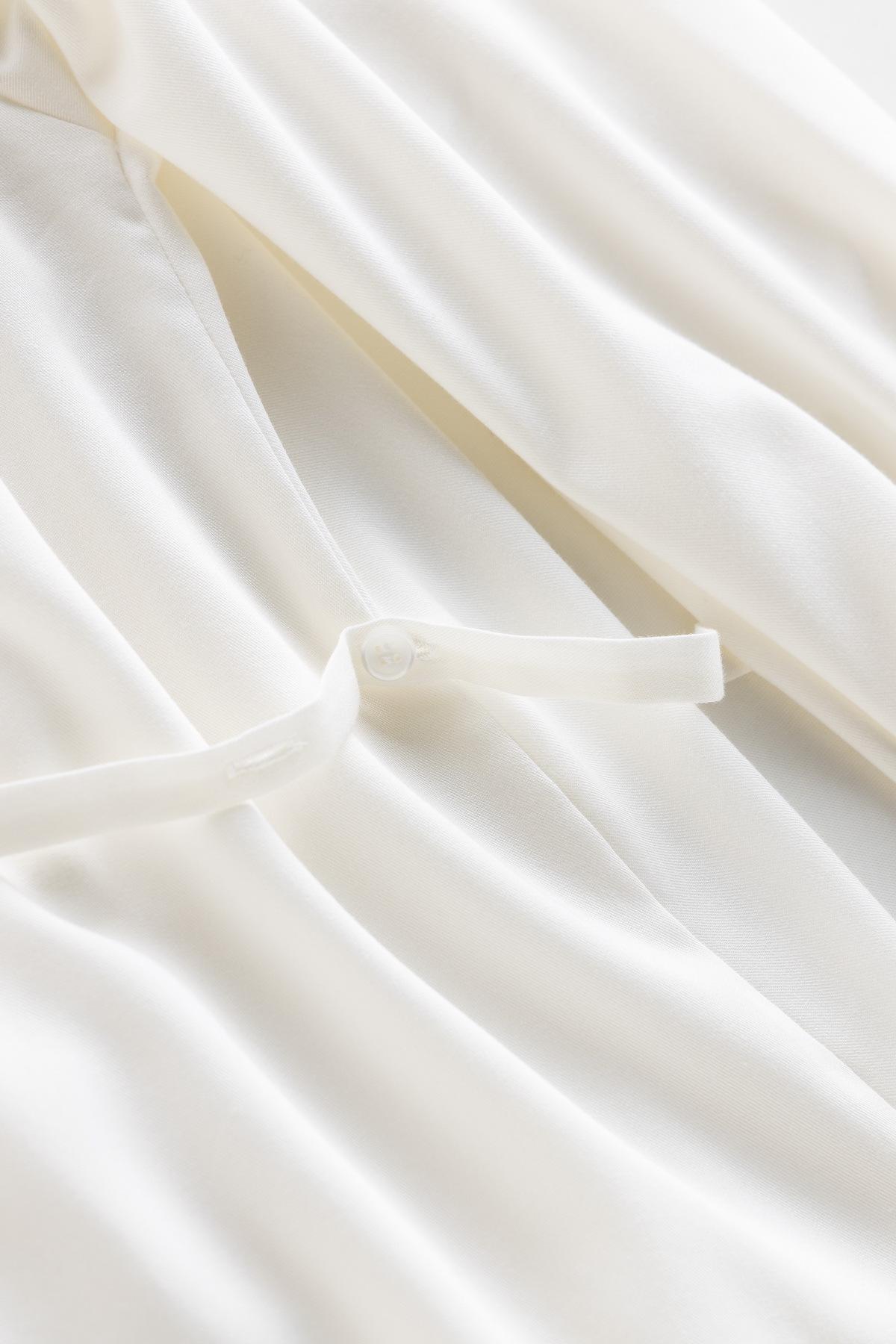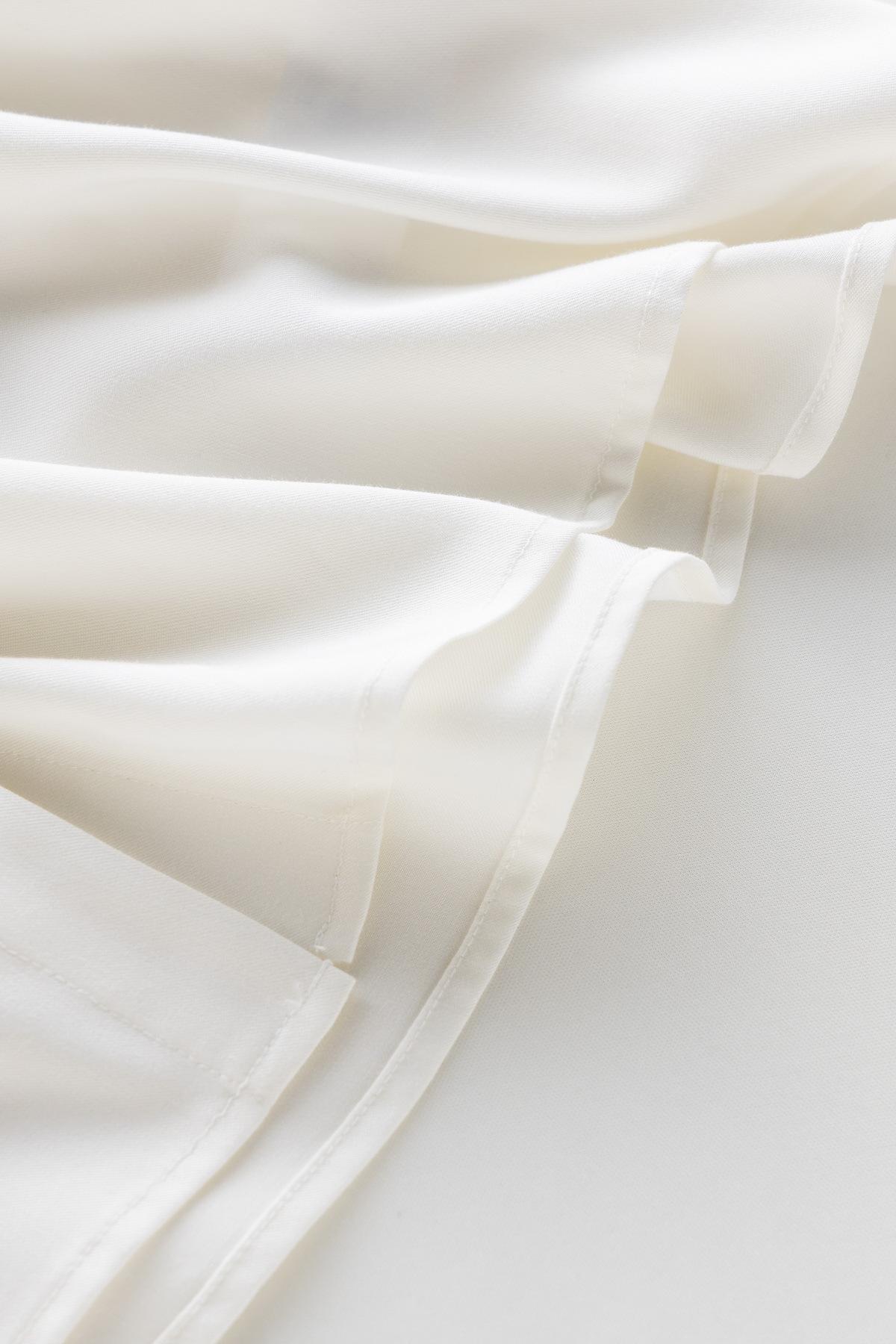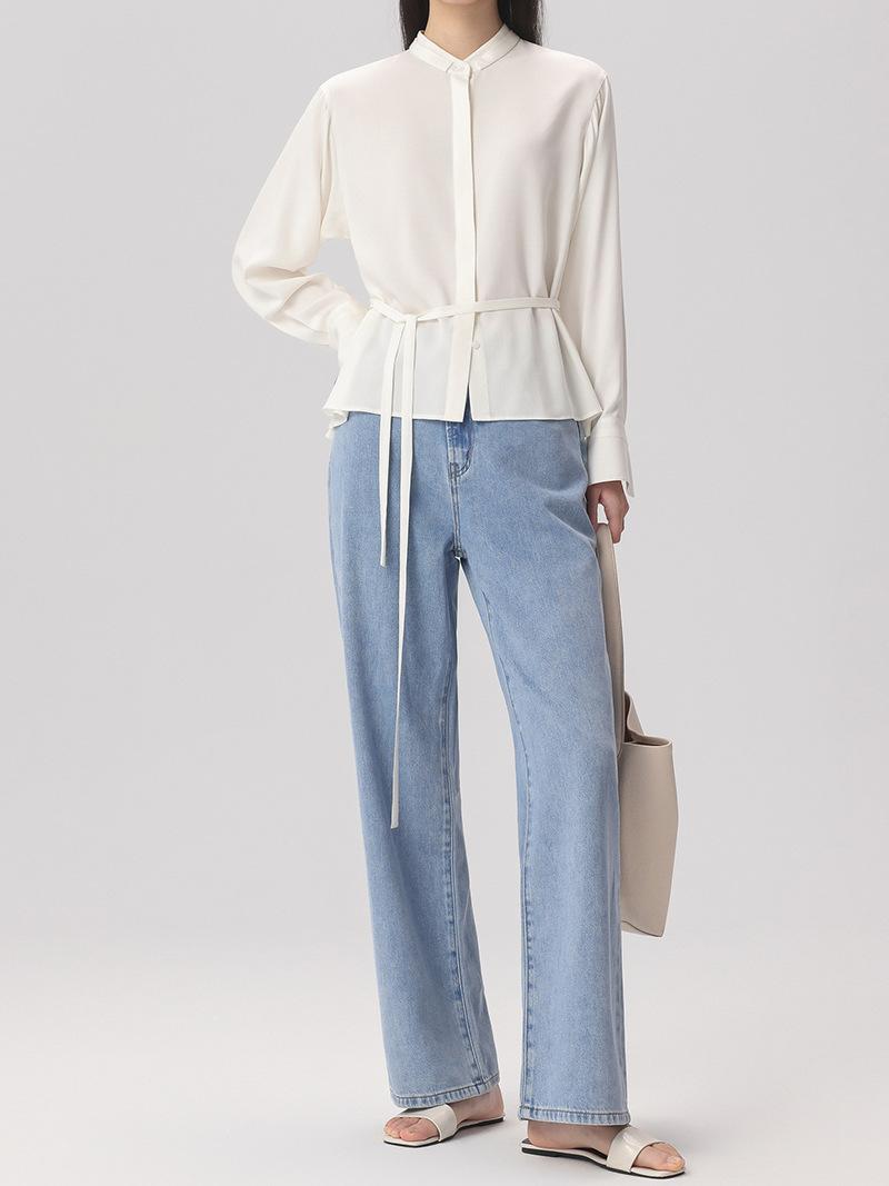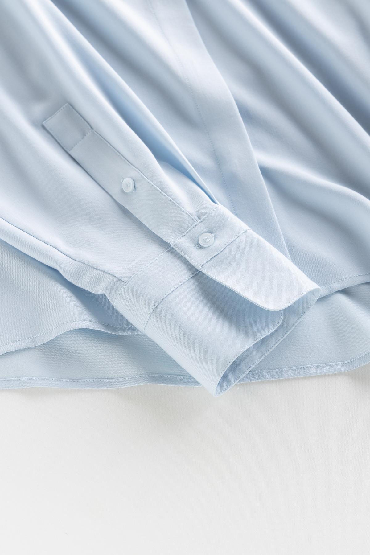 El escote y los puños son redondeados, temperamento suave, mostrando una feminidad gentil.