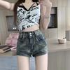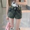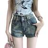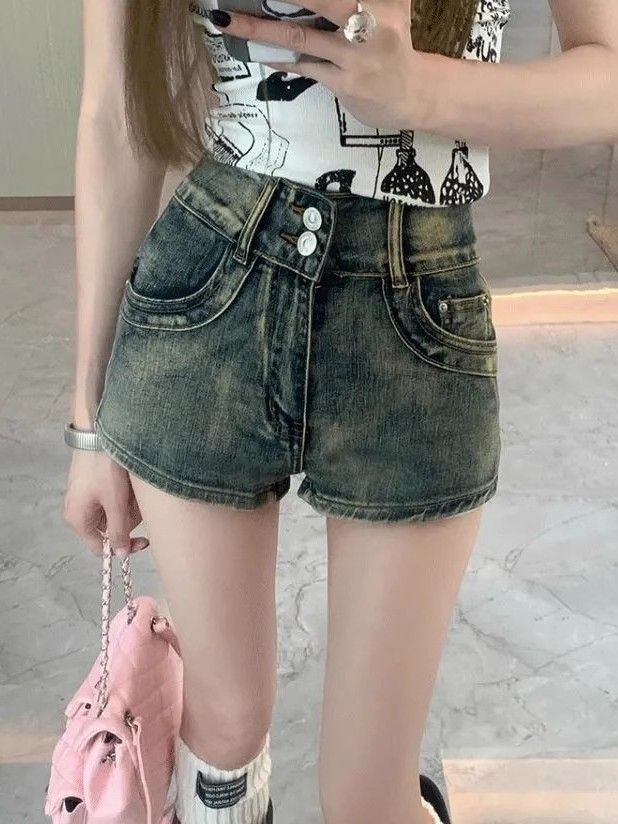 Pantalones cortos vaqueros azules retro de cintura alta ajustados y sexis de estilo americano para mujer, nuevos pantalones cortos de verano con palabra A que cubren la carne