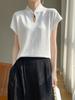 Primavera y Verano 25 Nuevo Estilo Chino Estilo Nacional Camisa de Punto Tencel de Manga Corta con Cuello para Mujer Top Básico Interior de Color Sólido