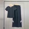 Traje Deportivo Casual de Moda para Mujer Verano Nuevo Negro Seda de Hielo Fino Top con Bolsillo Trasero Traje para Correr Conjunto de Dos Piezas