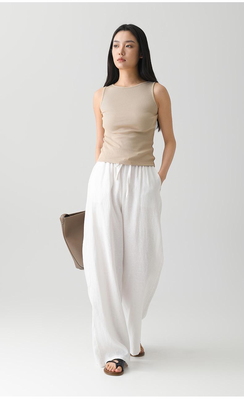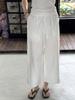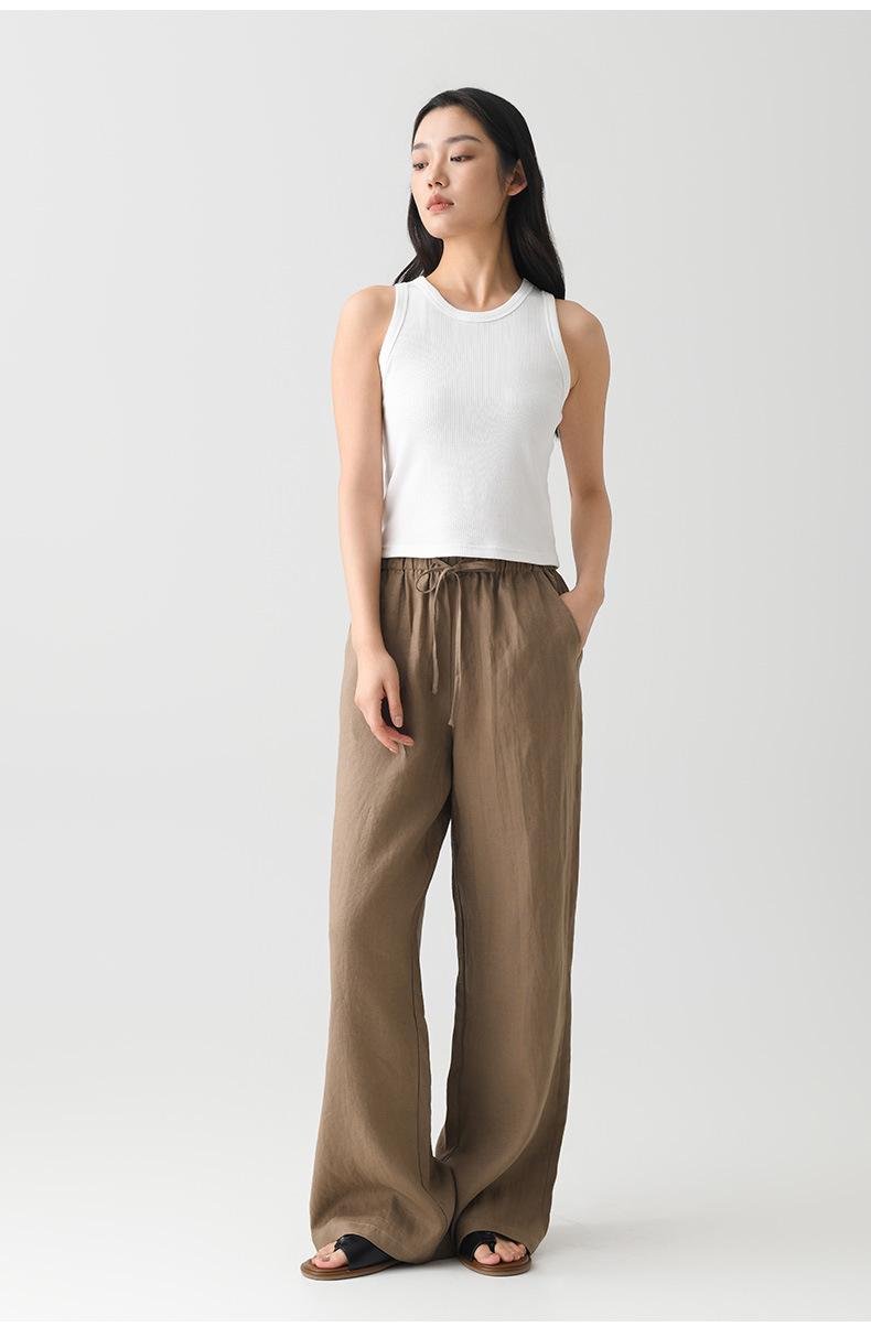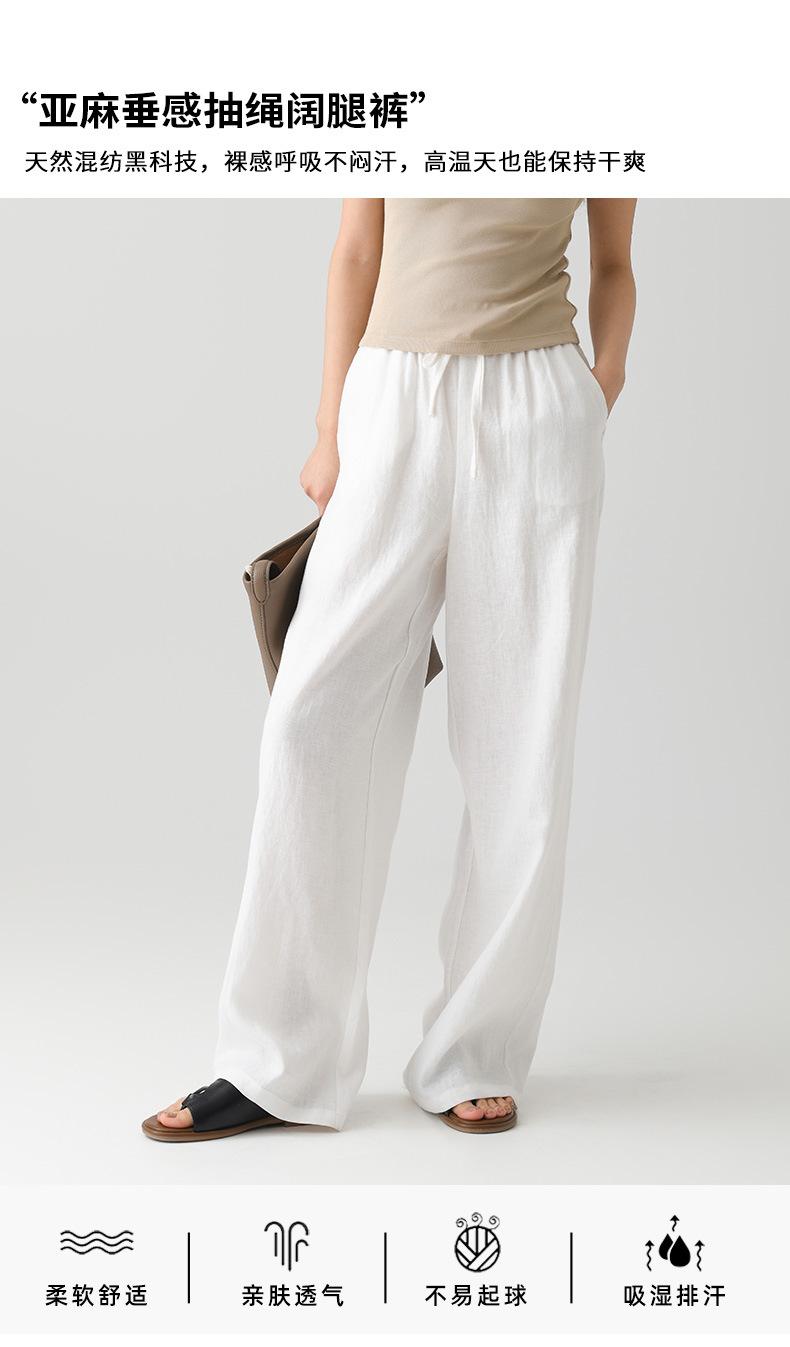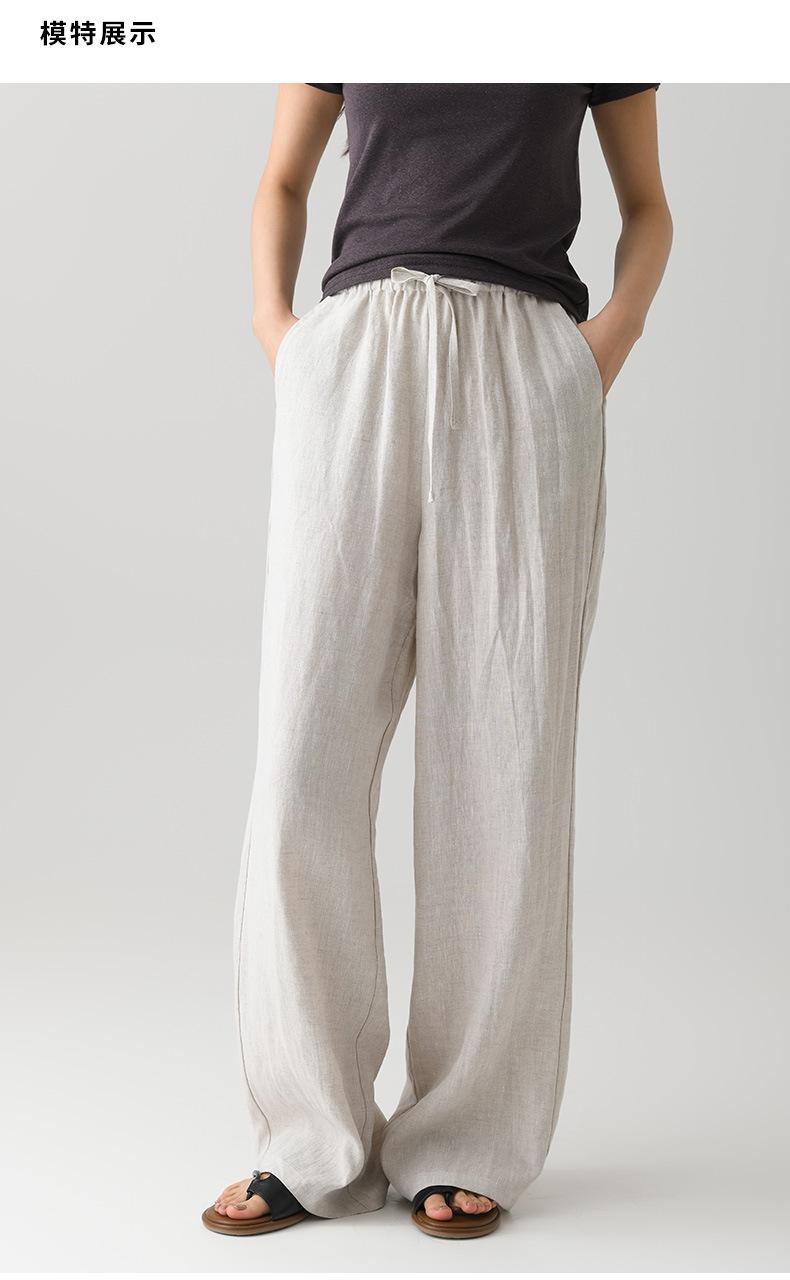 Verano Nuevo Pantalón de Lino para Mujer de Cintura Alta Drapeado Slim Pierna Ancha Casual Suelto con Cordón Recto Largo hasta el Piso