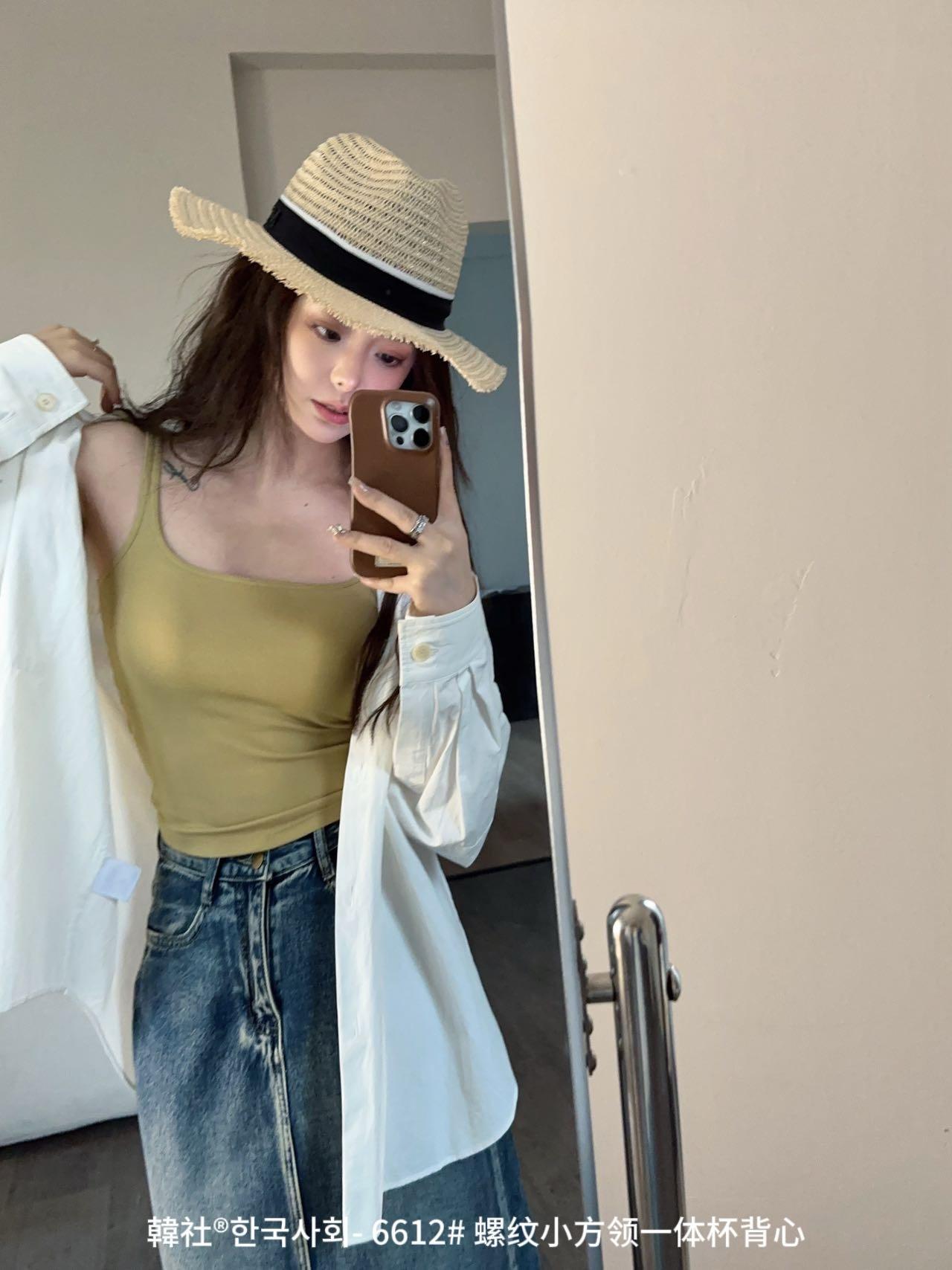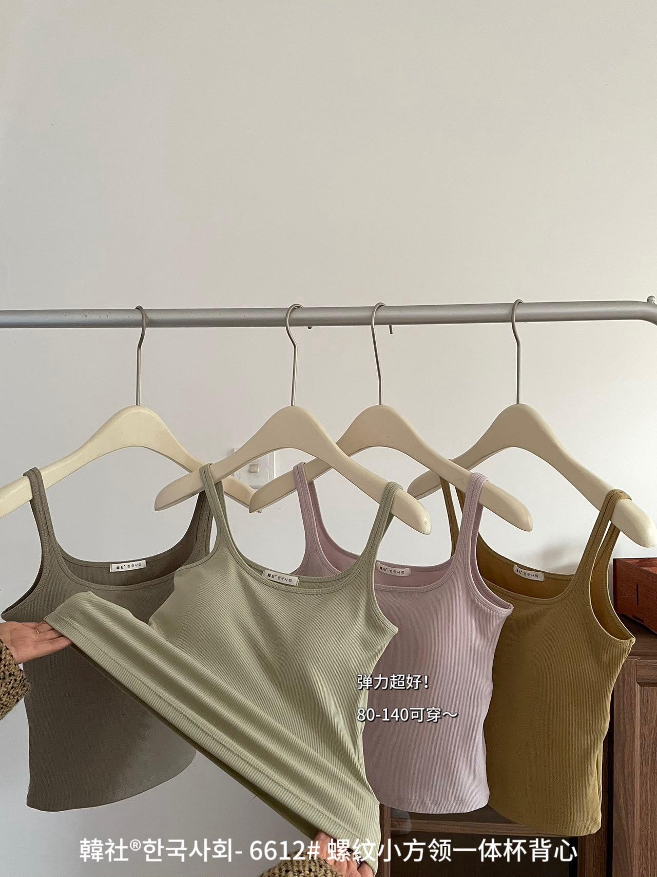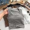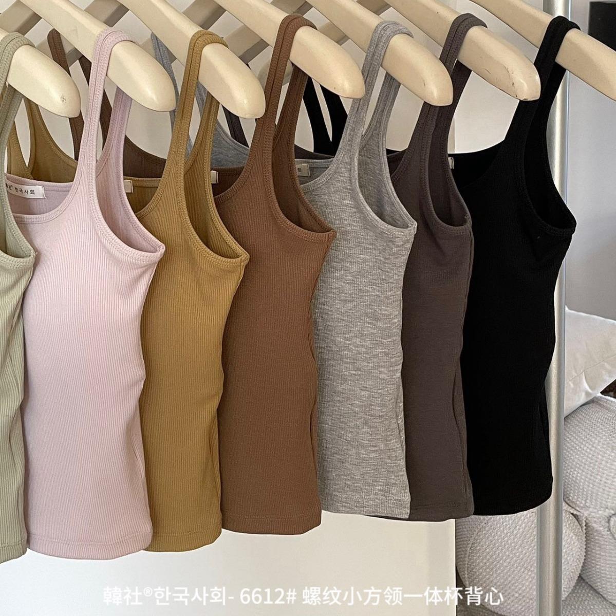Hanshe 6612# hilo cuello cuadrado pequeño de una pieza Copa Chaleco para mujer ajuste ceñido para uso interior y exterior adelgazante top básico para chicas