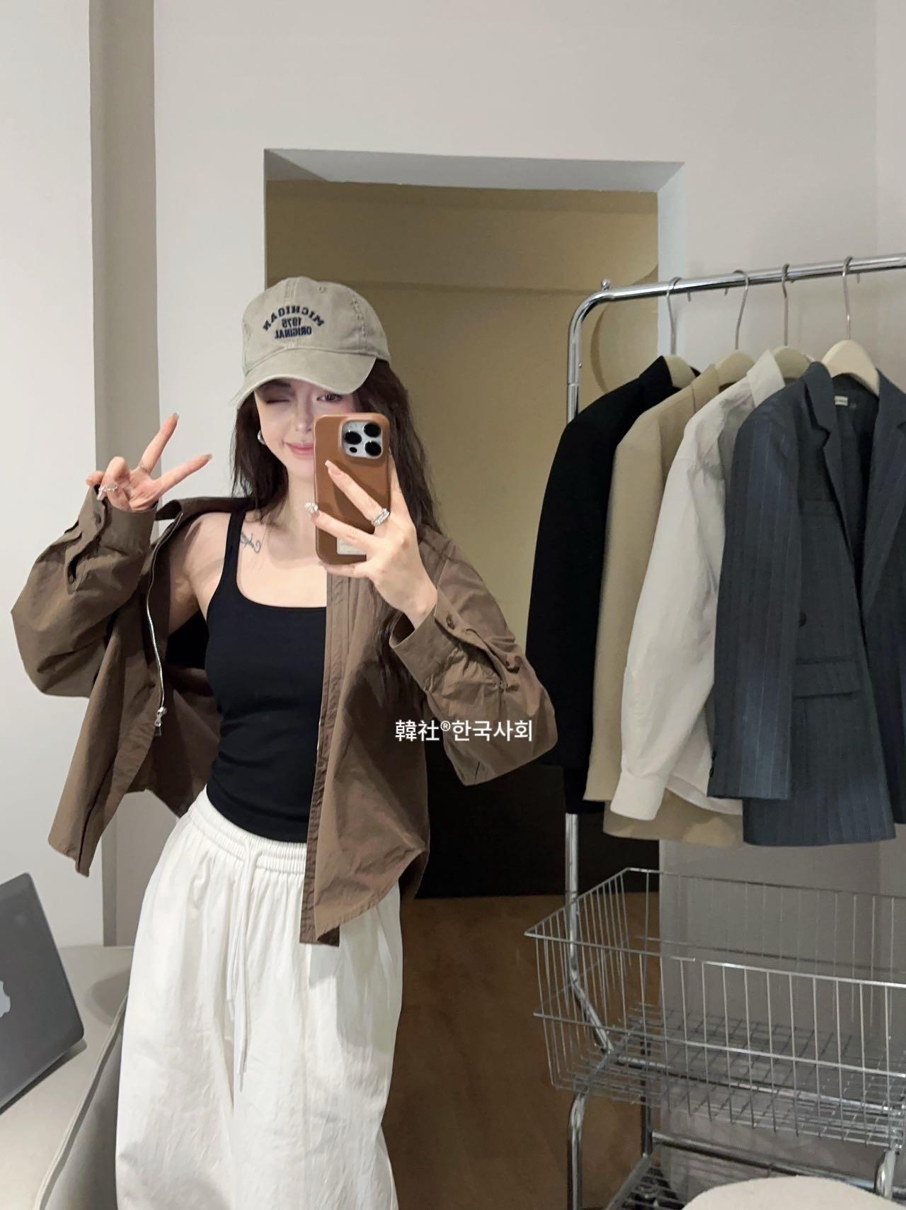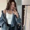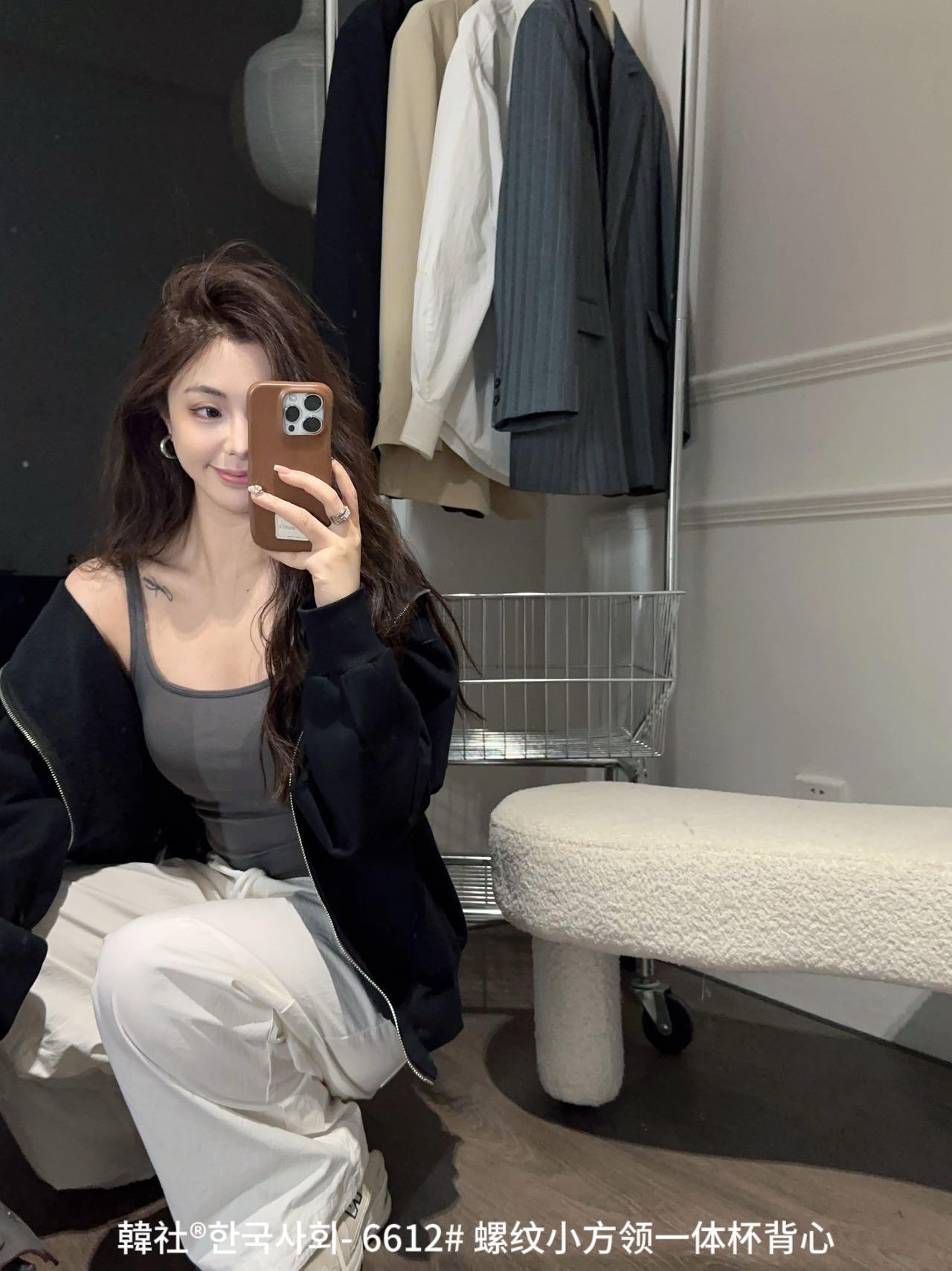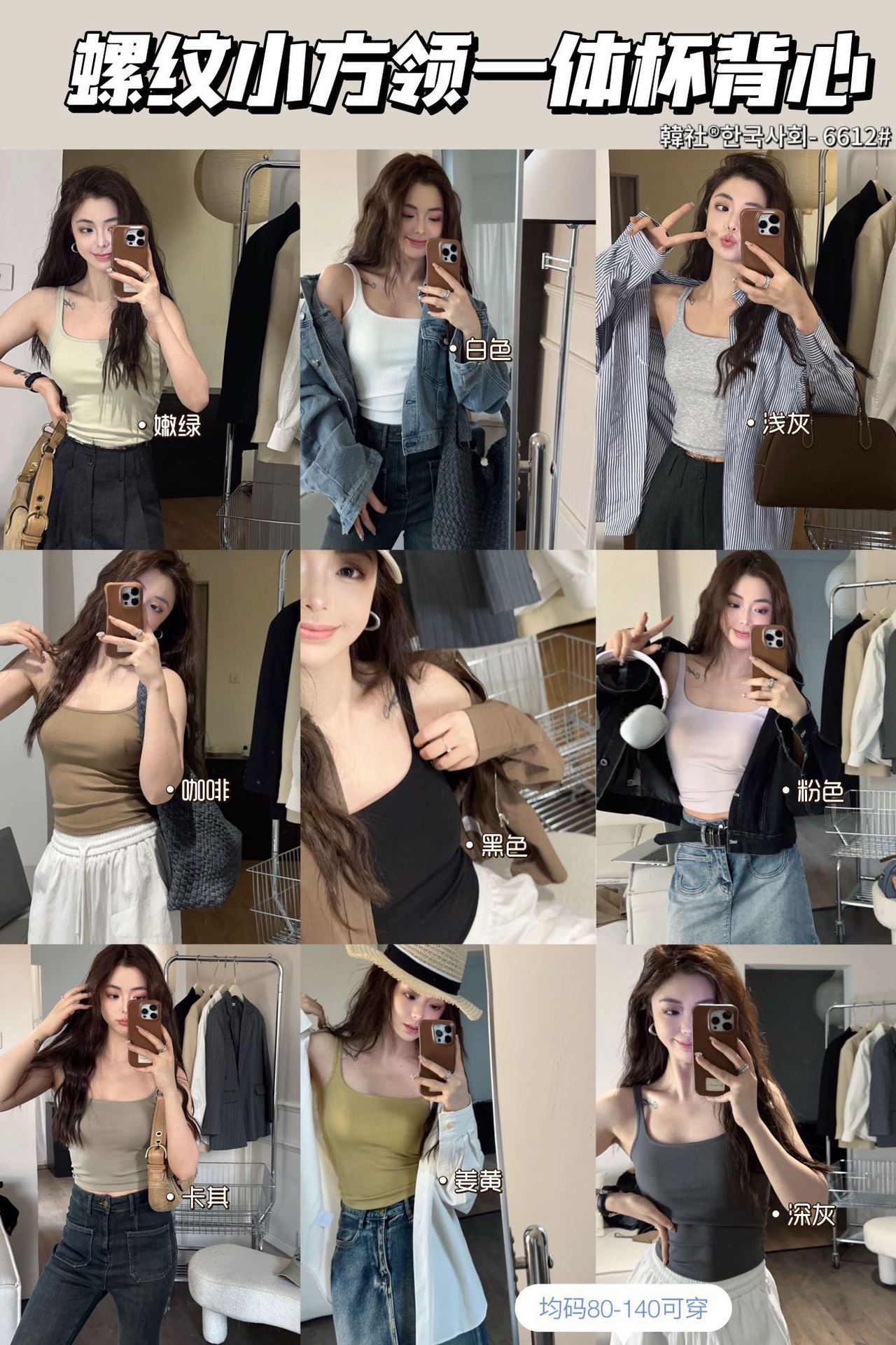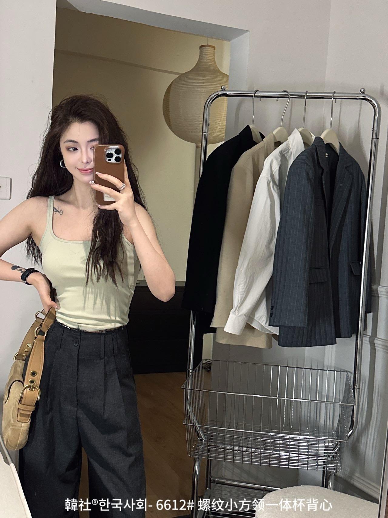 Hanshe 6612# hilo cuello cuadrado pequeño de una pieza Copa Chaleco para mujer ajuste ceñido para uso interior y exterior adelgazante top básico para chicas