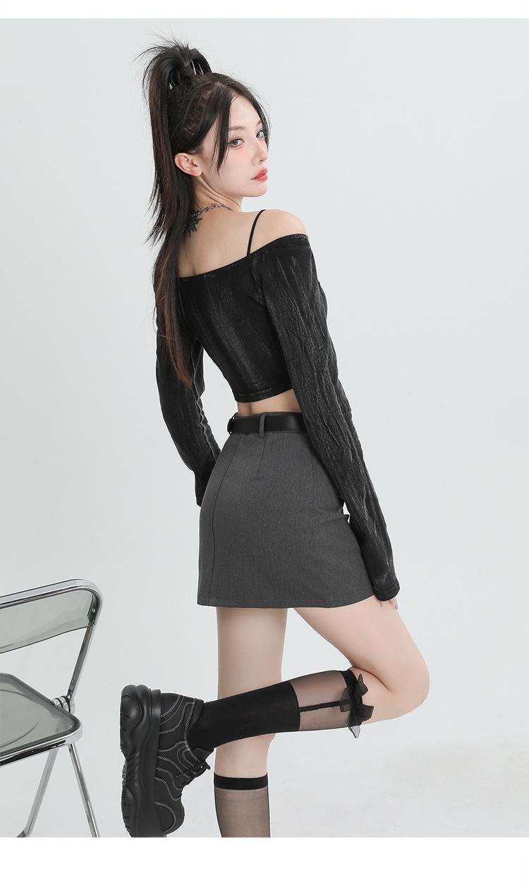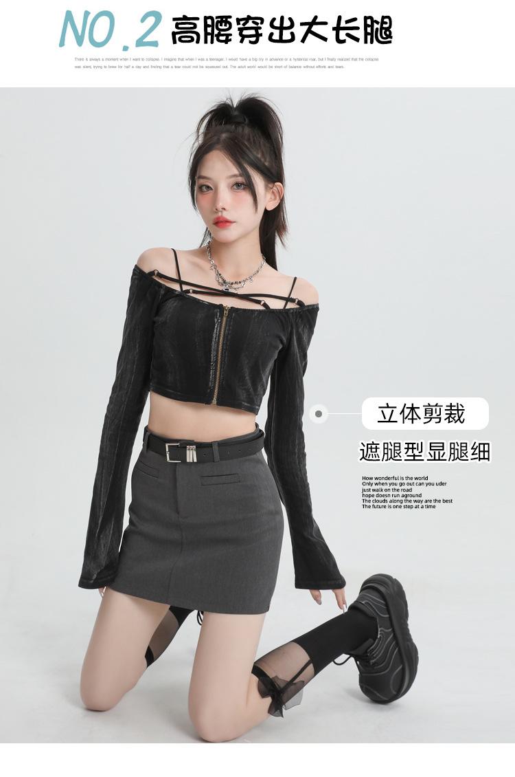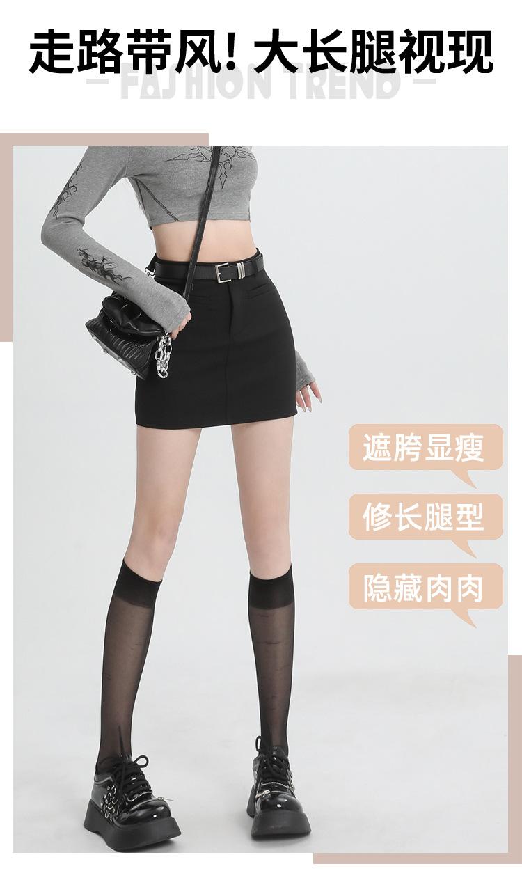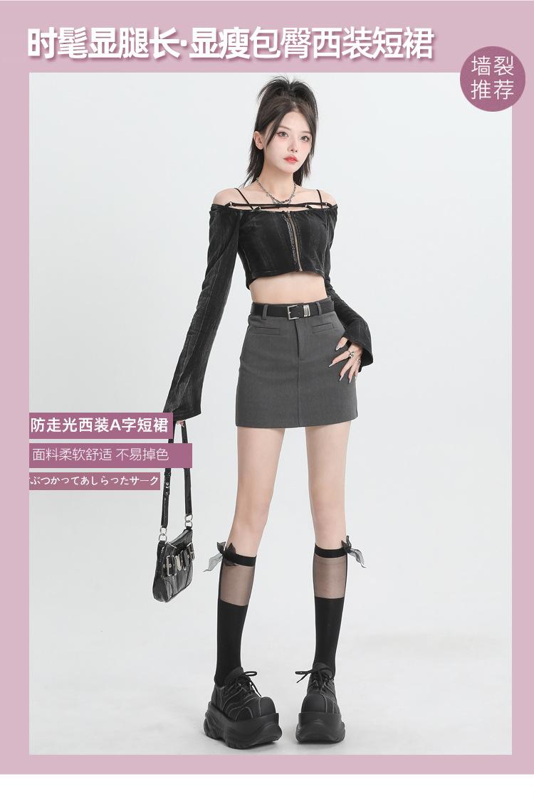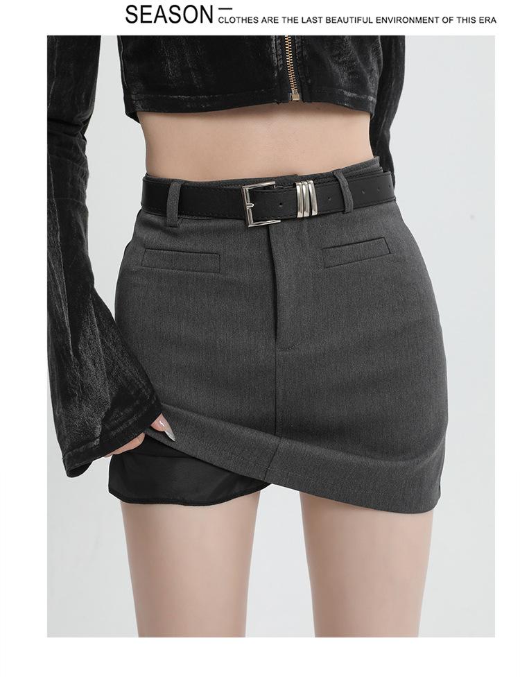 Falda de traje gris para mujer, verano 2025, nueva, combinable, cintura alta, adelgazante, falda pequeña de corte A a la cadera.