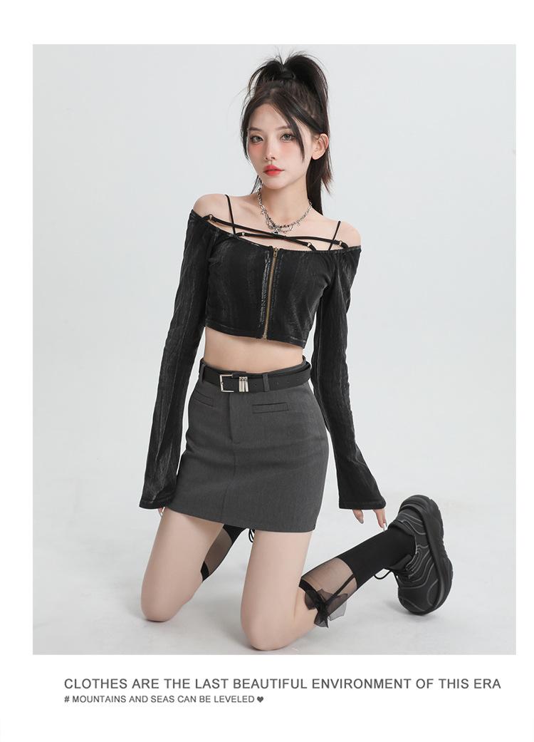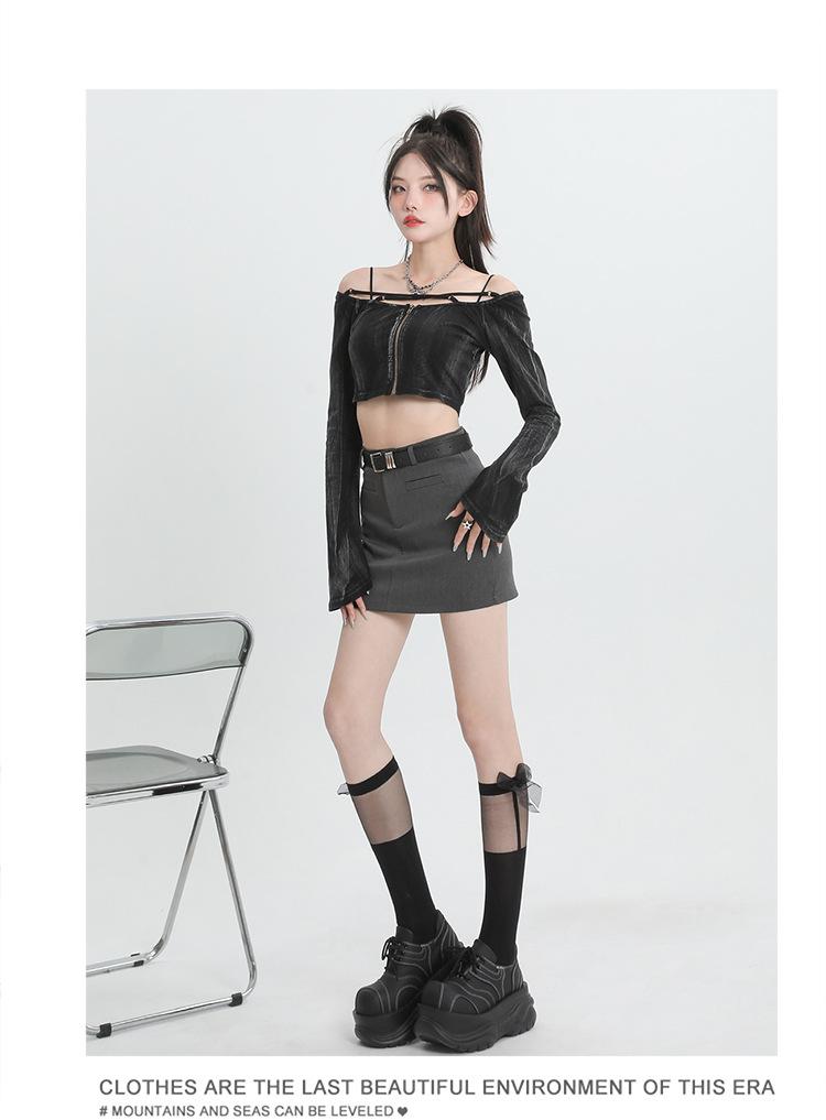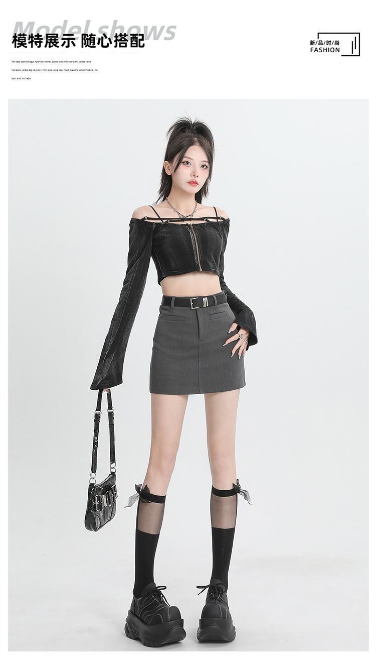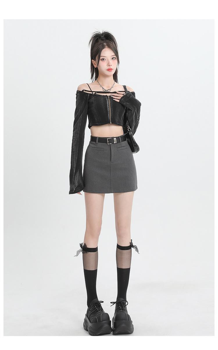 Falda de traje gris para mujer, verano 2025, nueva, combinable, cintura alta, adelgazante, falda pequeña de corte A a la cadera.