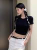 Camiseta de manga corta para mujer Niche Design Sense Summer Slim-fit de cintura alta, top corto con espalda hueca de Pure Spice Girls