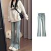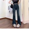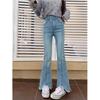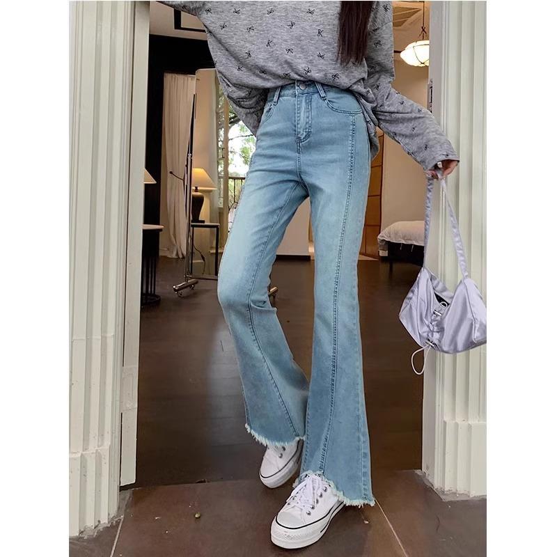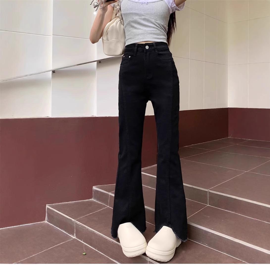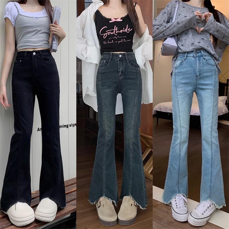 Jeans Acampanados de Cintura Alta para Mujer, Nuevo Estilo de Otoño e Invierno, Corte Slim, Pantalones Largos que Realzan la Altura, Talla Grande, Bajo Dividido, Pantalones Acampanados con Borde Deshilachado