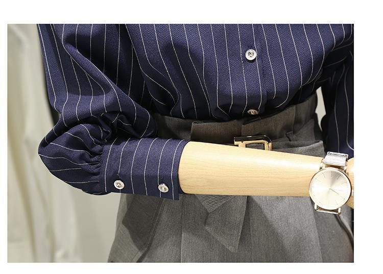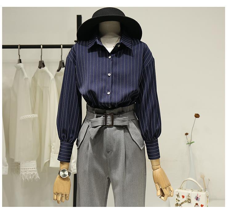 Camisa a rayas para mujer, diseño de estilo retro de Hong Kong, estilo nicho, ropa de negocios, otoño 2024, nueva camisa