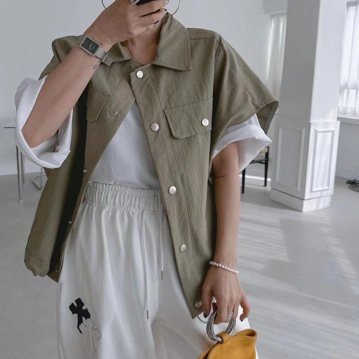 Chaleco de trabajo estilo coreano de verano, nuevo, retro, informal, holgado, elegante, combinable con todo.