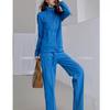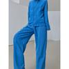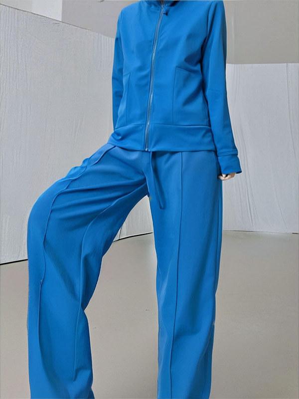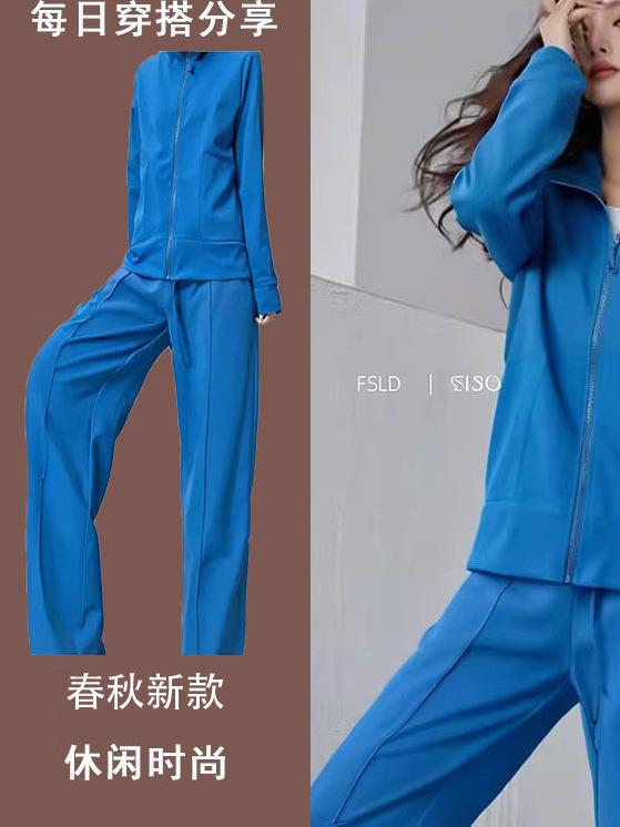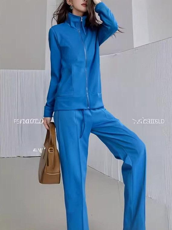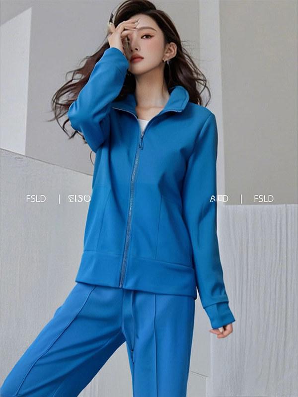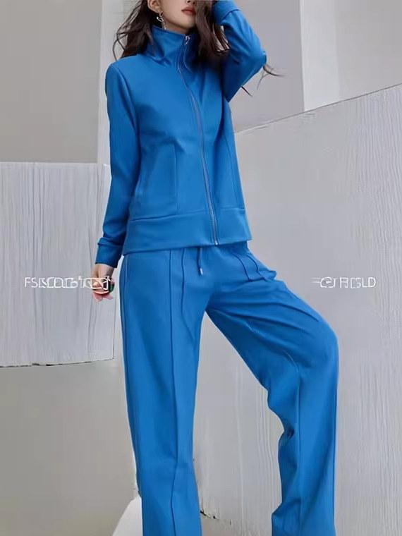 Traje Casual de Estilo Deportivo de Moda de Alta Gama, un Conjunto Completo de Cárdigan con Cremallera Azul Sudadera Simple Traje de Dos Piezas para Mujer