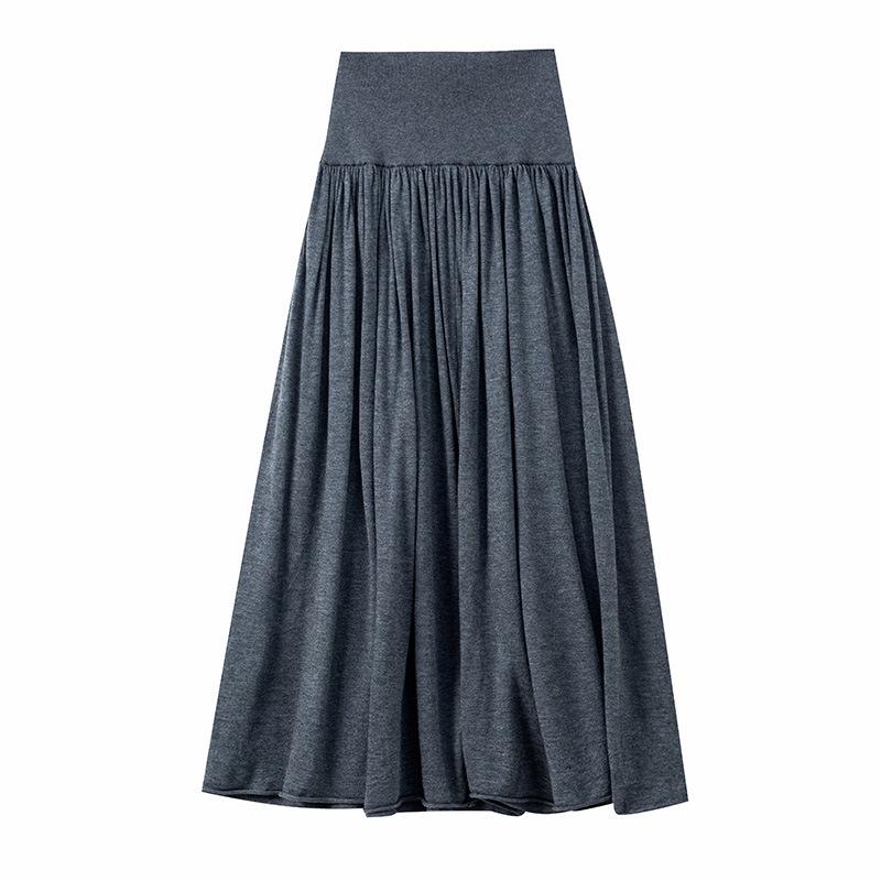 ¡Relajado! Falda Plisada de Cintura Alta para Mujer Drapeada Pesada Casual Slim Larga Diseño Lazy Falda Línea A
