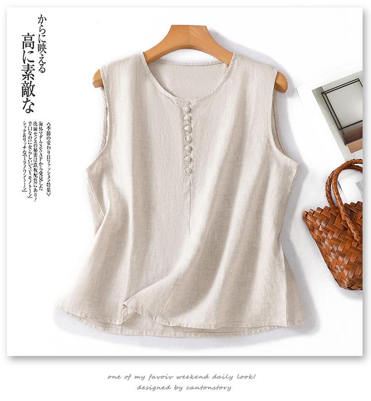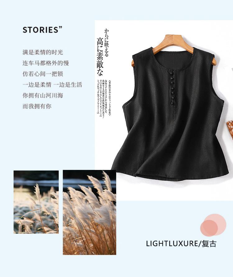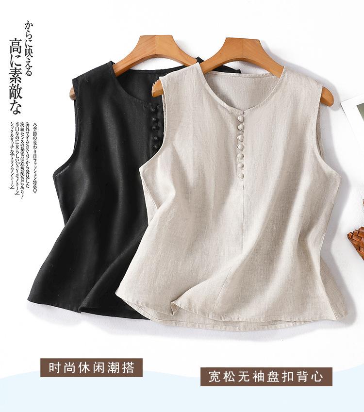 Foto Real de Chaleco con Hebilla para Mujer para Usar por Dentro y por Fuera 2025 Nuevo Verano Holgado Look Adelgazante Casual Camiseta sin Mangas Tops para Mujer