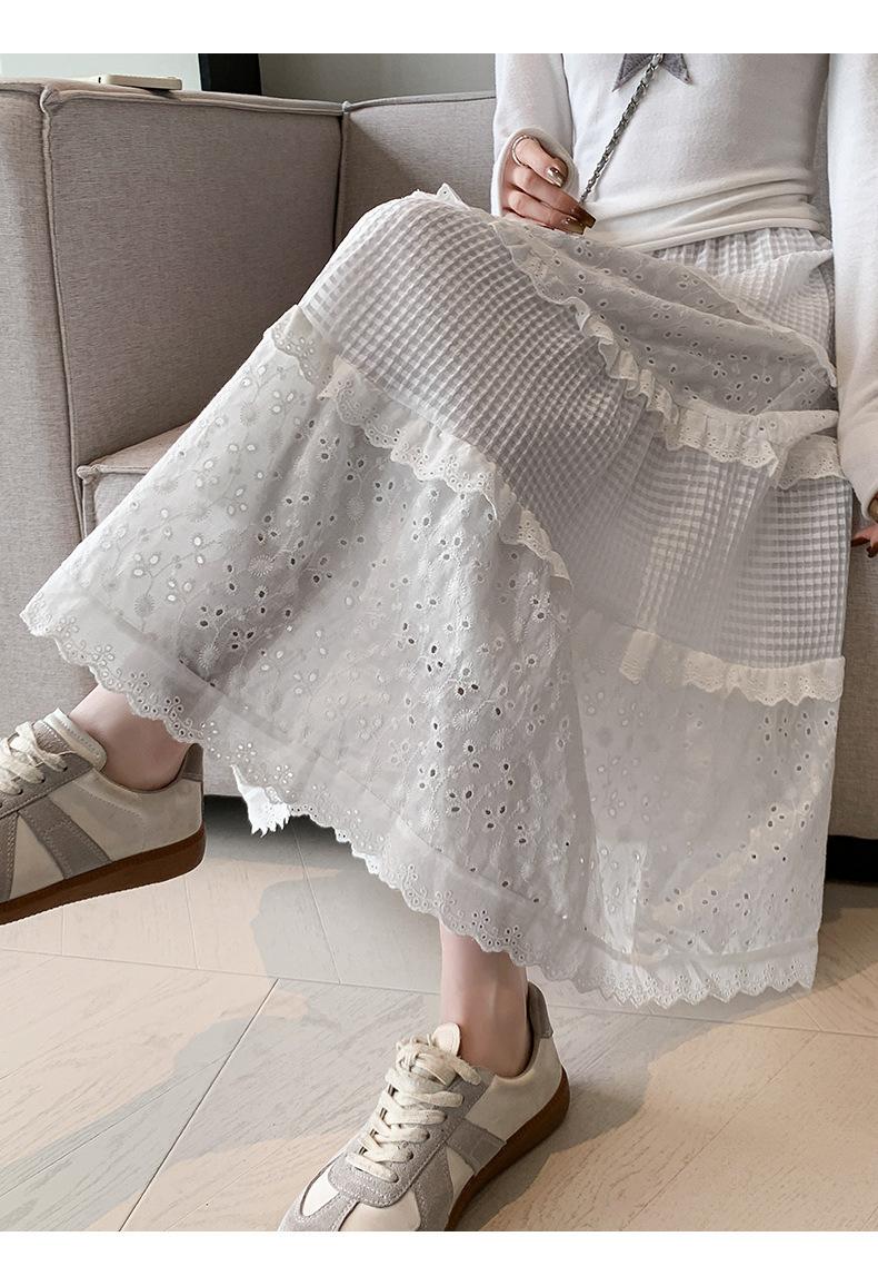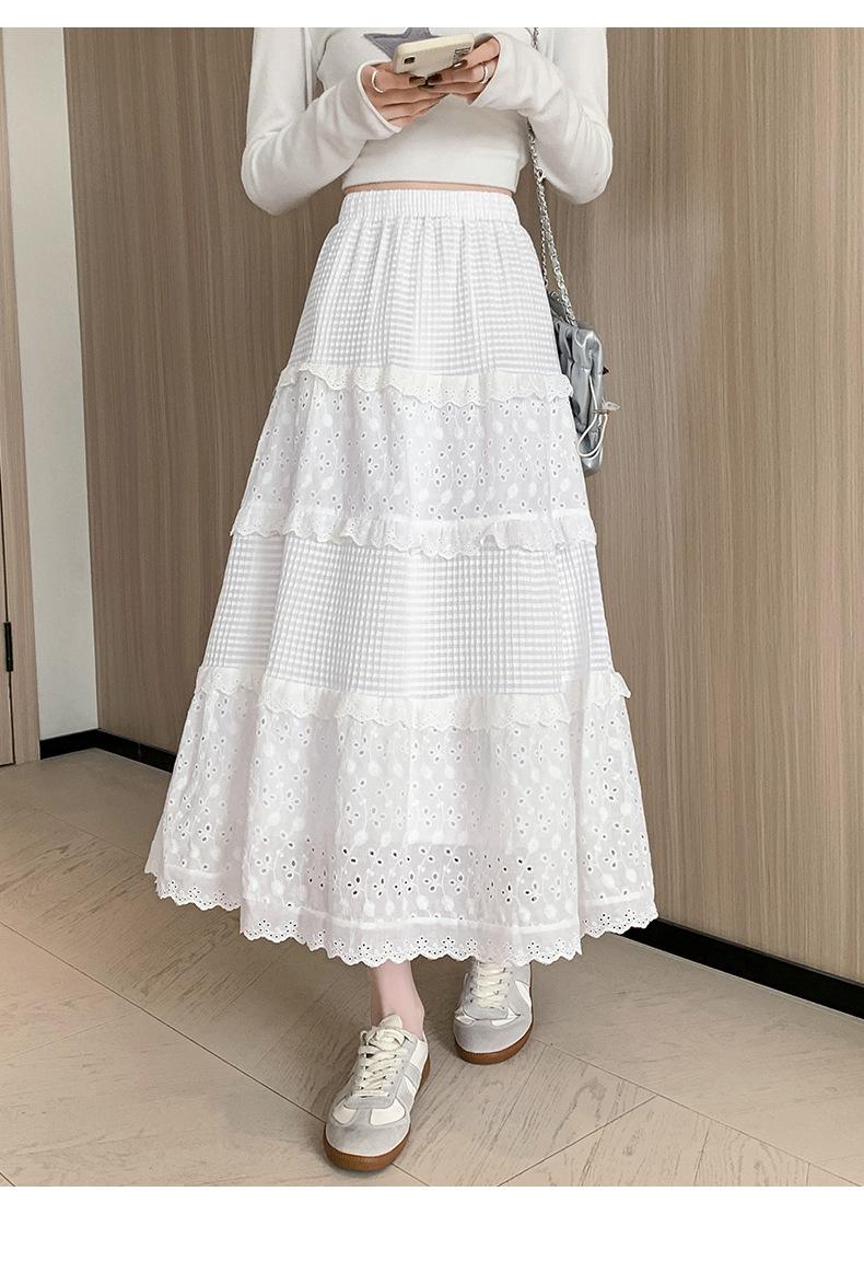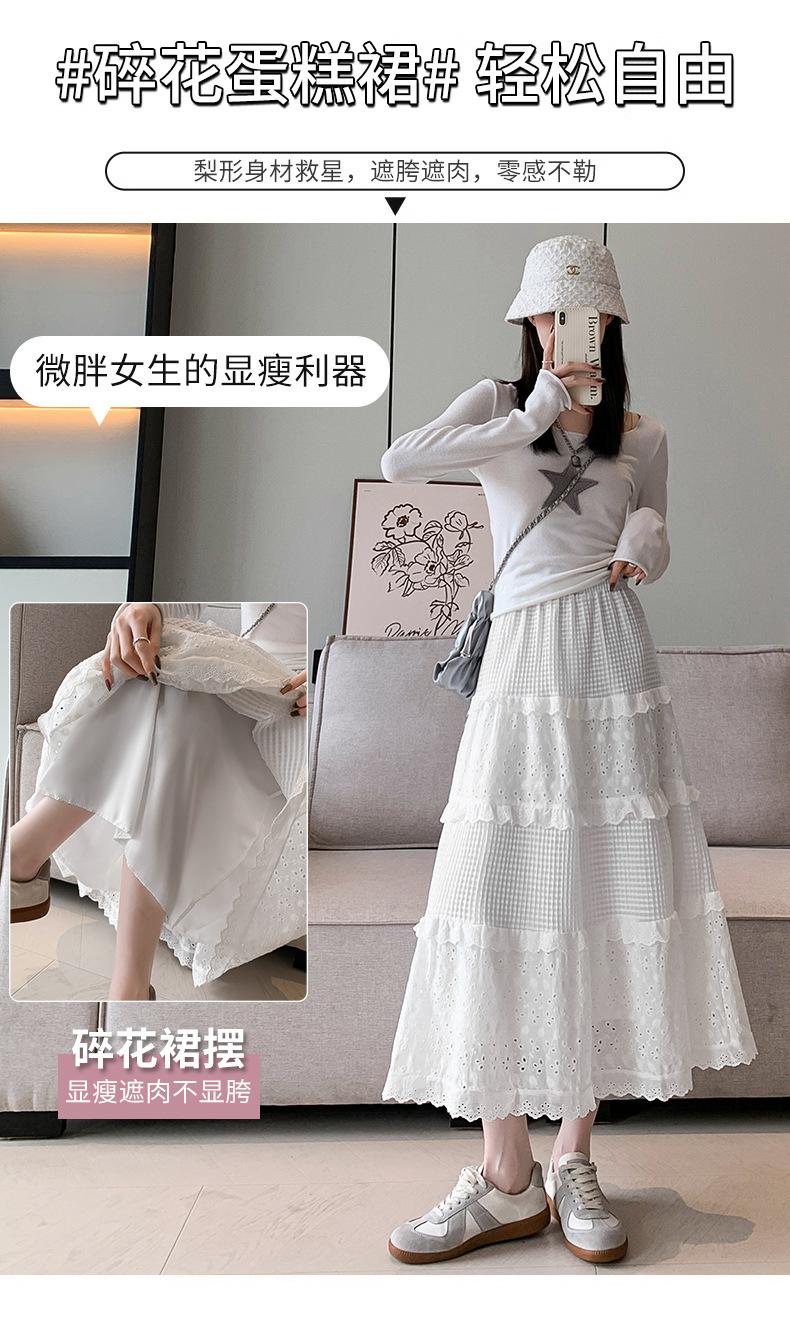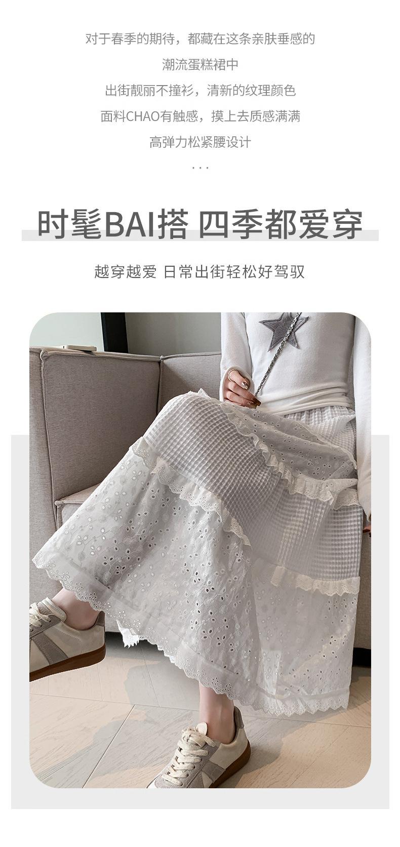 Falda de encaje elegante para mujer, falda adelgazante de malla pequeña, cintura alta, línea A, primavera y verano