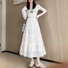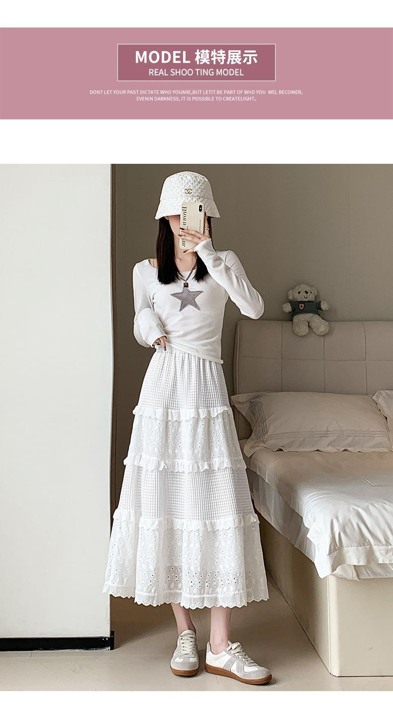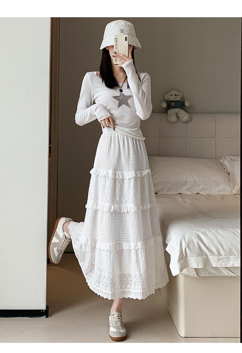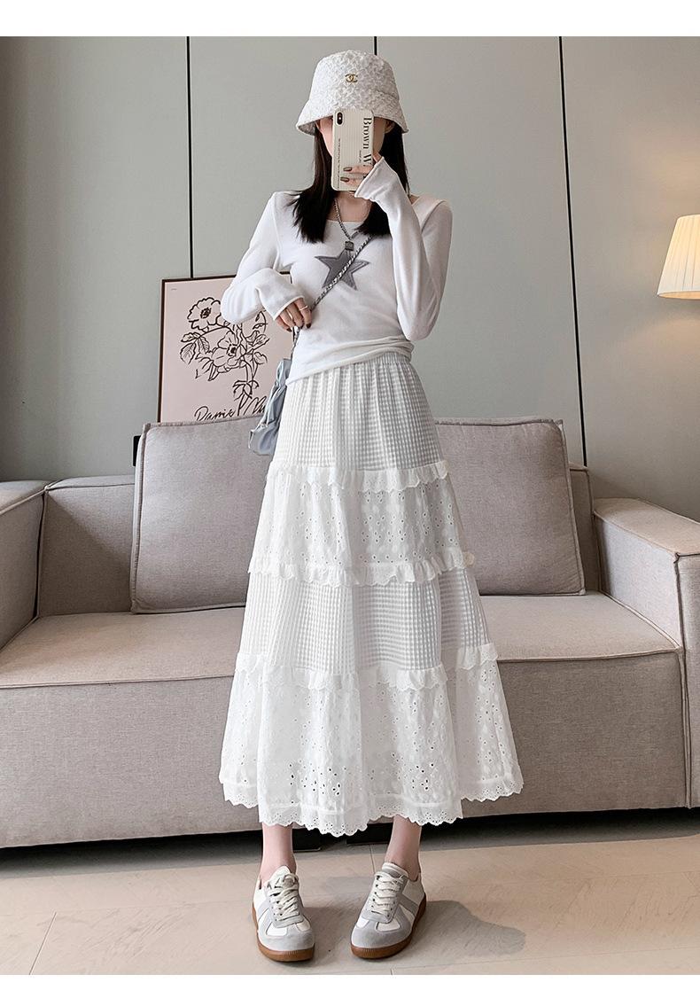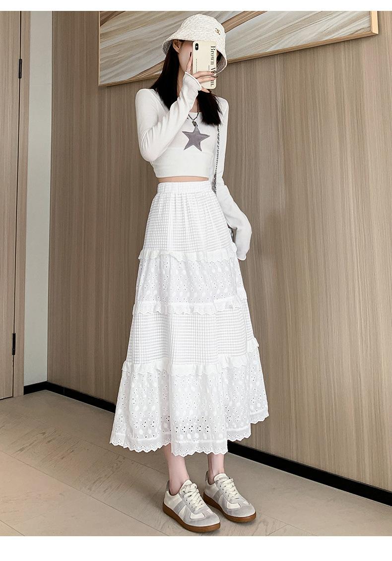 Falda de encaje elegante para mujer, falda adelgazante de malla pequeña, cintura alta, línea A, primavera y verano