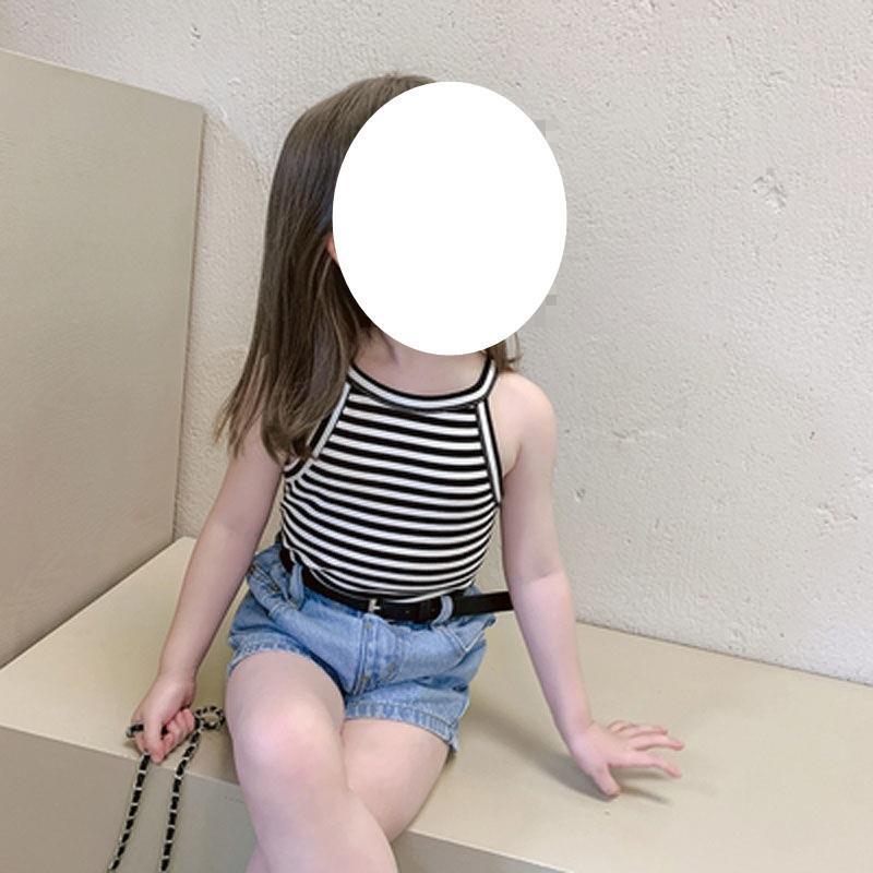 Ropa infantil 2022, novedad, camiseta fina de verano a rayas para niñas pequeñas y medianas, 0017