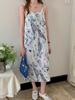 Nuevo Vestido de Tirantes con Cuello en V y Doble Tirante de Satén Sedoso para Primavera y Verano 2025 Estampado de Tinta Falda Suelta Midi