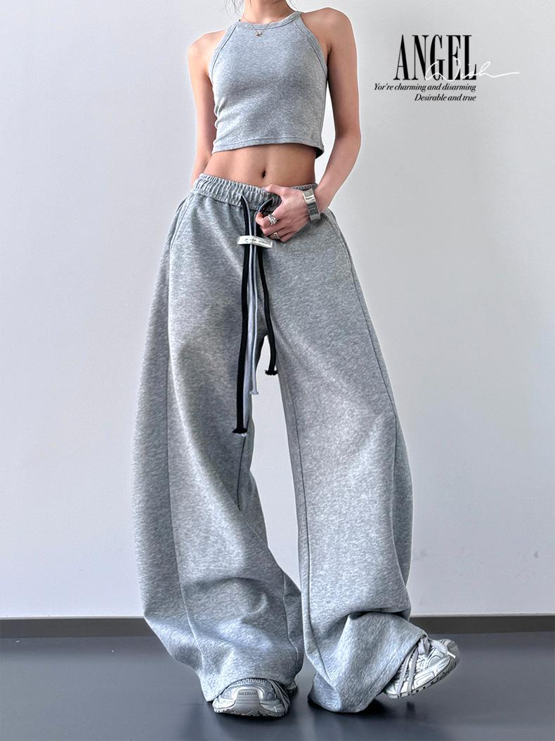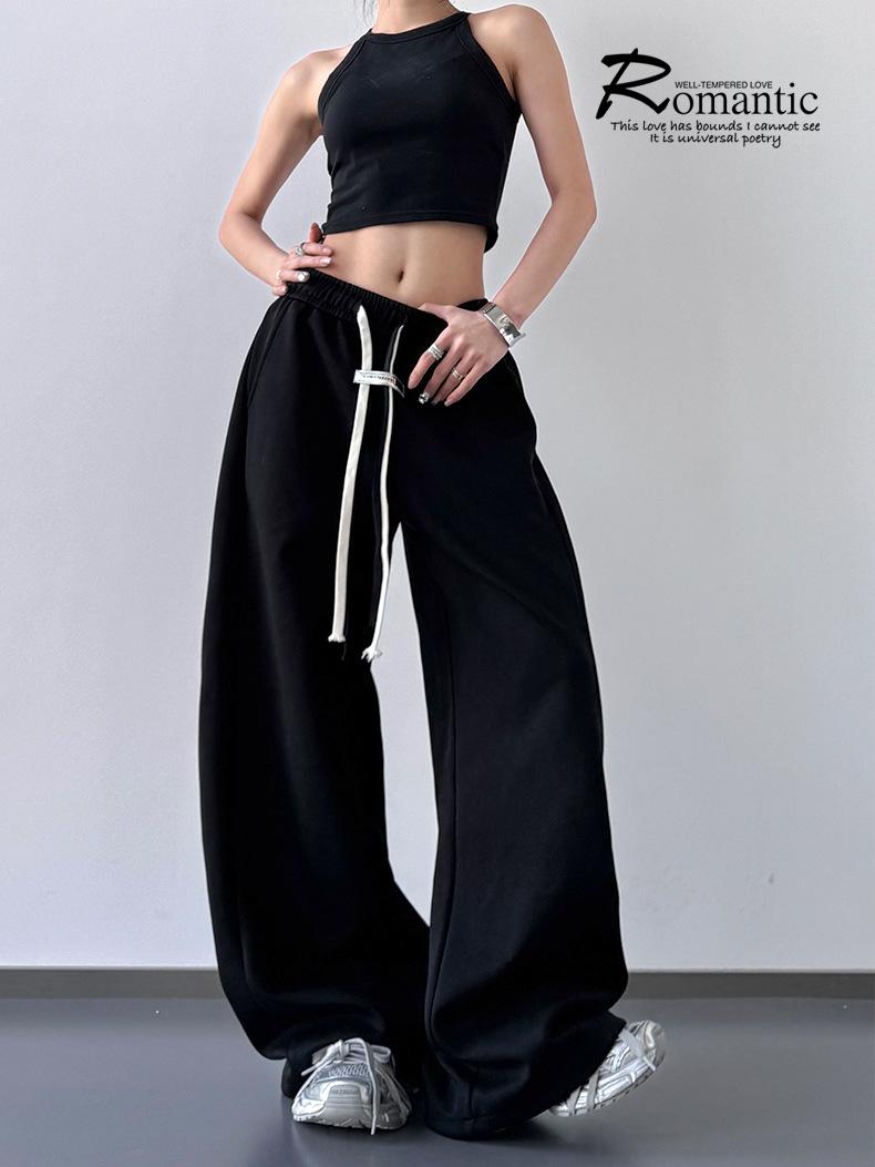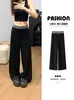Pantalones machete con cintura de color contrastante, novedad primavera 2025, pantalones elásticos de cintura alta, casuales, de pierna ancha y rectos para mujer, moda