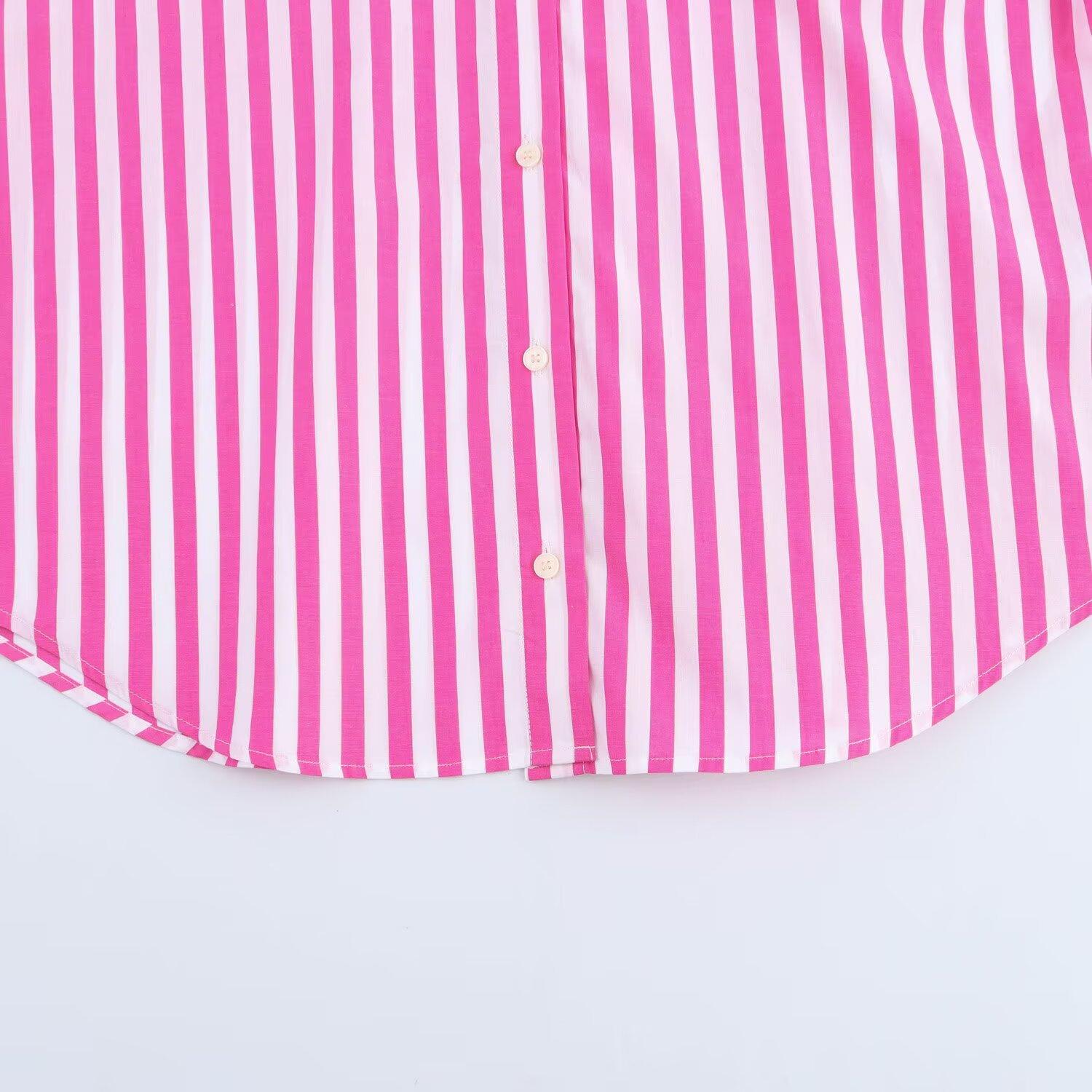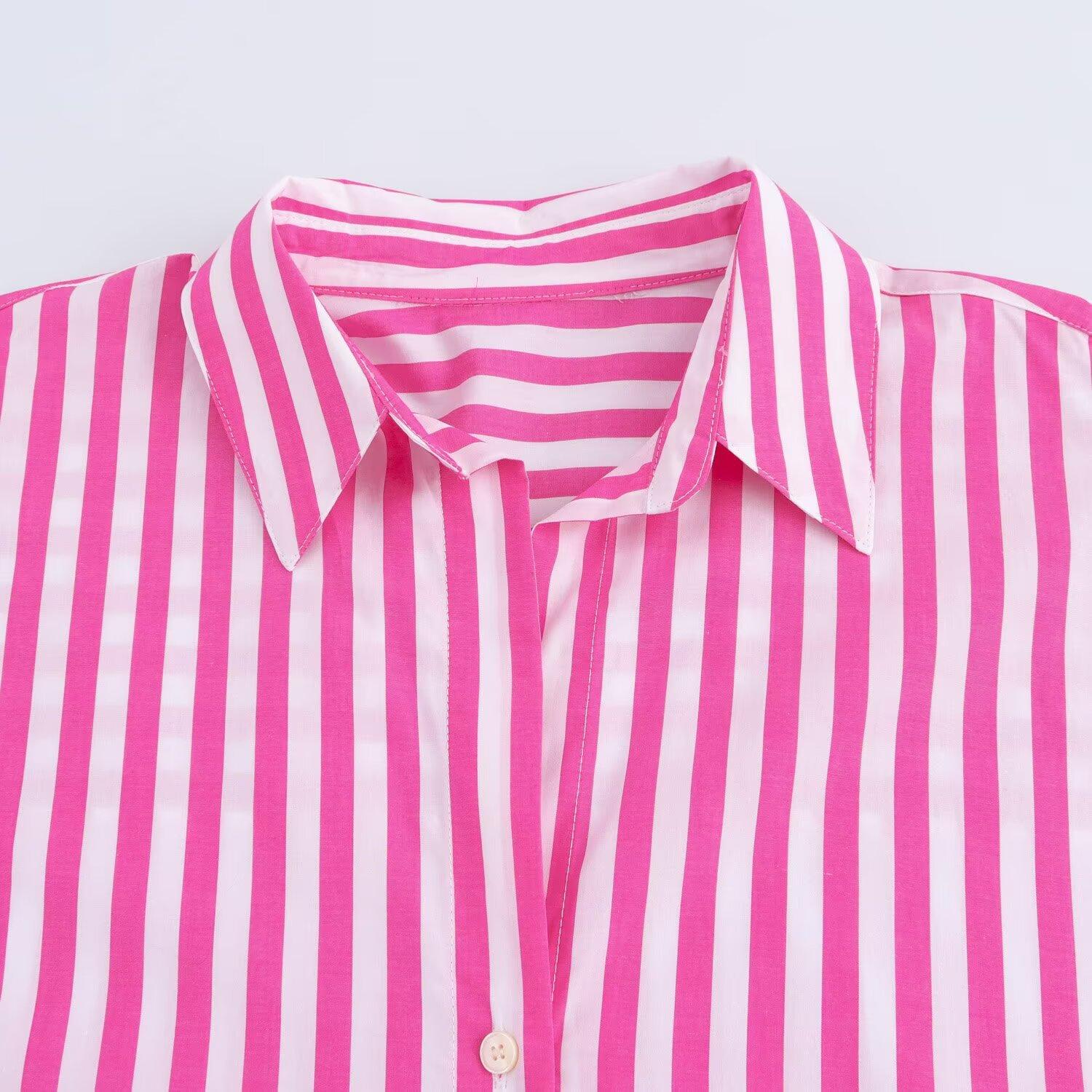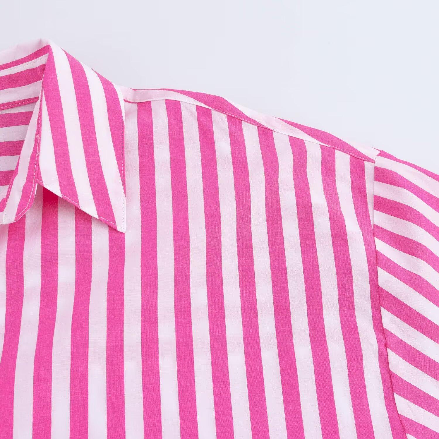 Comercio exterior transfronterizo europeo y americano 2025 nueva moda rayas solapa contraste color camisa pantalones cortos camisa de moda casual
