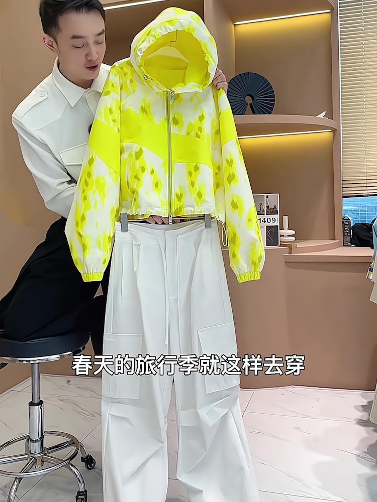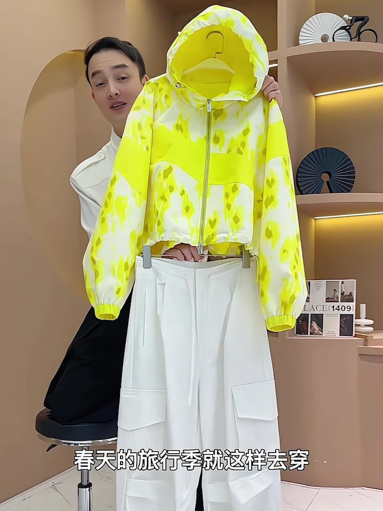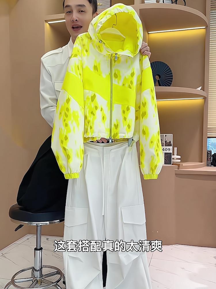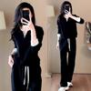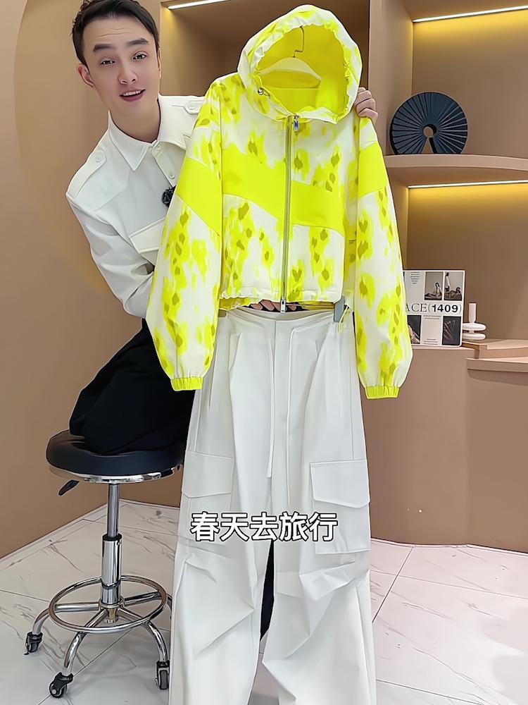Conjunto de Pantalones Casuales de Estilo Simple de Cárdigan con Cremallera Amarillo Top Simple Holgado de Manga Larga Conjunto de Dos Piezas para Mujer