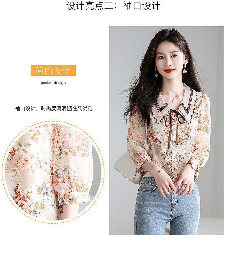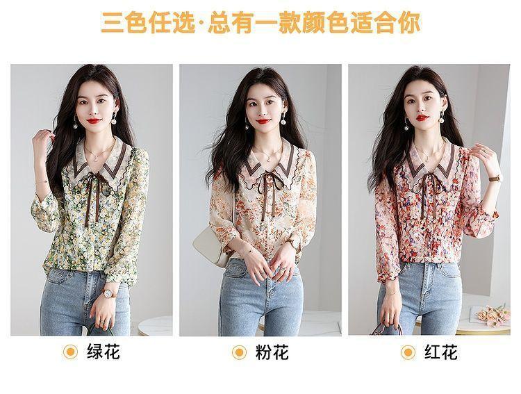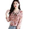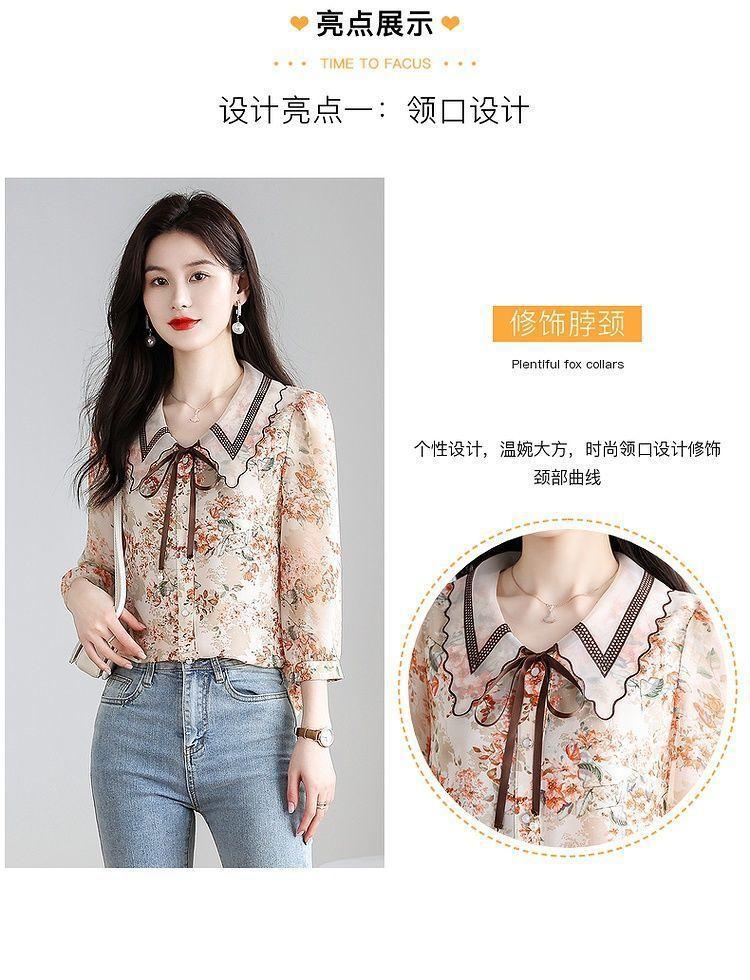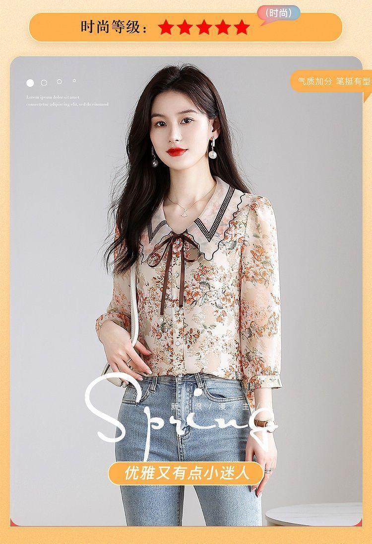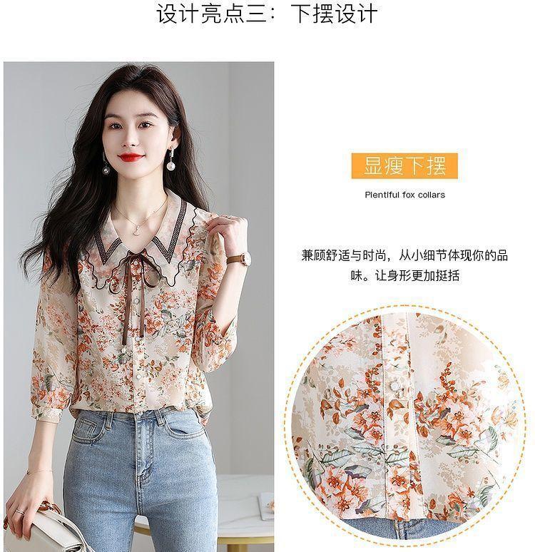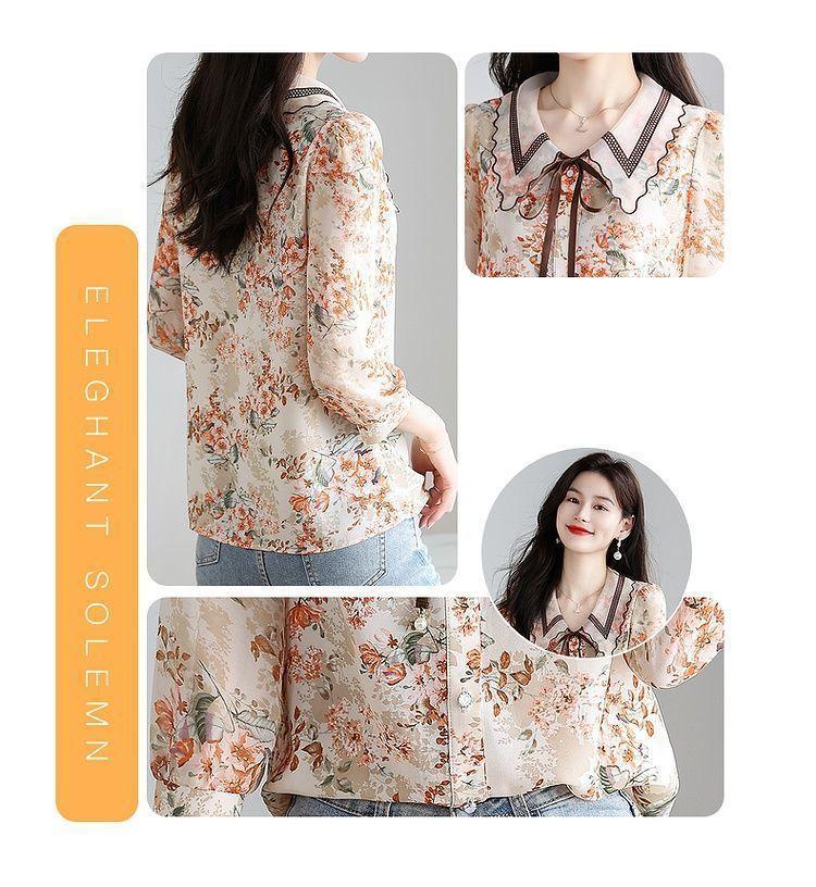 Camisa de Gasa Floral para Mujer Primavera y Verano 2025 Nuevo Estilo Estilo Occidental Reductor de Edad Elegante Camisa de Alta Gama de Siete Mangas Top Reductor de Edad
