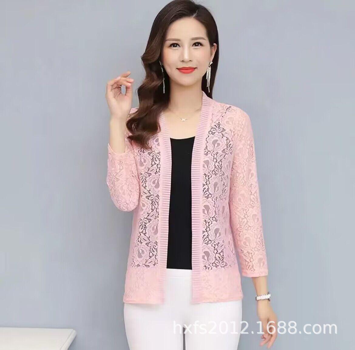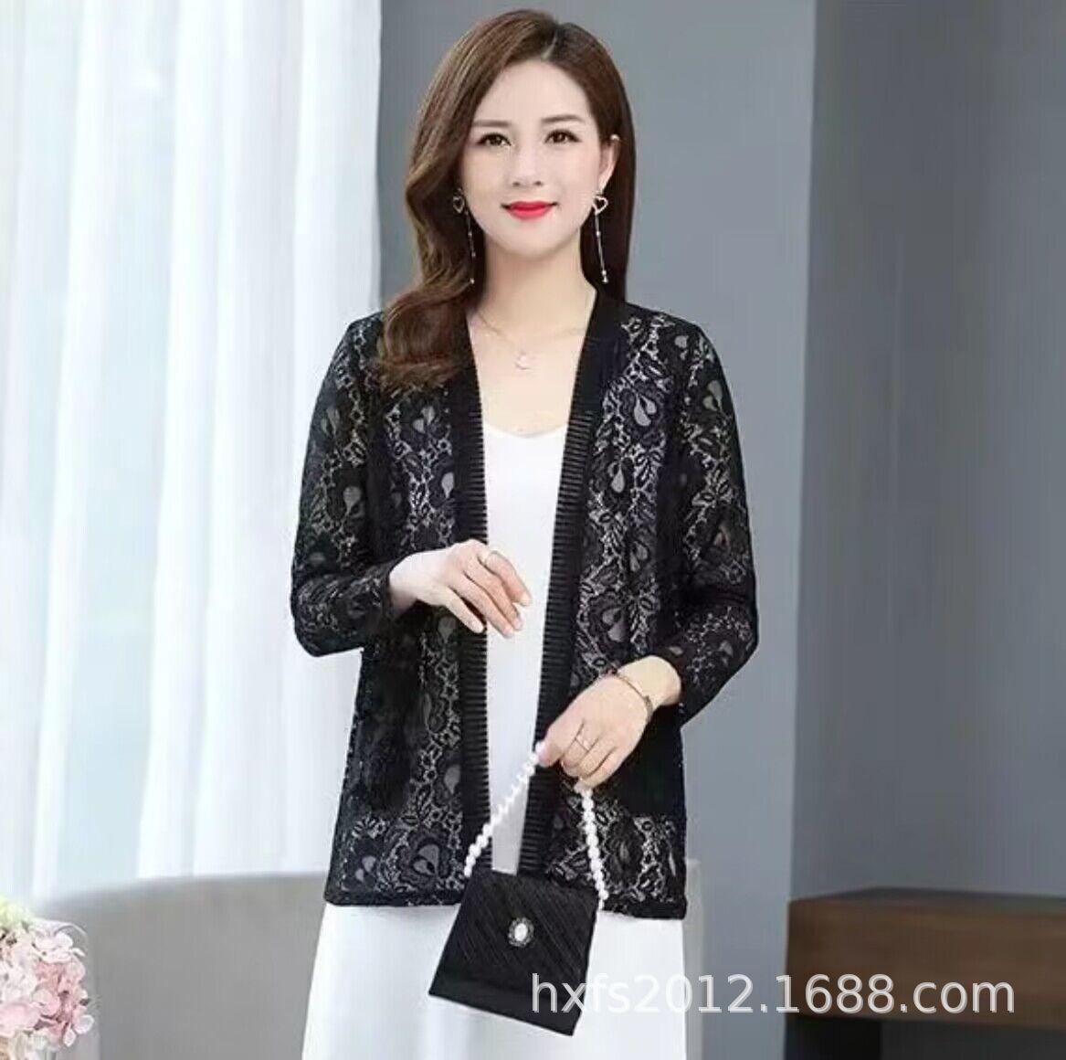 Chaqueta Chal de Mujer Trendy Primavera y Verano Talla Grande Mediano Cárdigan de Encaje Ropa de Protección Solar de Manga Larga Camisa Acondicionada para el Aire Top Delgado