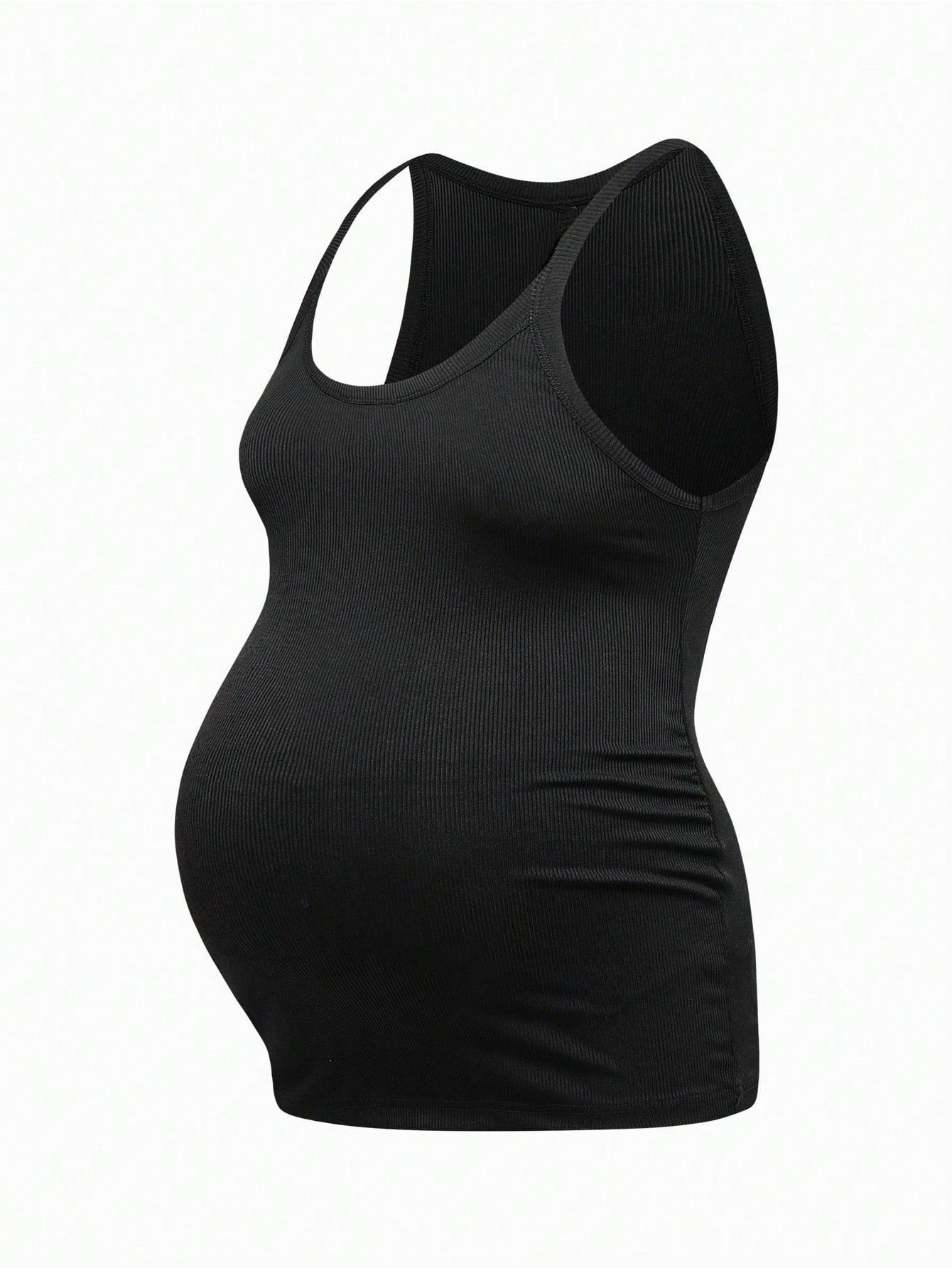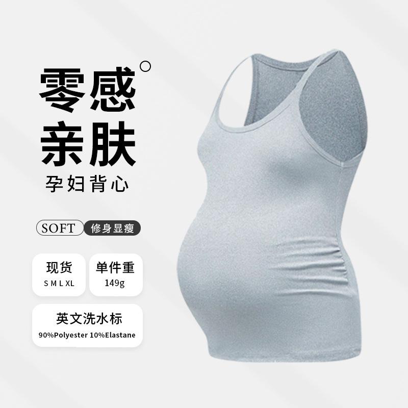 Camisola de Verano Transfronteriza de Color Sólido, Ajustada, de Cuello Redondo Fino, Transpirable, con Copa para el Busto, se Puede Usar por Fuera, para Embarazo y Lactancia