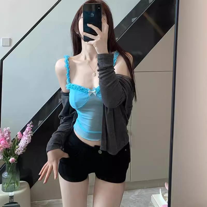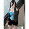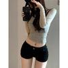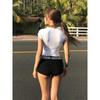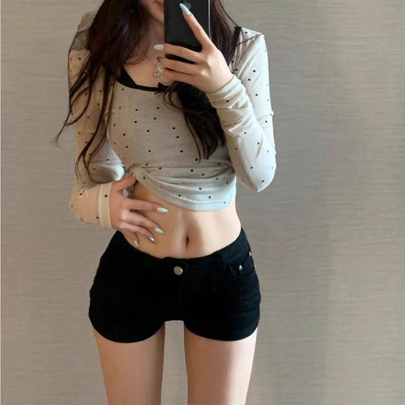Shorts de Mezclilla Elásticos Negros de Cintura Baja y Corte Slim para Mujer, Estilo Americano High Street, Hot Pants Underwear Missing Super Shorts