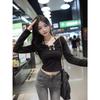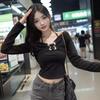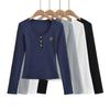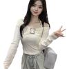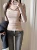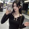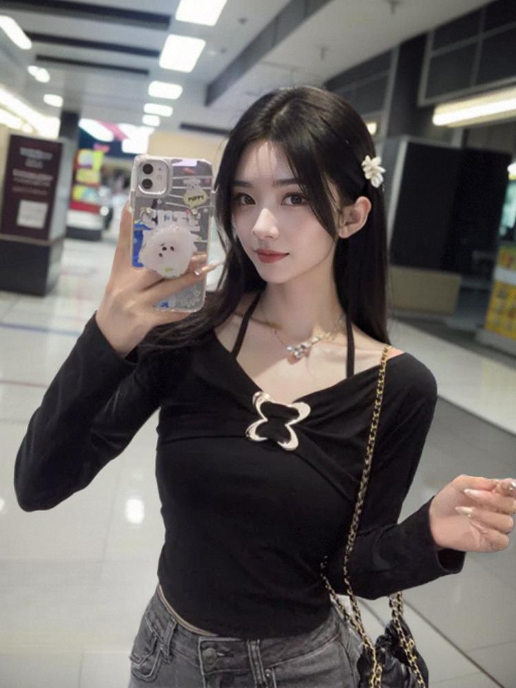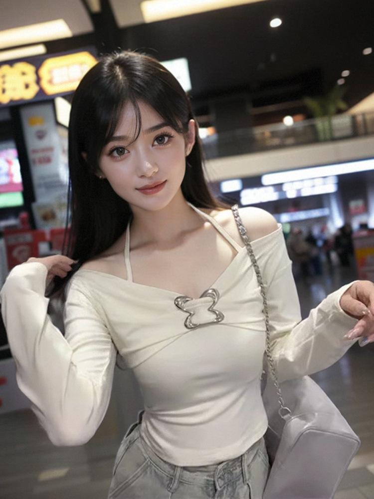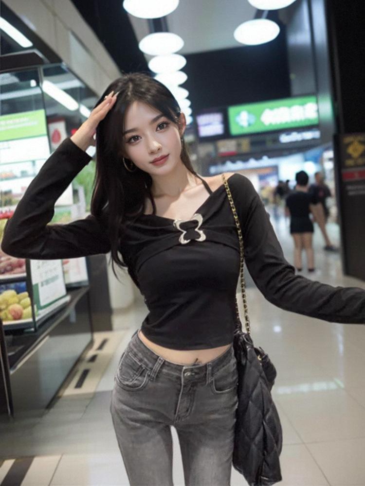 Camiseta de manga larga ajustada con cuello colgante y hombros descubiertos Pure Want, estilo coreano de otoño 2024, nueva camiseta sexy que combina con todo para chicas calientes.