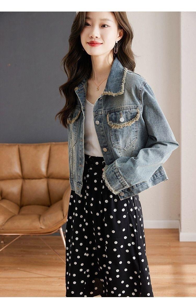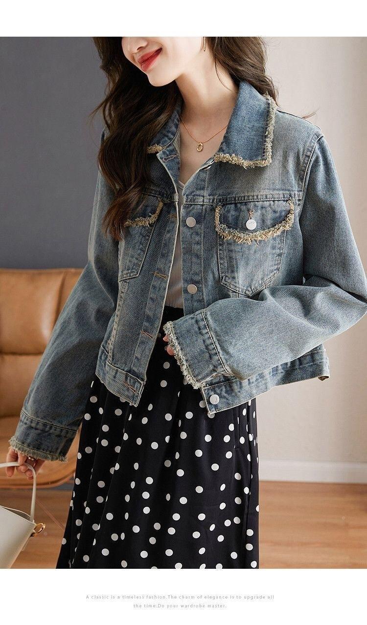Abrigo de mezclilla vintage estilo Hong Kong para mujer, primavera y otoño, holgado estilo Bf, versátil, chaqueta corta, top moderno para mujeres pequeñas