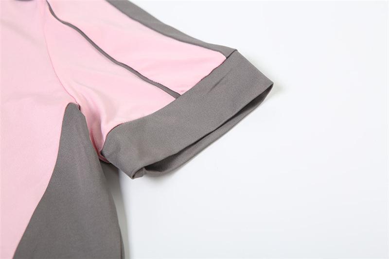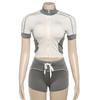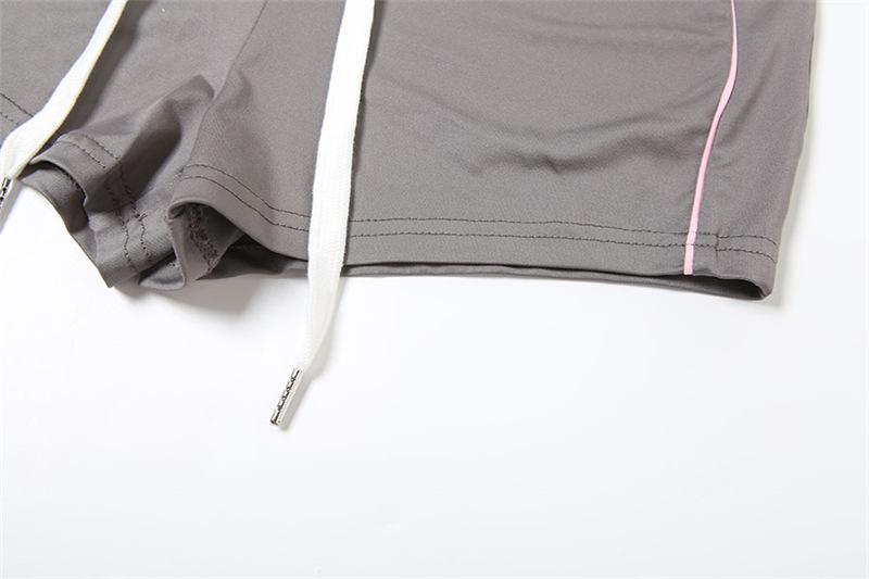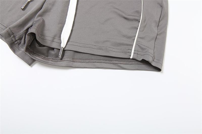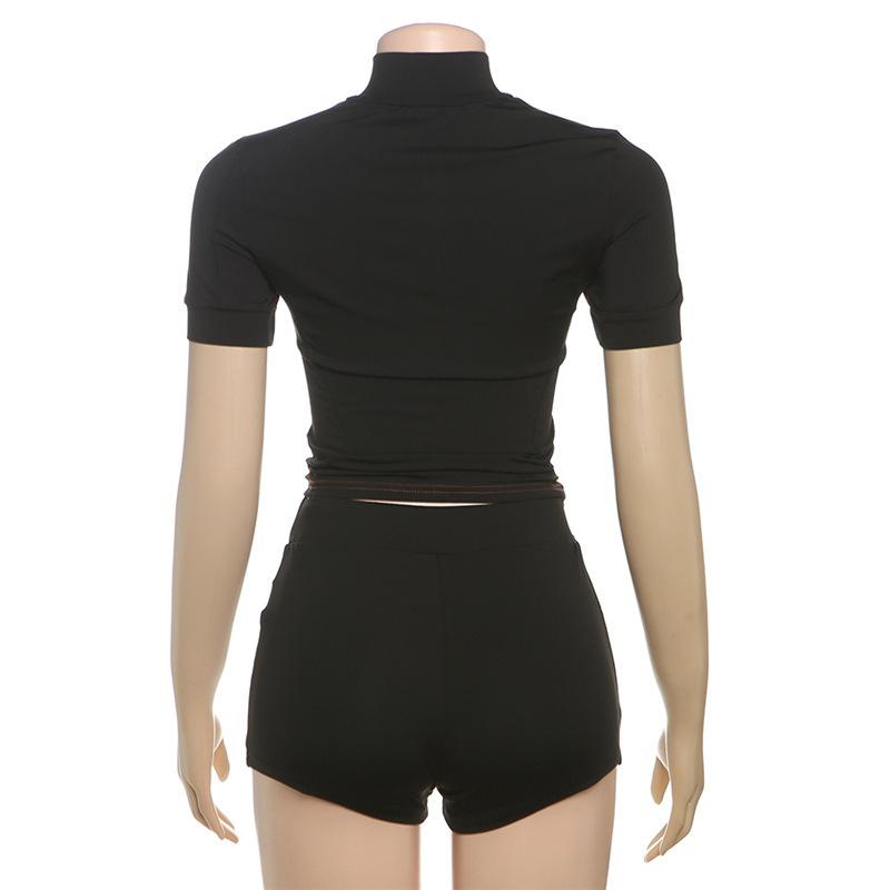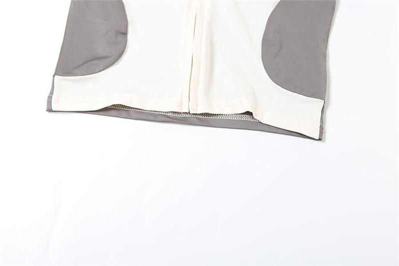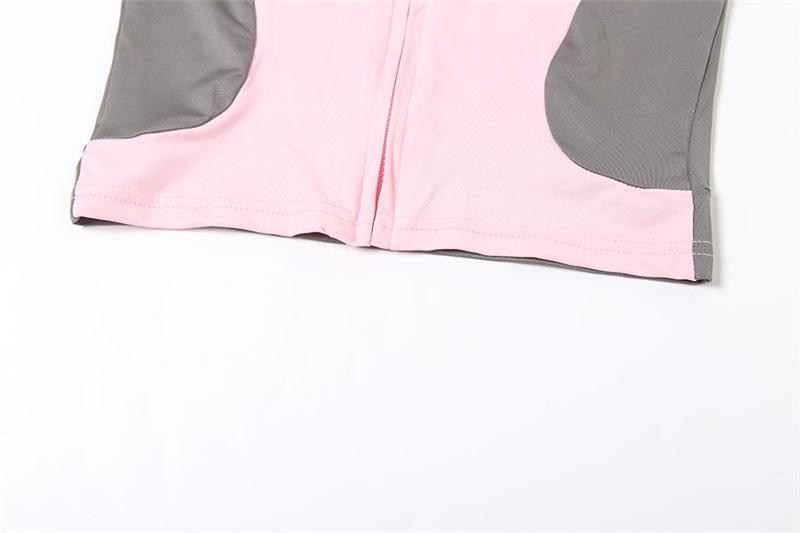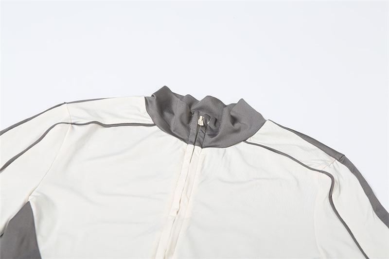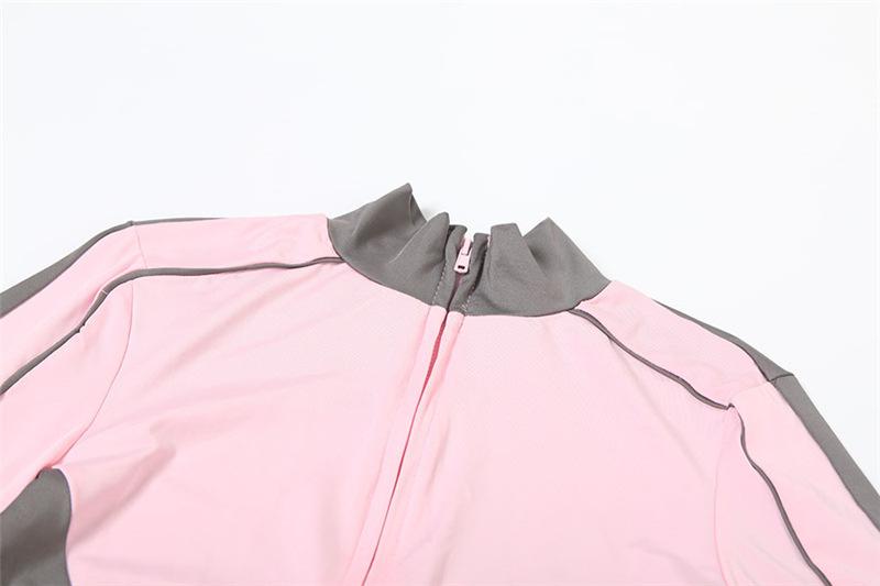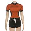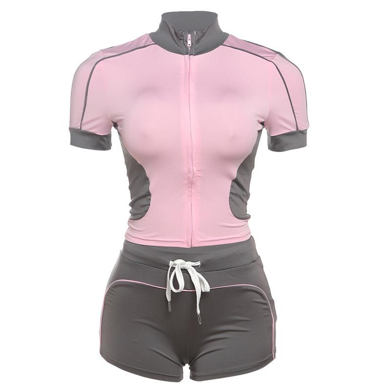 Traje deportivo de verano de moda de estilo europeo y americano transfronterizo 2025 para mujer, con cuello de calle, cremallera, costuras de color en contraste