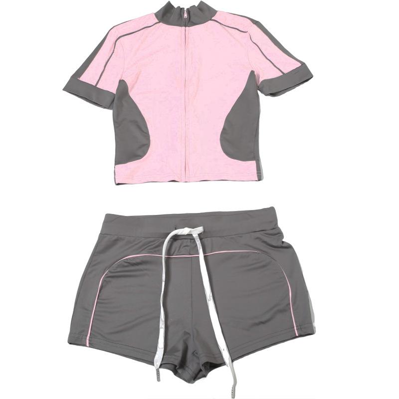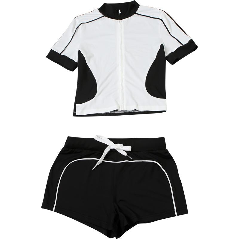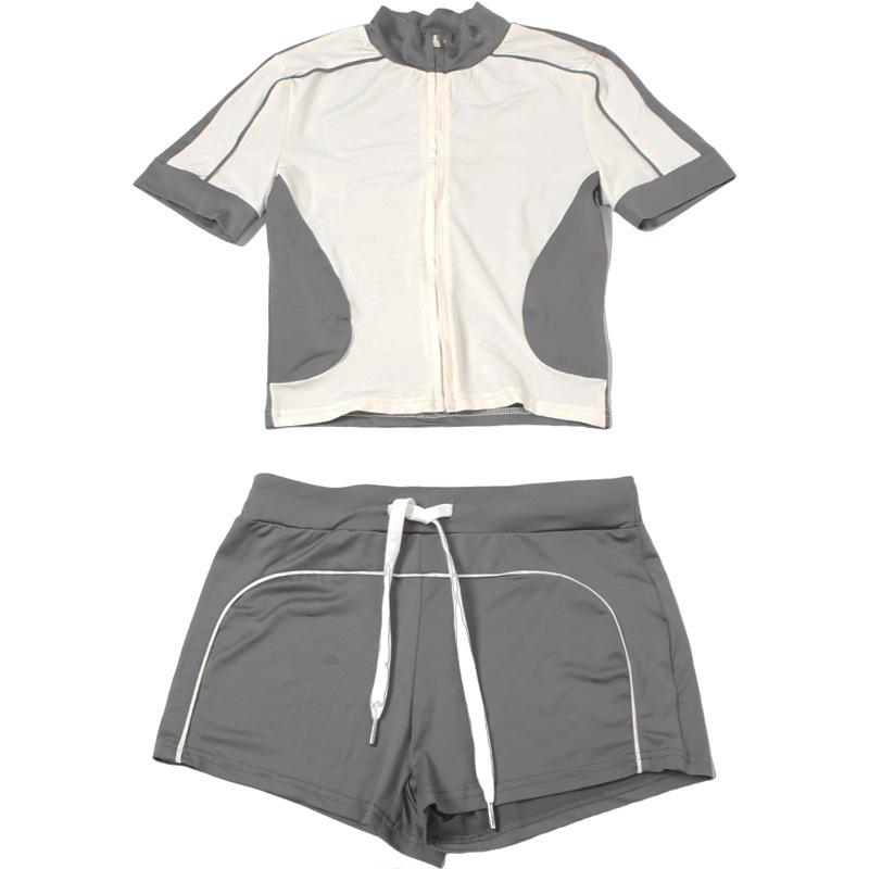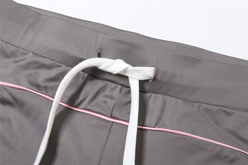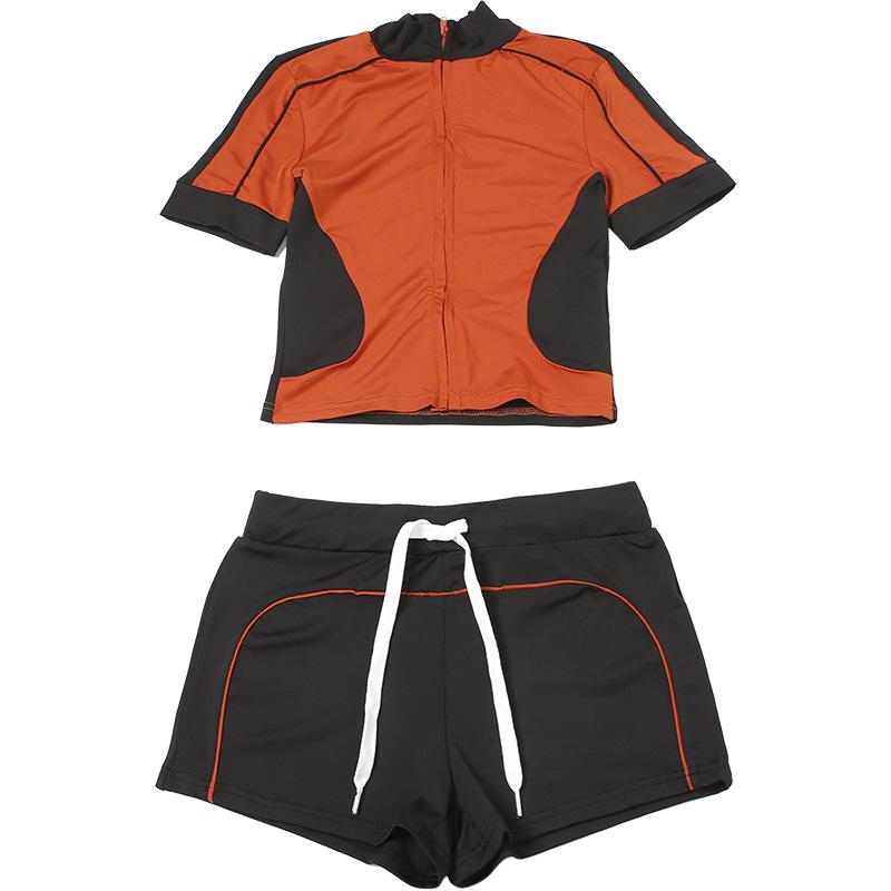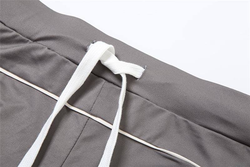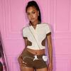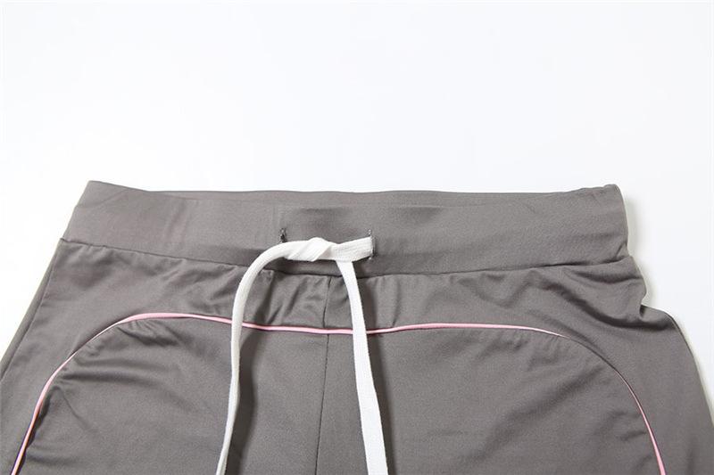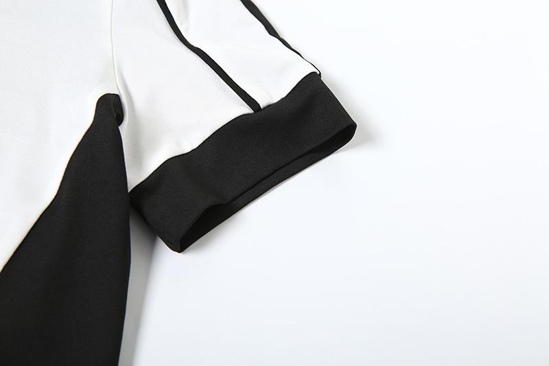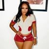 Traje deportivo de verano de moda de estilo europeo y americano transfronterizo 2025 para mujer, con cuello de calle, cremallera, costuras de color en contraste