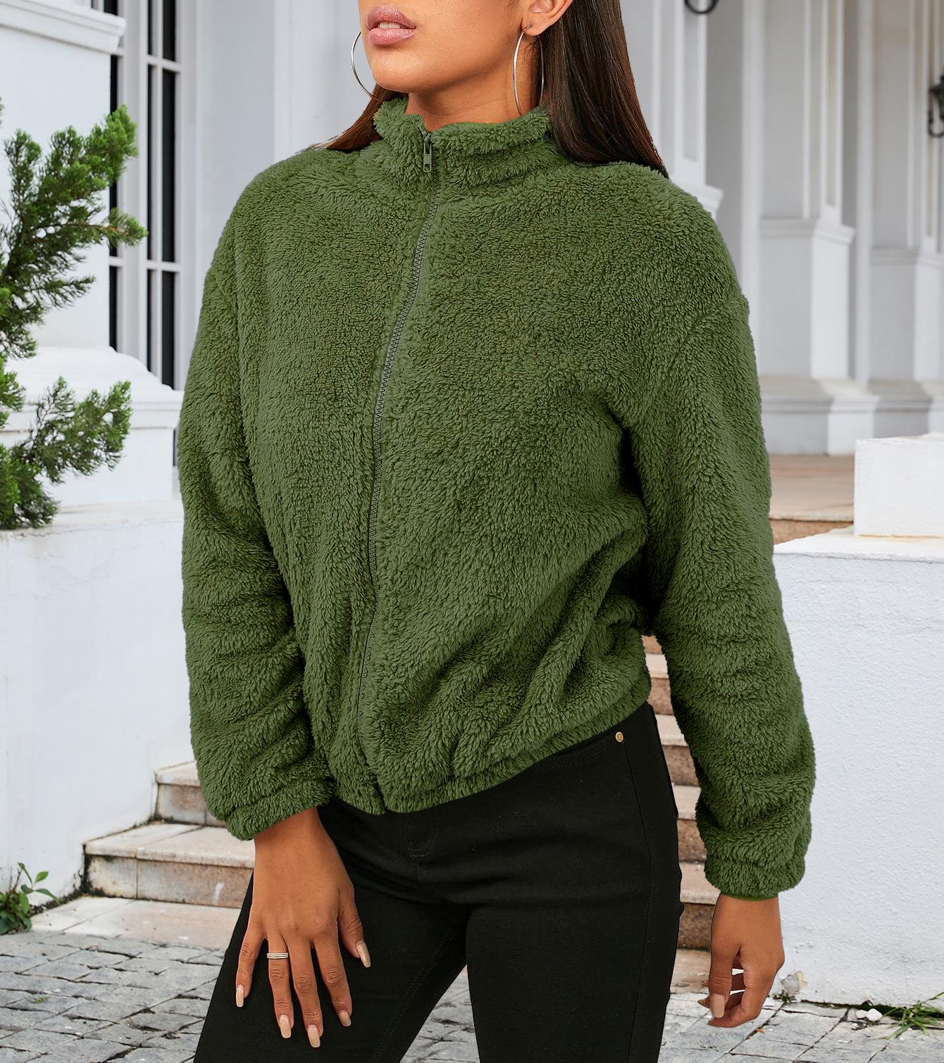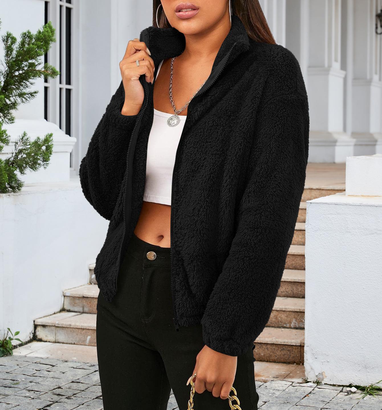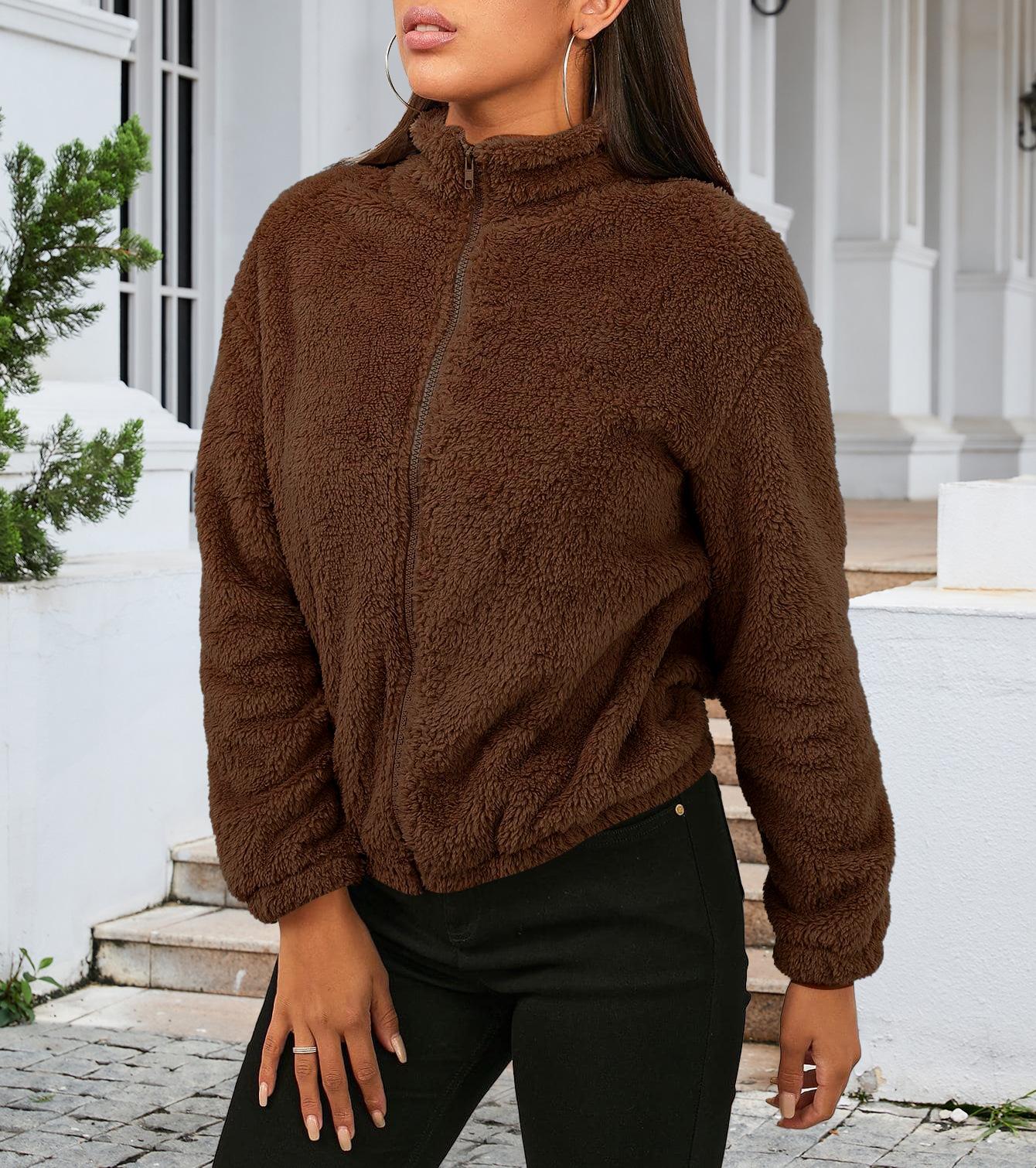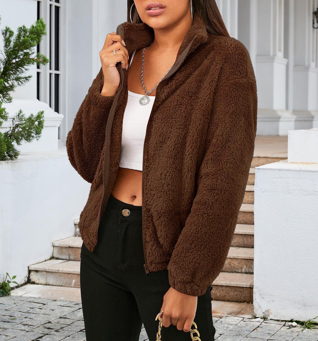 Abrigo de Moda para Mujer Europeo y Americano Invierno Amazon Nuevo Cárdigan Cálido de Felpa Suelto de Manga Larga