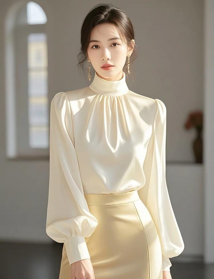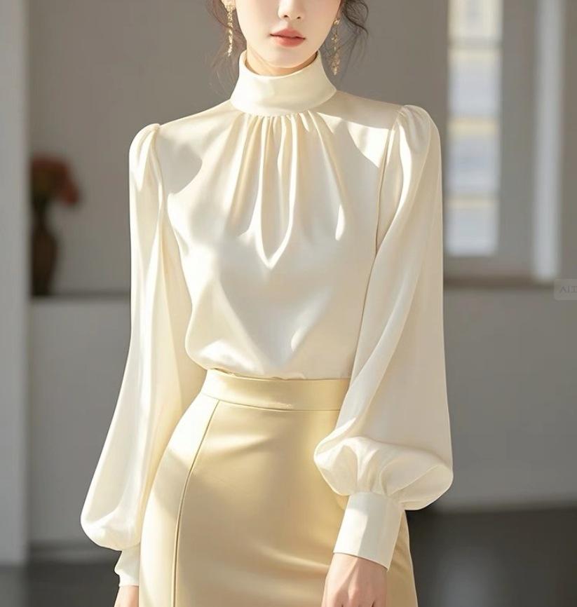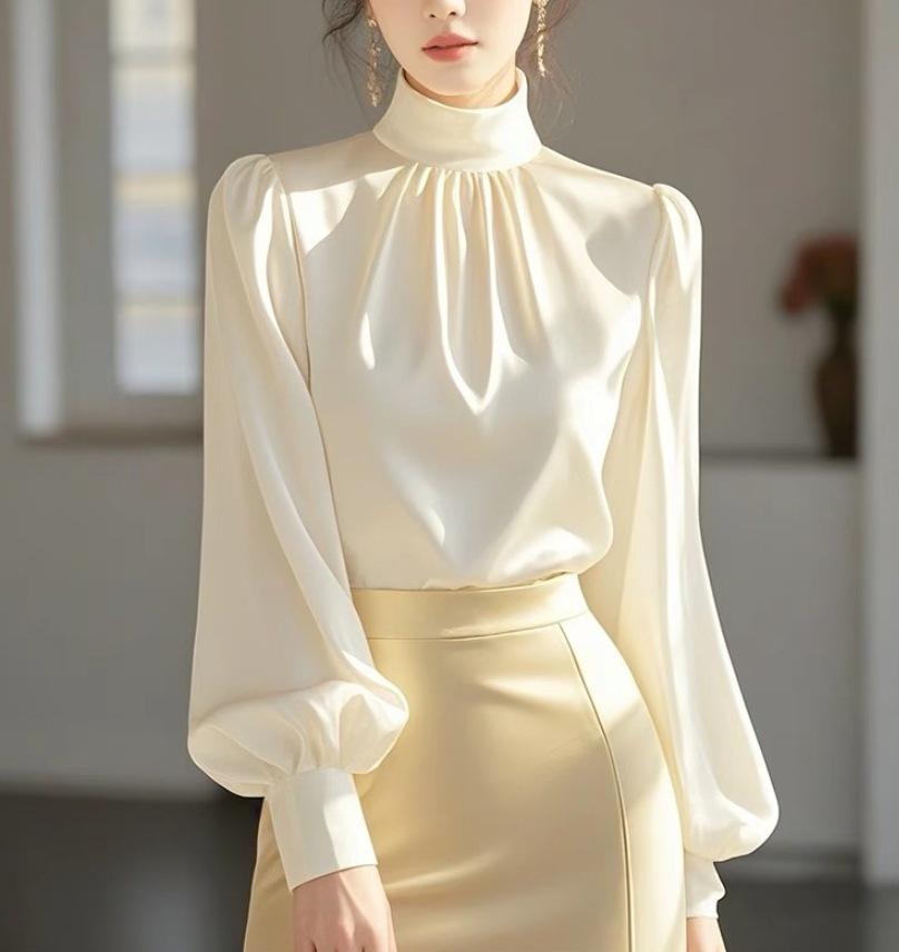 Camisa blanca elegante y moderna de primavera y otoño con un nuevo diseño de nicho francés.
