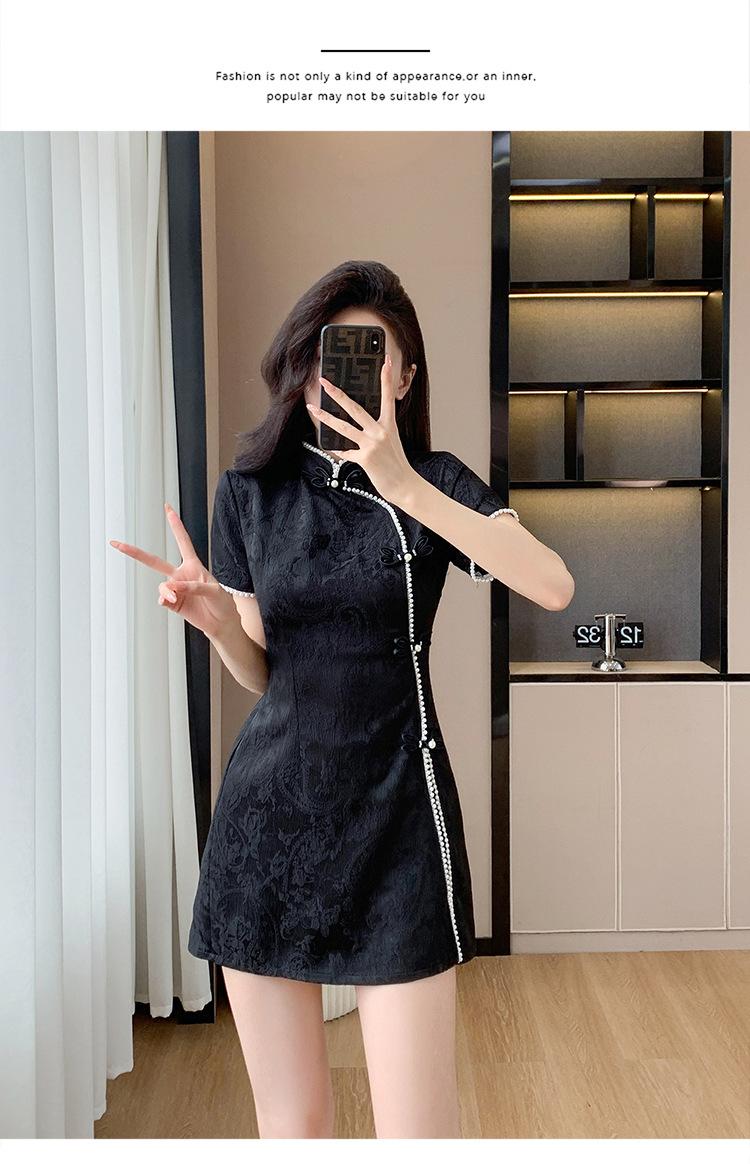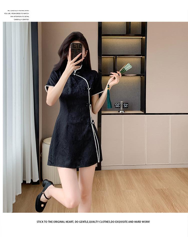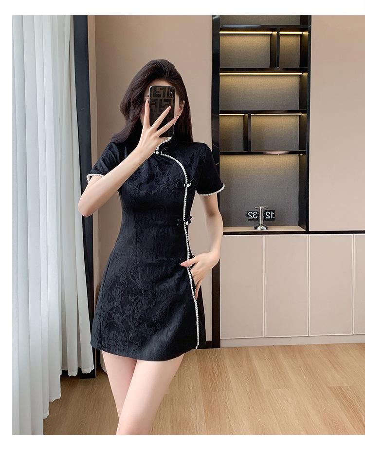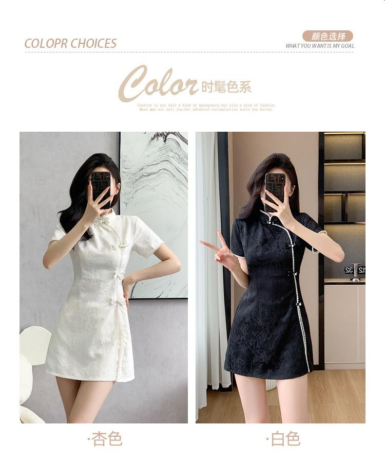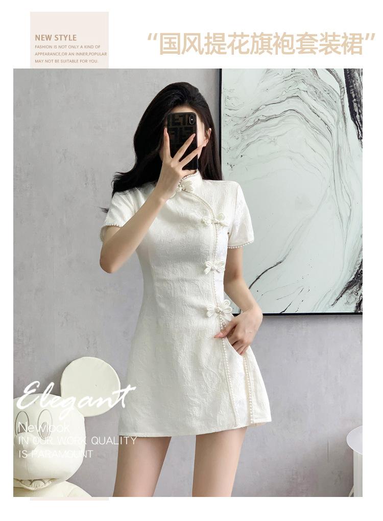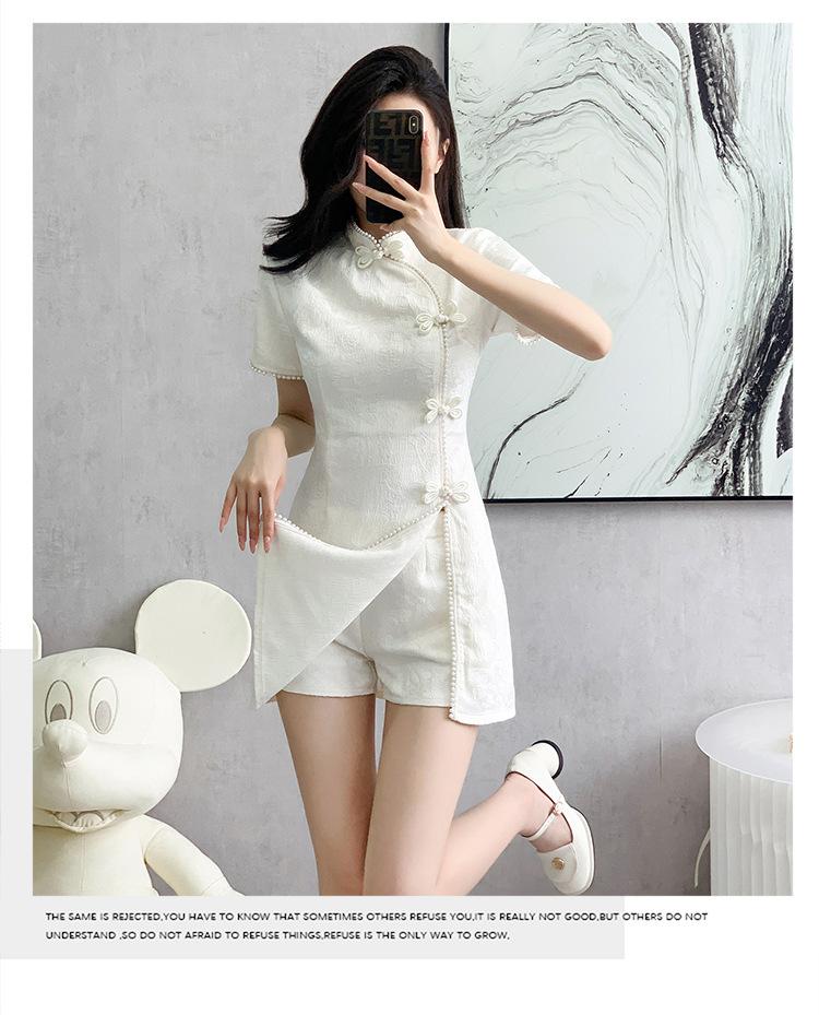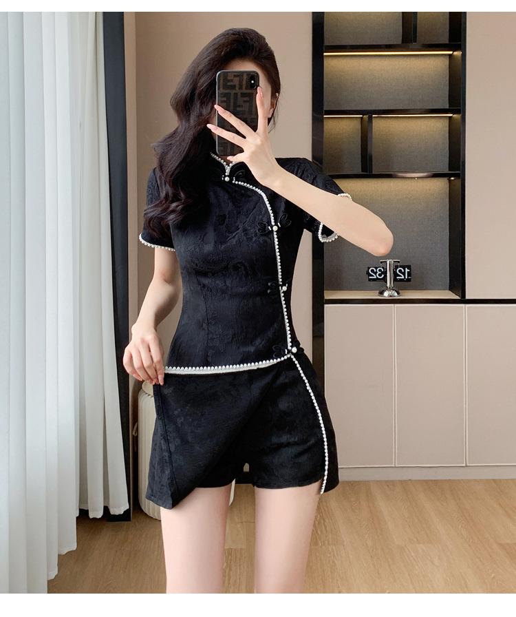 Verano 2025 Jacquard Empalmado Lazo de Perlas Botón de Placa Estilo Chino Nuevo Cheongsam Mejorado Conjunto de Dos Piezas