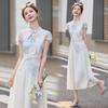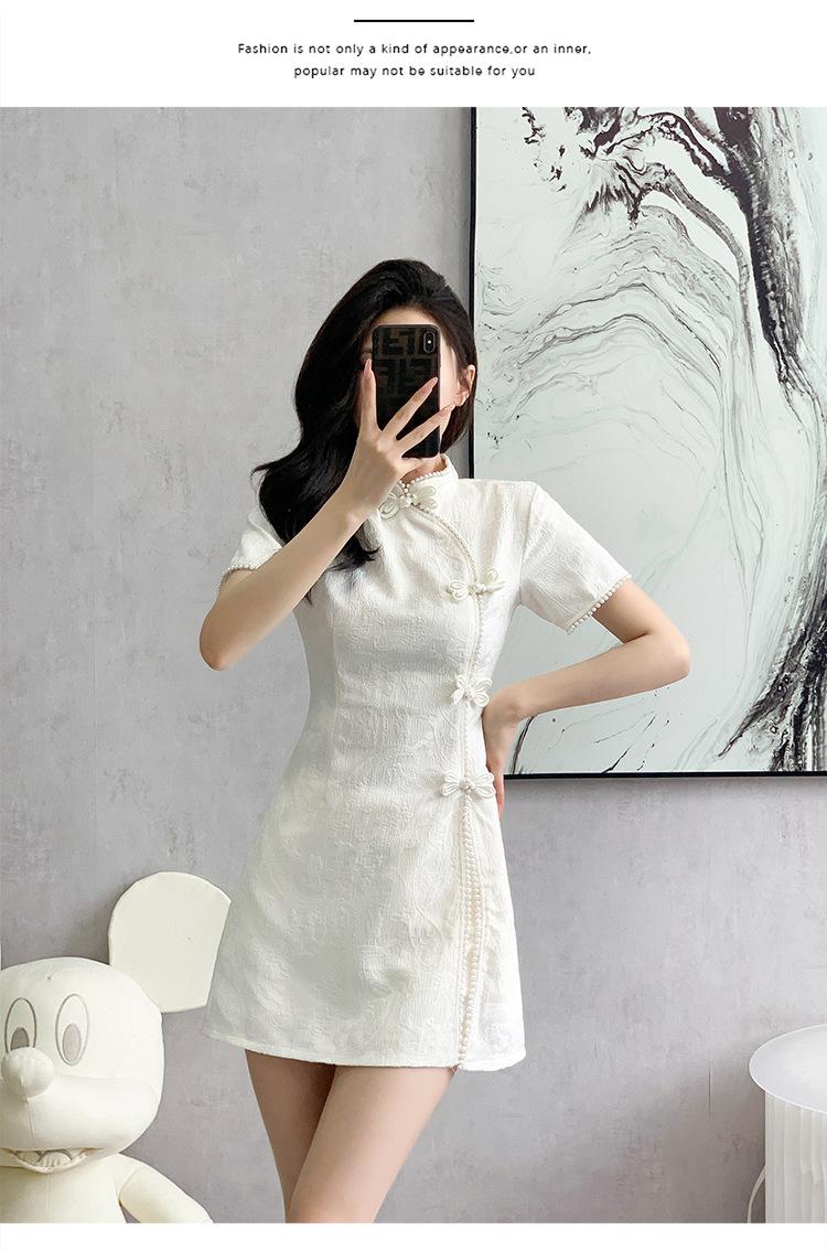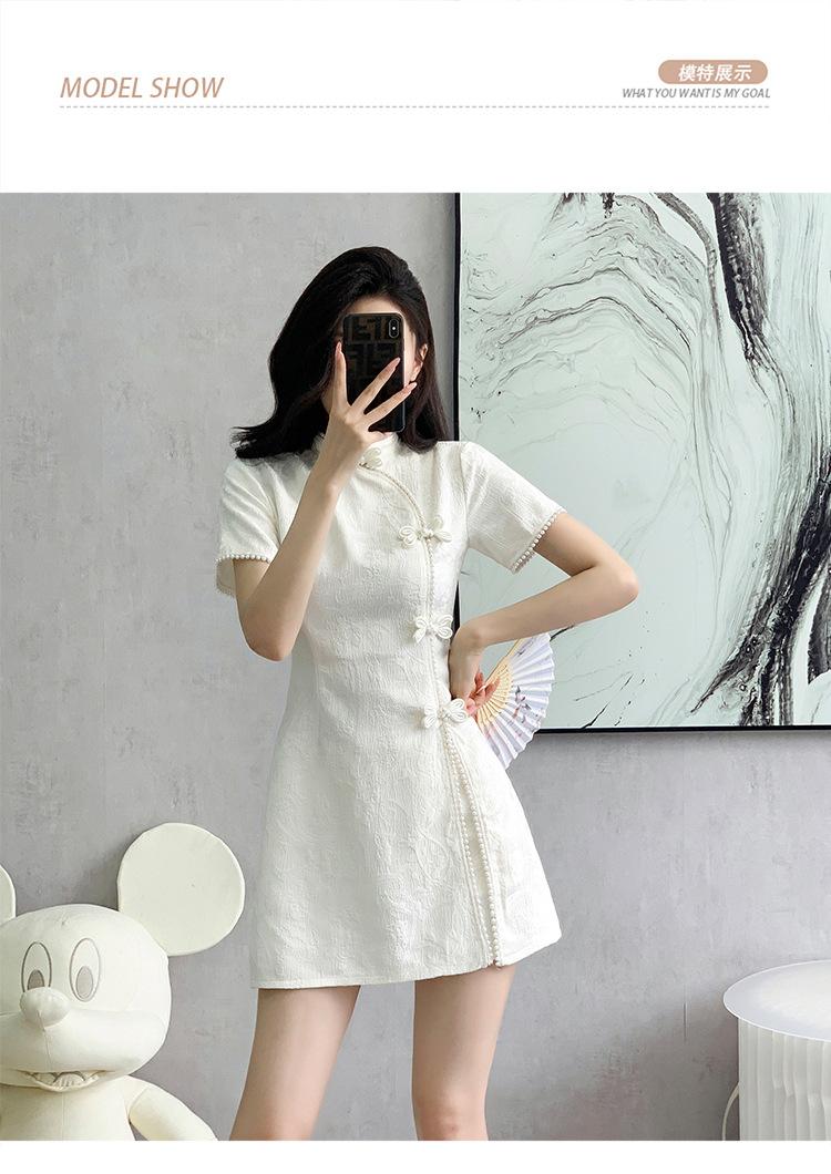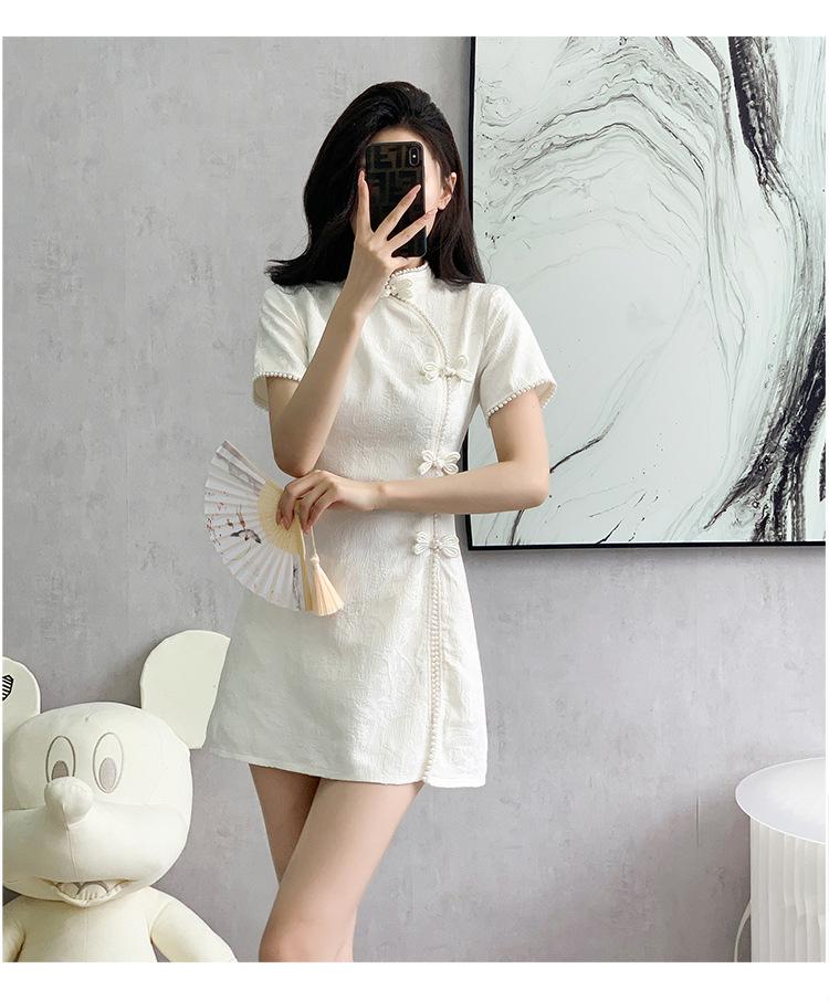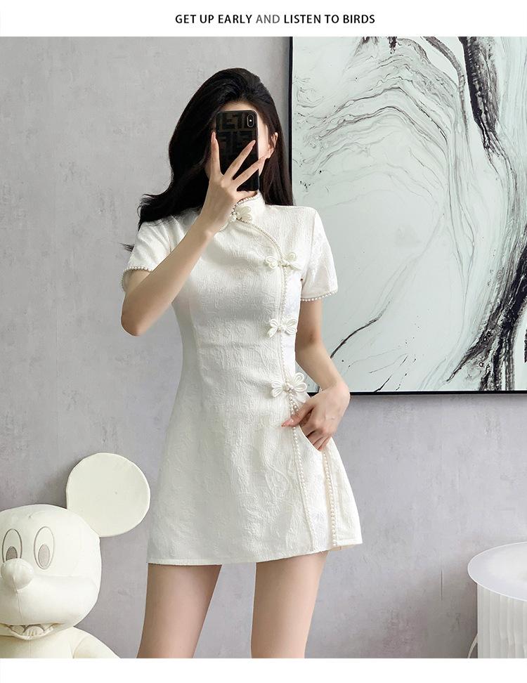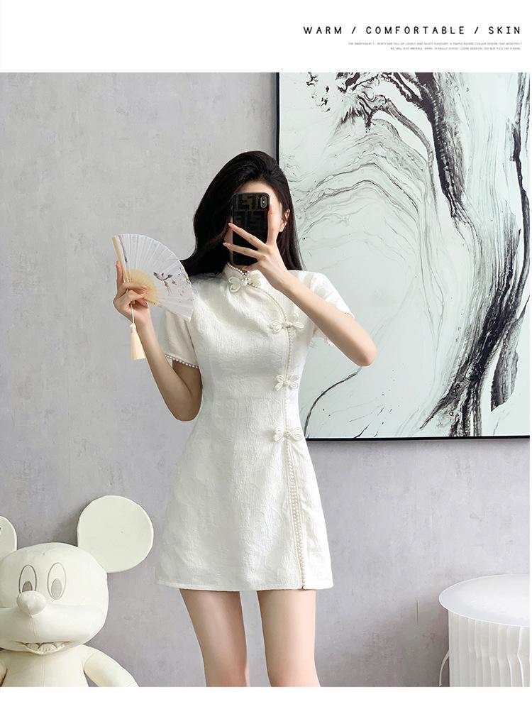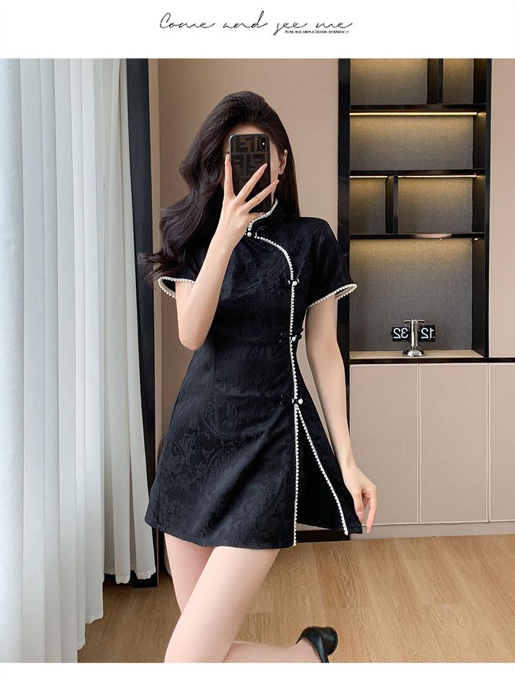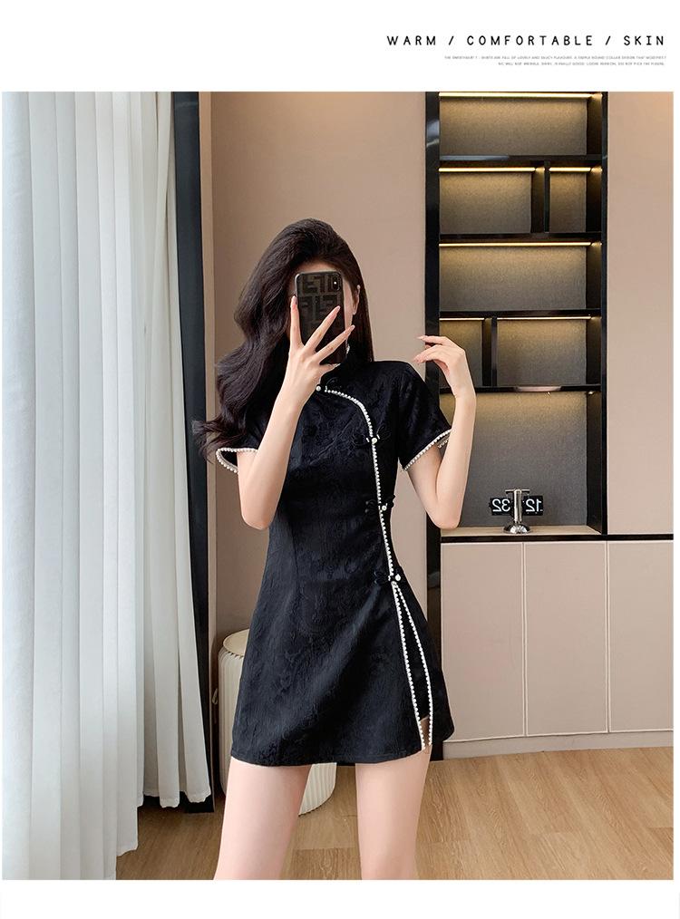Verano 2025 Jacquard Empalmado Lazo de Perlas Botón de Placa Estilo Chino Nuevo Cheongsam Mejorado Conjunto de Dos Piezas