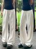 Pantalones casuales de lino blanco para mujer 2024 verano nuevo simple versátil para ir al trabajo cintura alta delgados holgados de pierna ancha