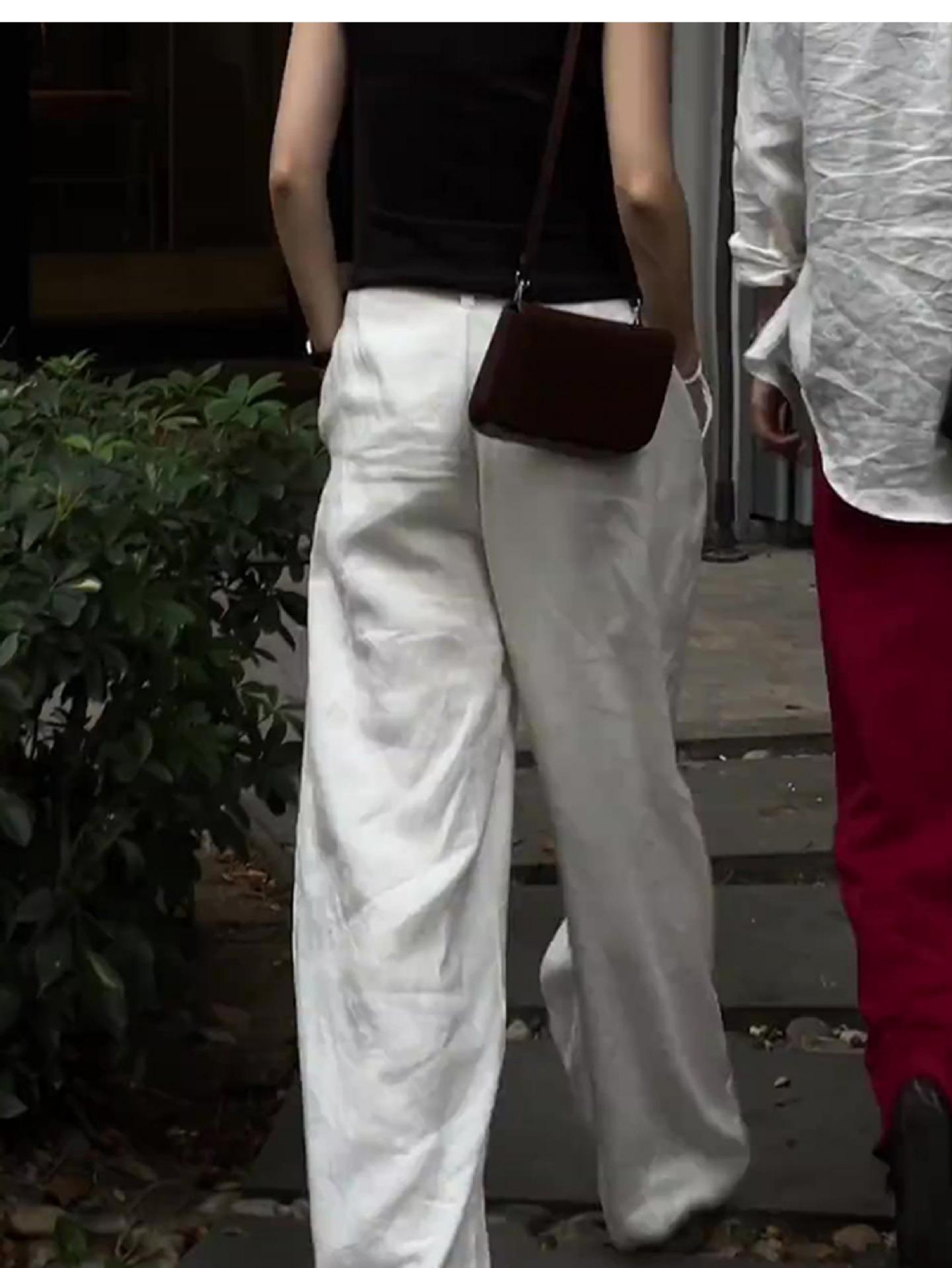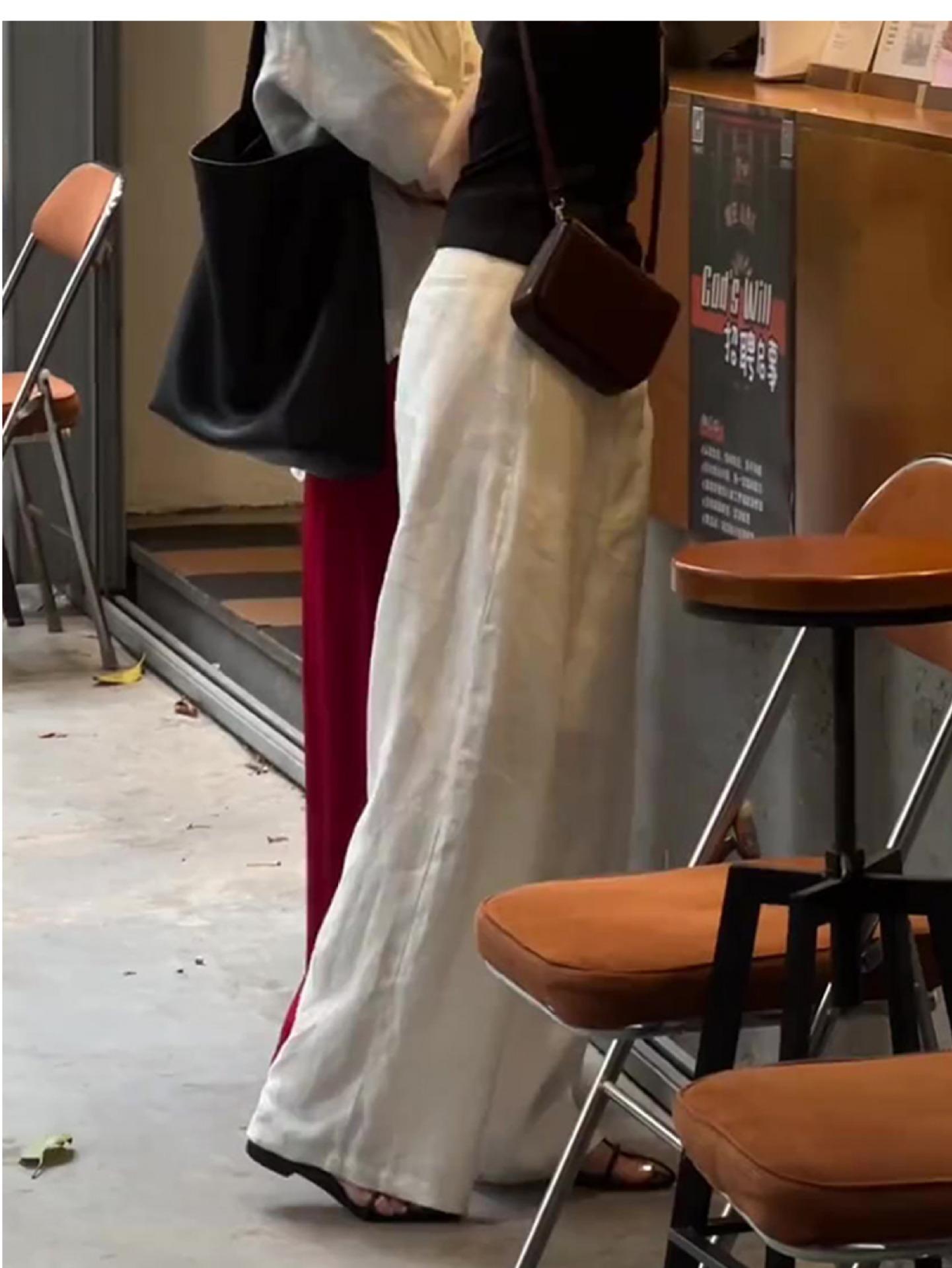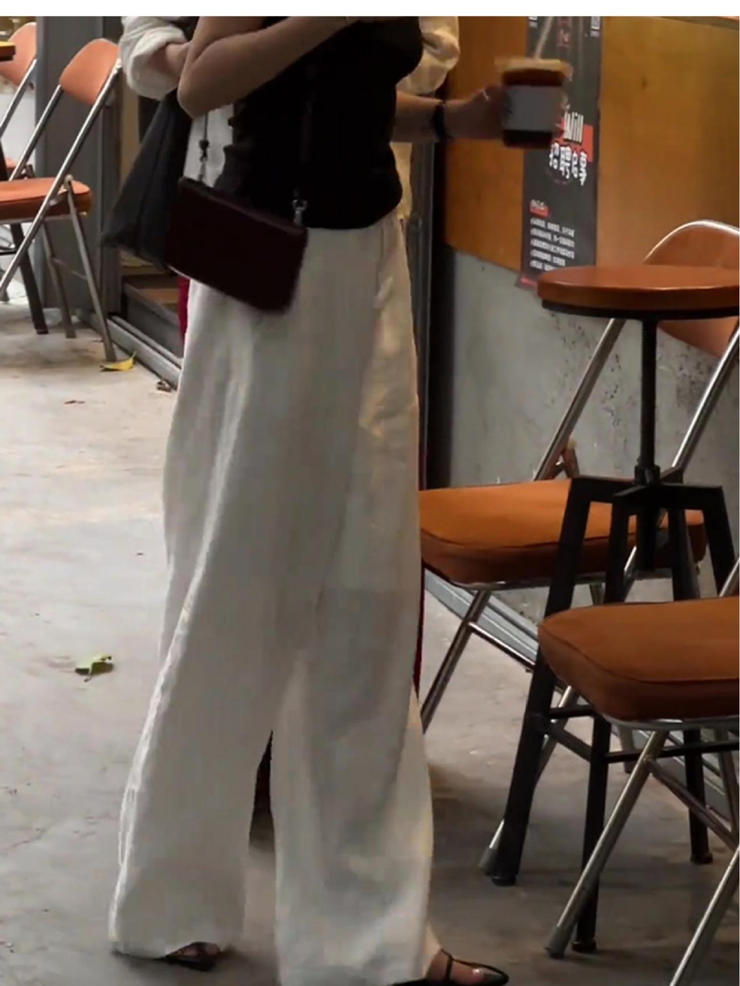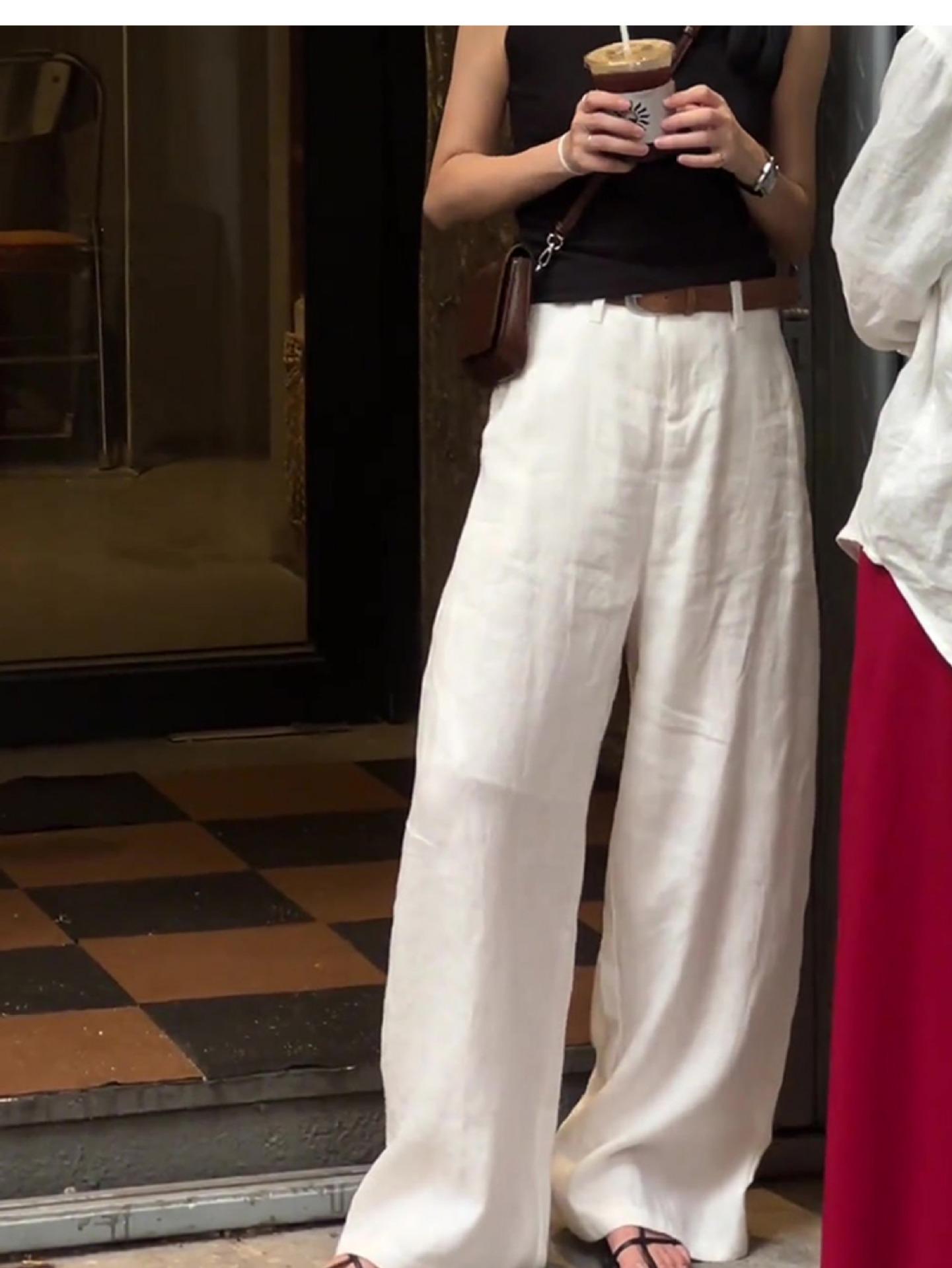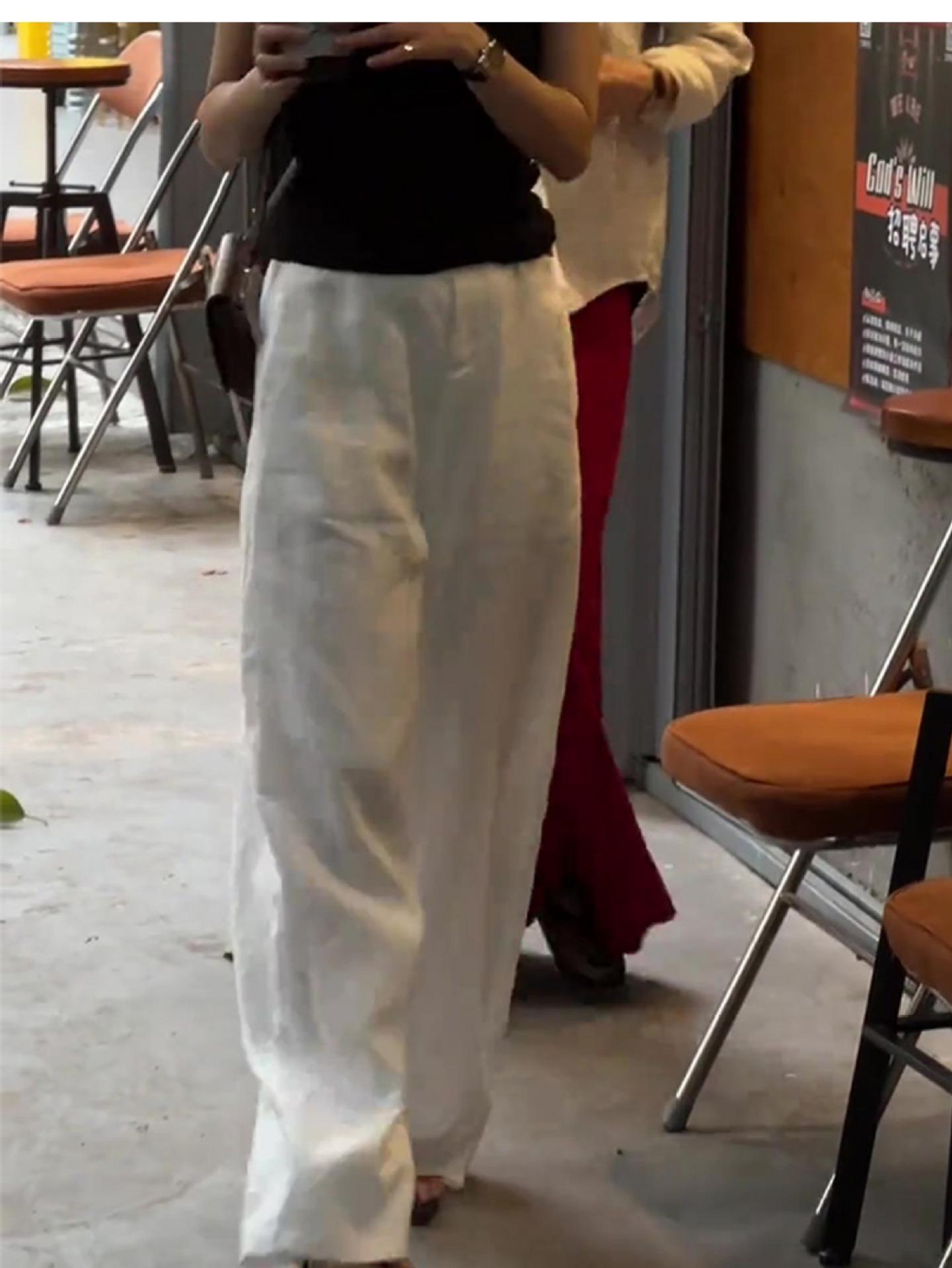 Pantalones Casuales de Lino Blanco Casual de Pierna Ancha para Mujer 2025 Verano Nuevo Versátil Cintura Alta Slim Sueltos Rectos