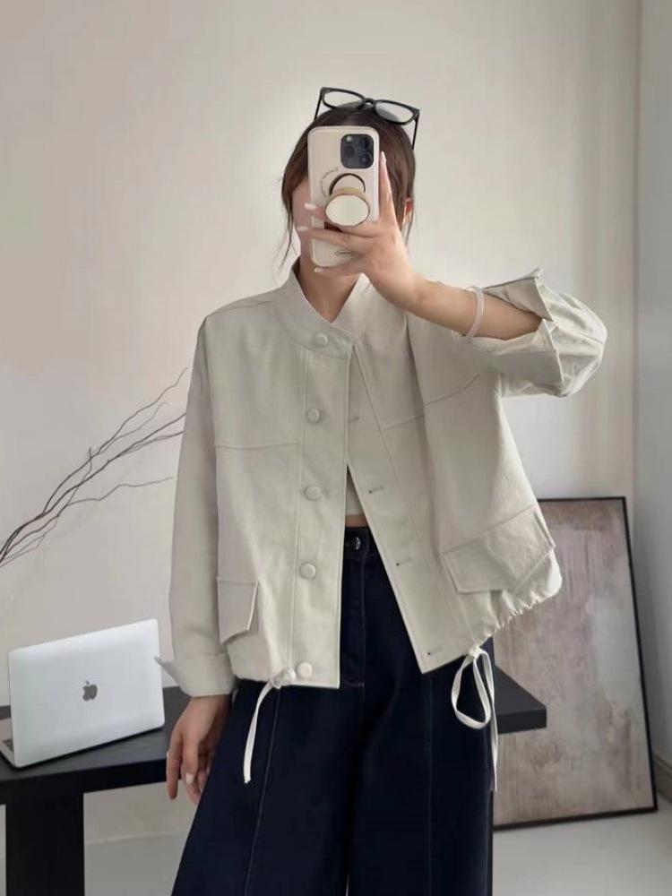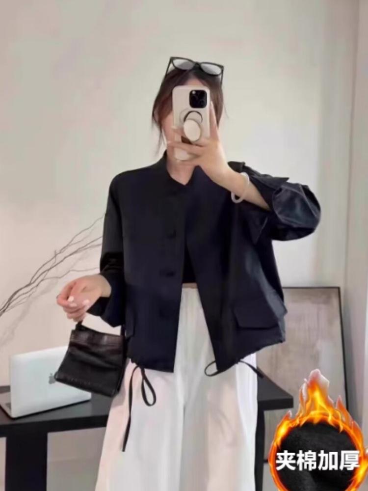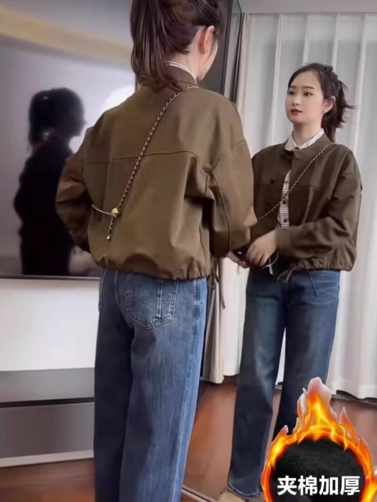 Chaqueta Corta Gruesa para Mujer, Nuevo Otoño e Invierno 2025 Estilo Coreano, Corte Holgado, Sensación de Alta Gama, Top Petite