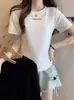 Camiseta de manga corta de moda para mujer, nueva camiseta de verano 2025 con diseño de hombros descubiertos para mujer, camiseta dulce