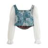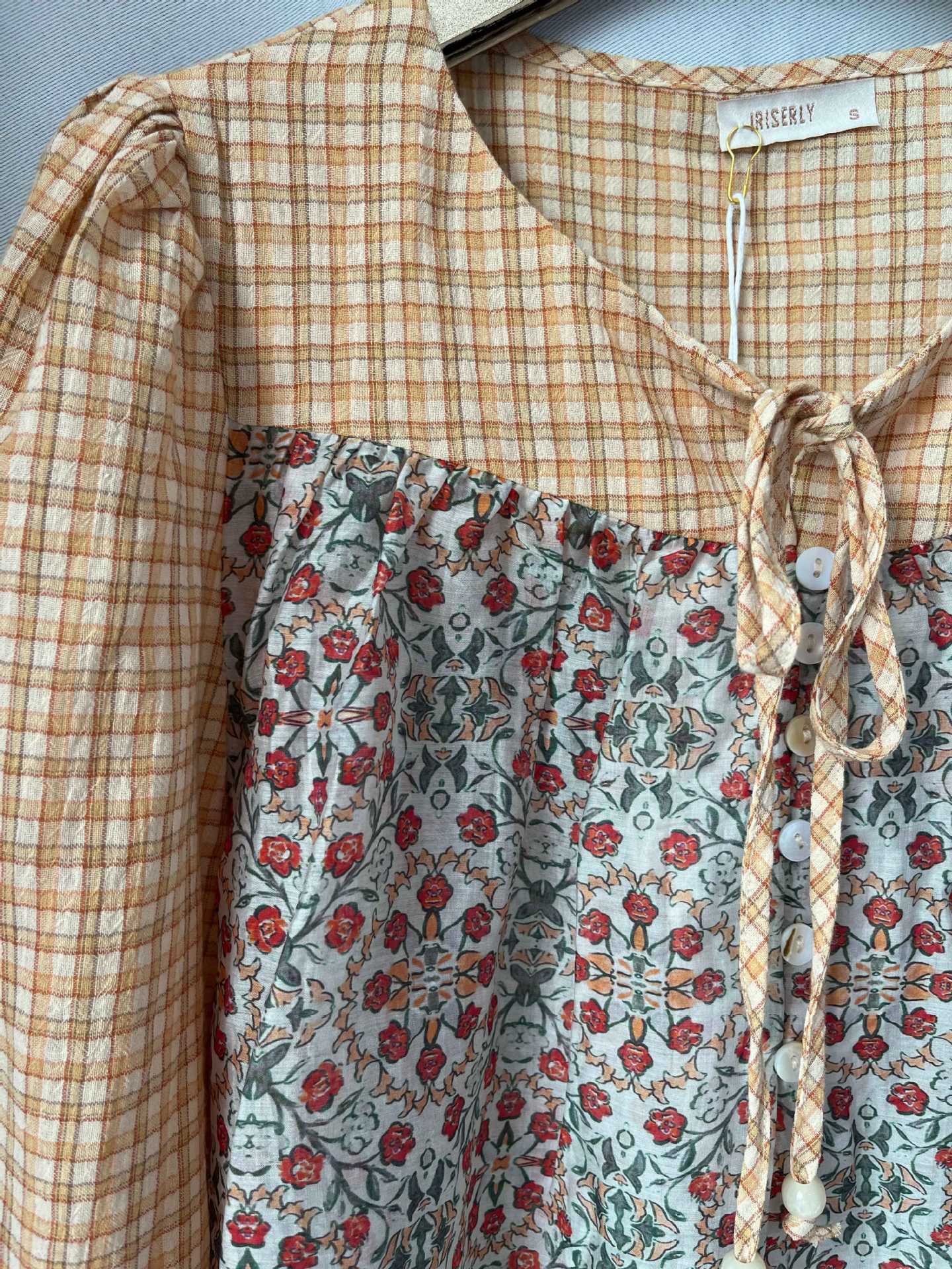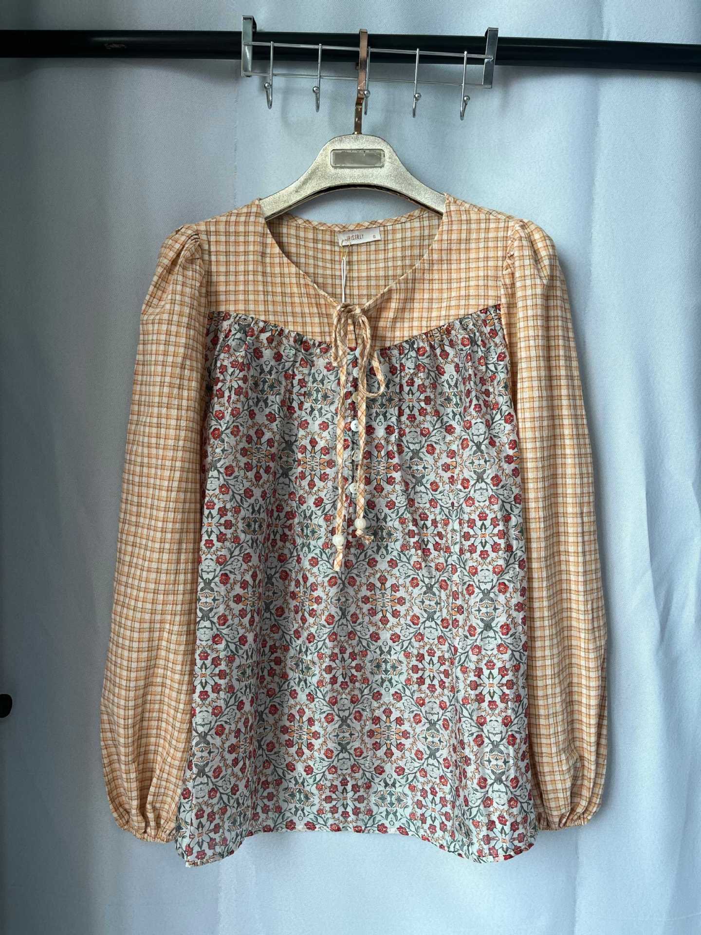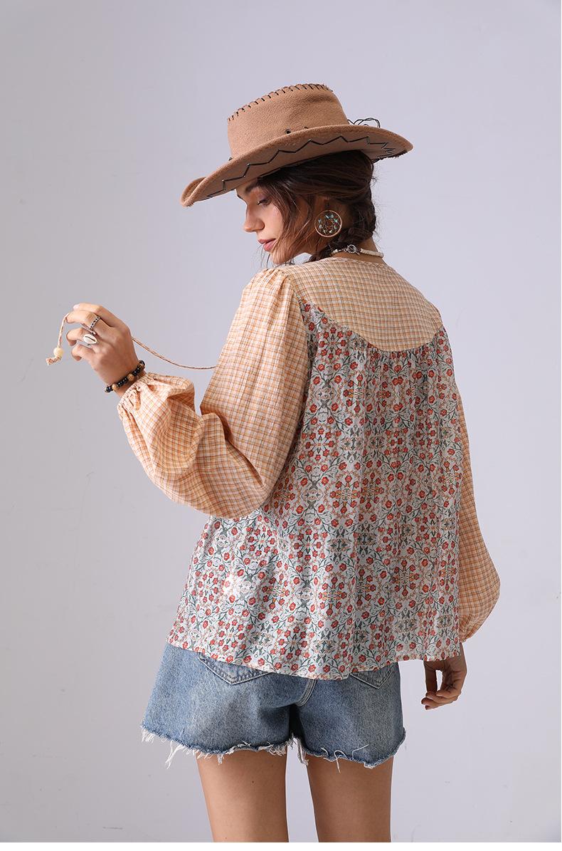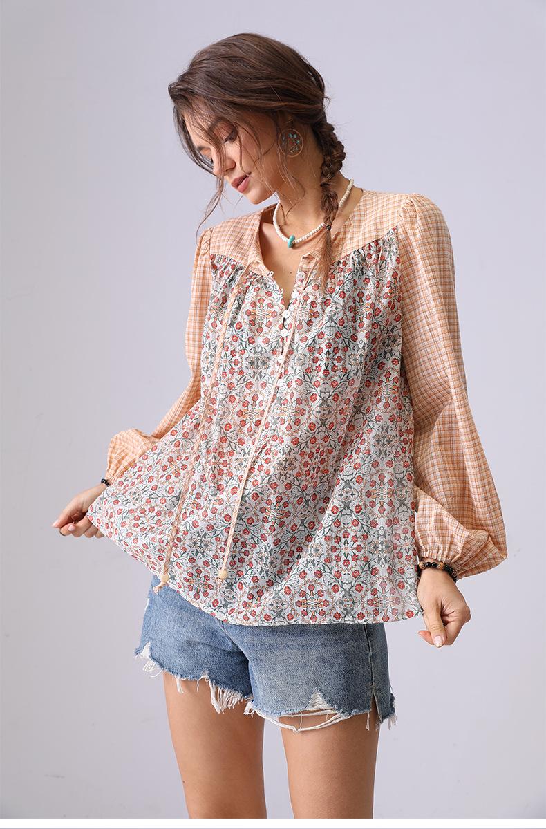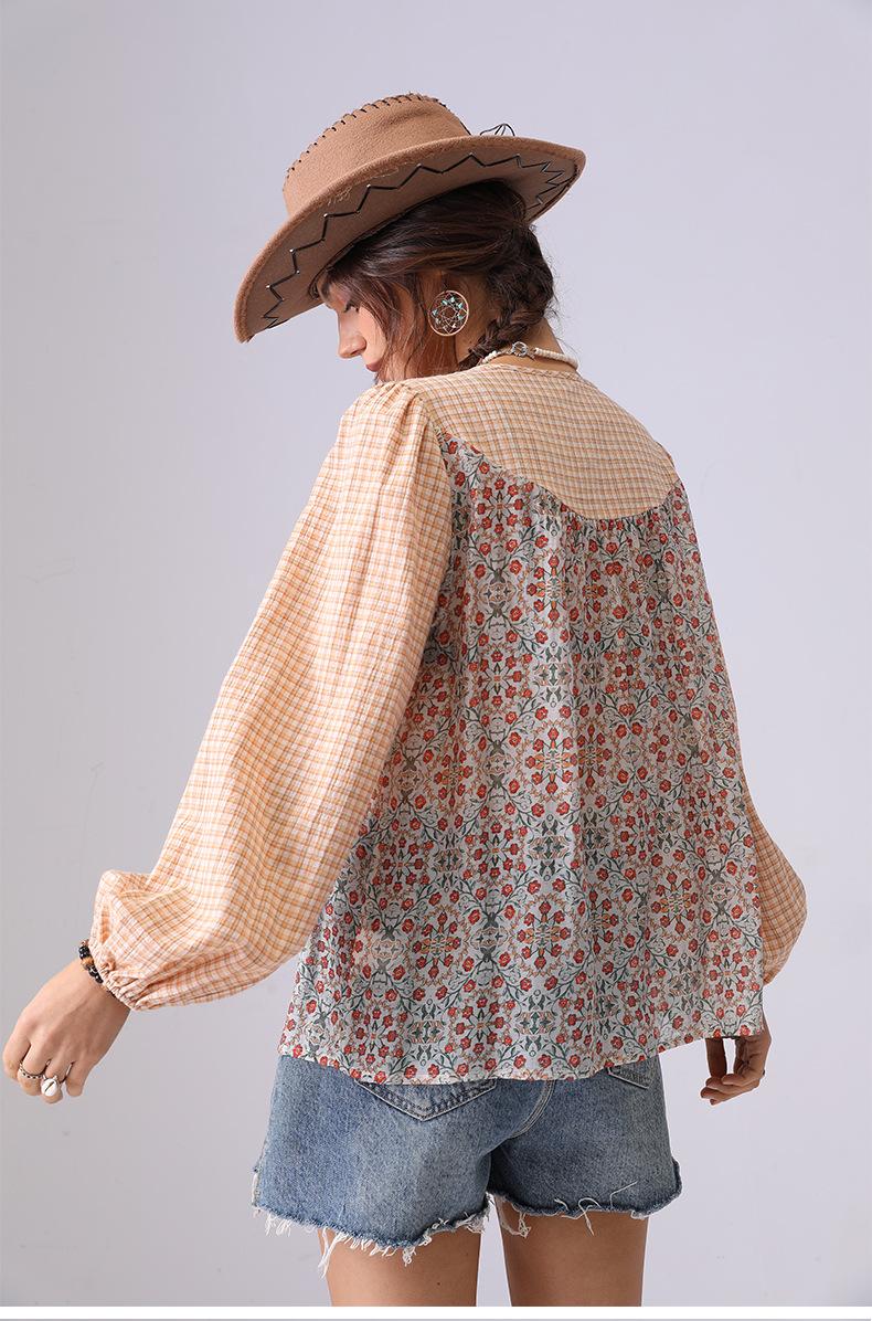 Blusa de mujer IRISERLY con diseño floral de patchwork y nicho francés, de primavera y verano, con cuello en V y cordones, de manga larga.