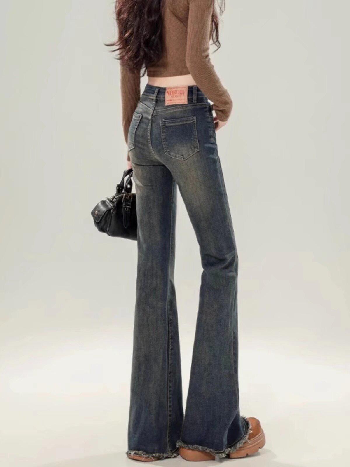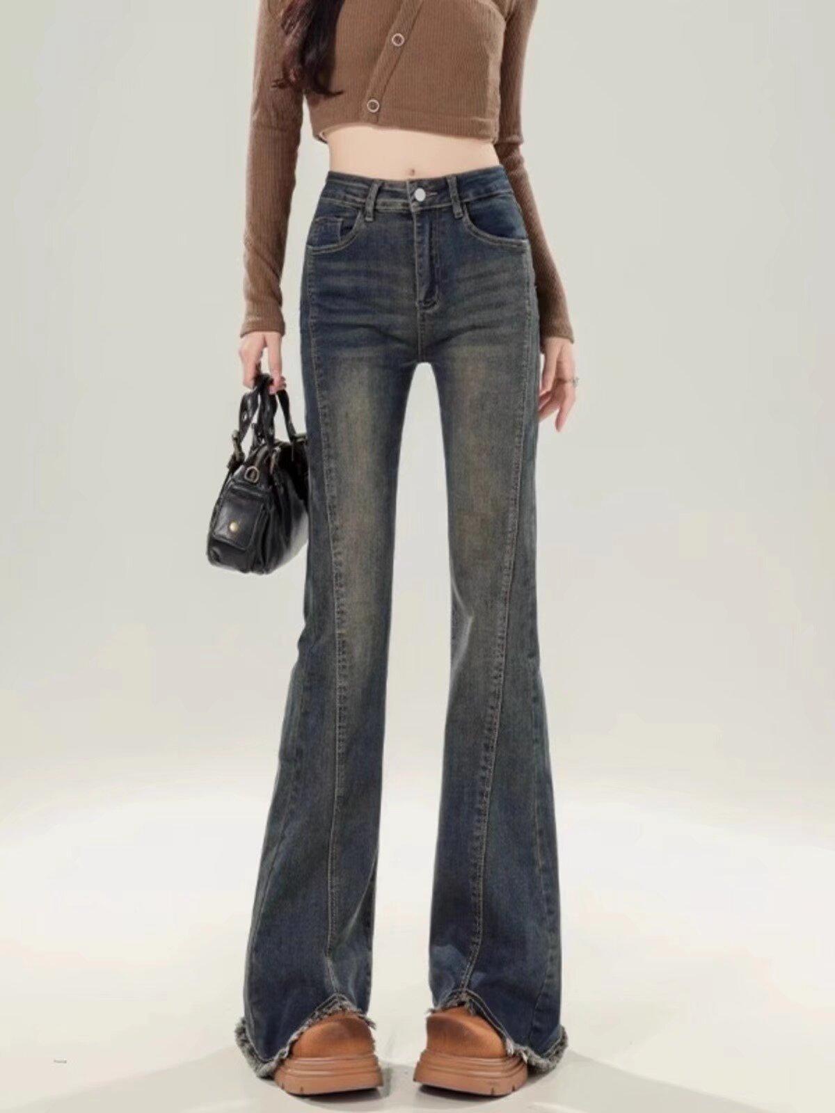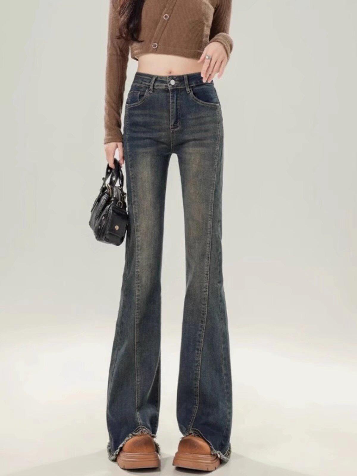Pantalones de mezclilla micro con abertura americana para mujer, primavera, otoño e invierno 2025, nuevos, de cintura alta, adelgazantes, estilo trompeta