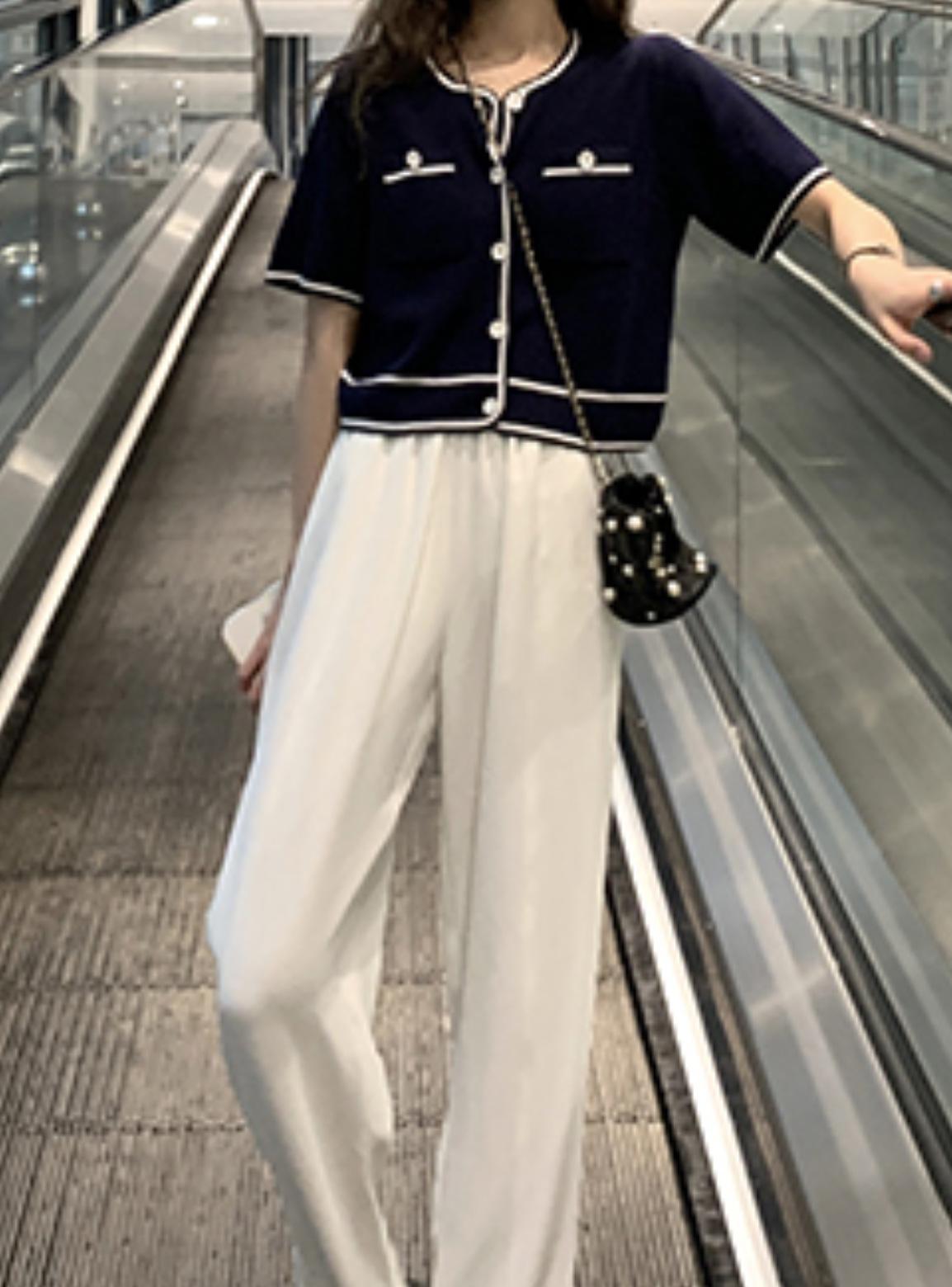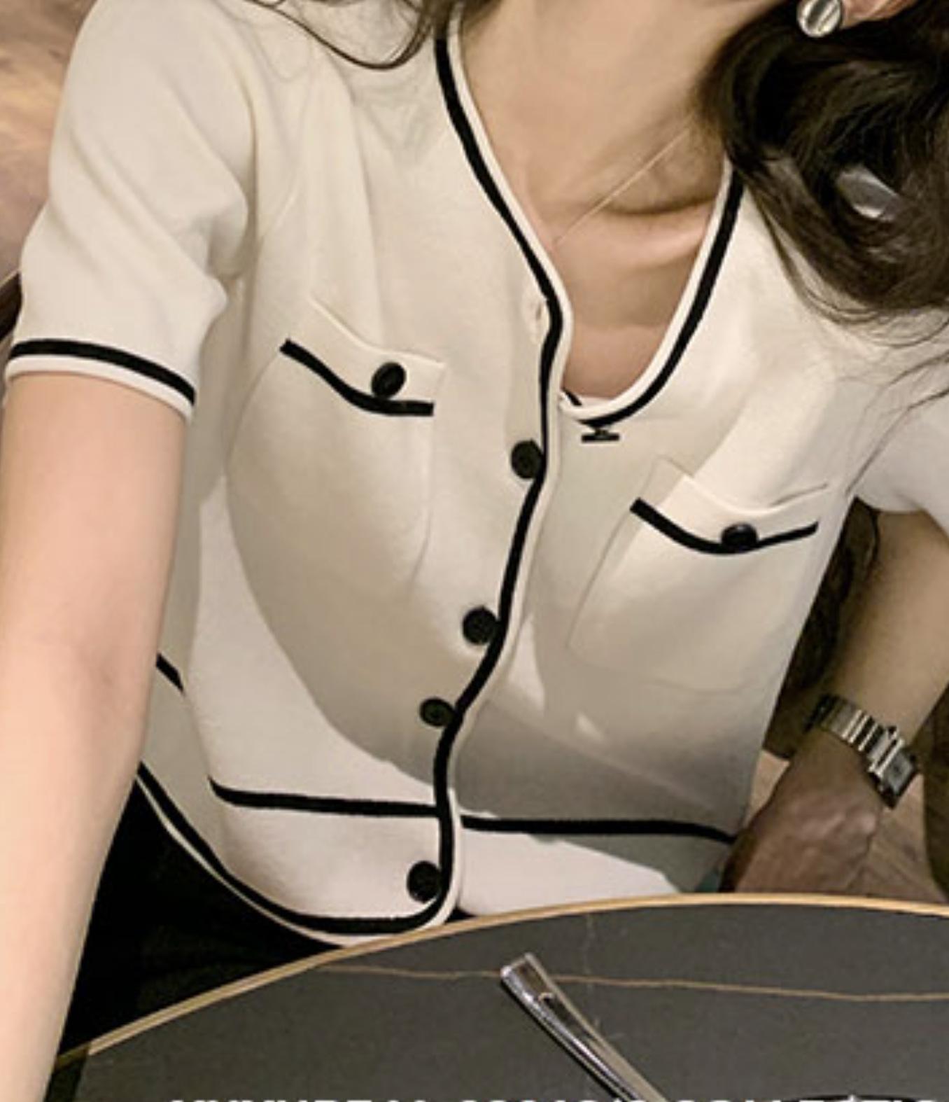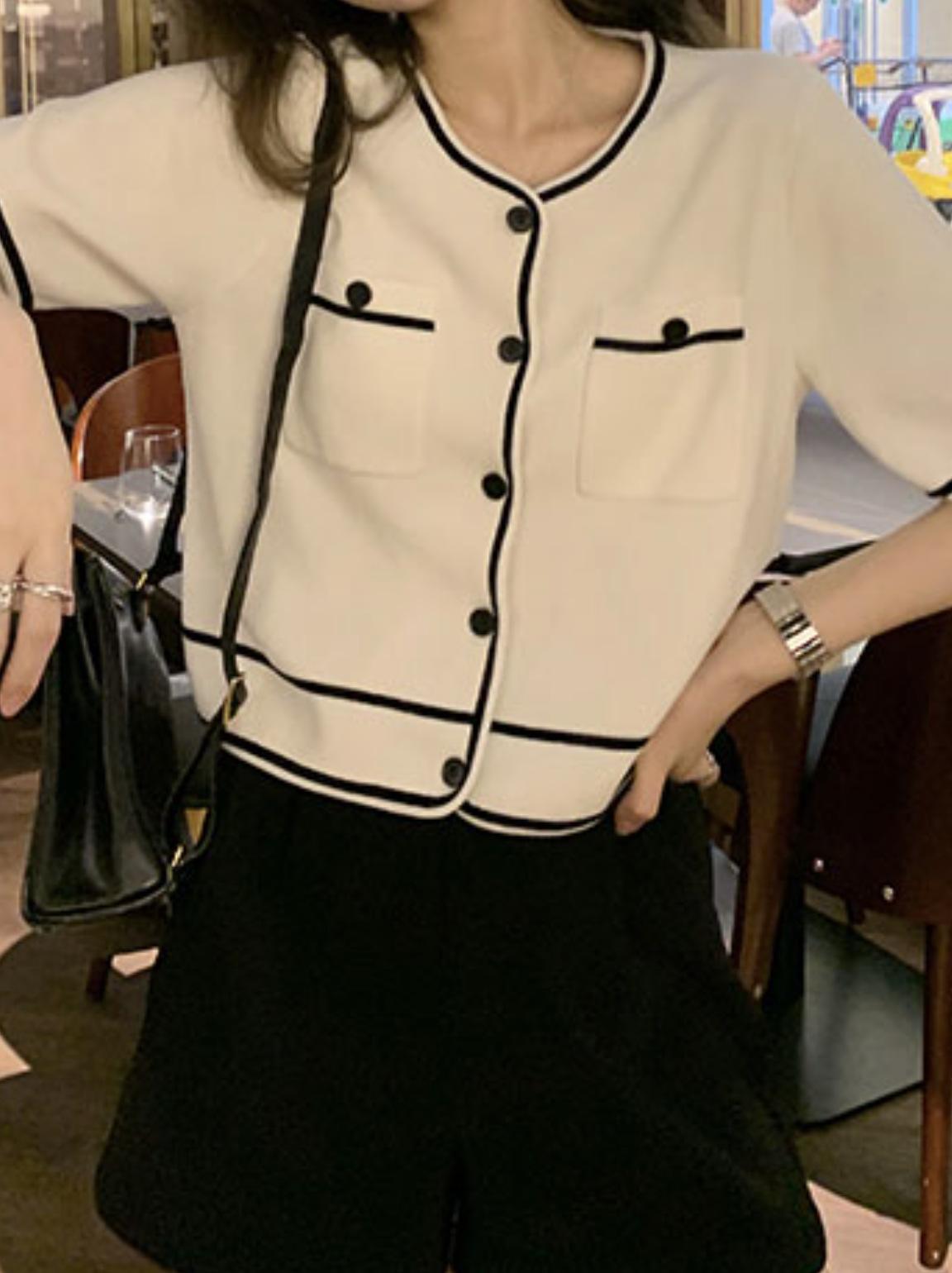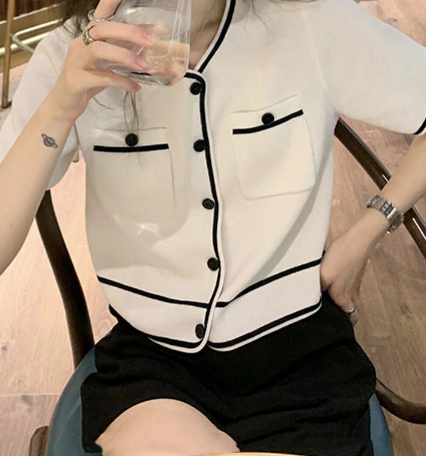 Cárdigan de punto Xiaoxiang de manga corta para mujer, diseño elegante, suave, cómodo y a la moda, chaqueta fina de verano para combinar con todo.