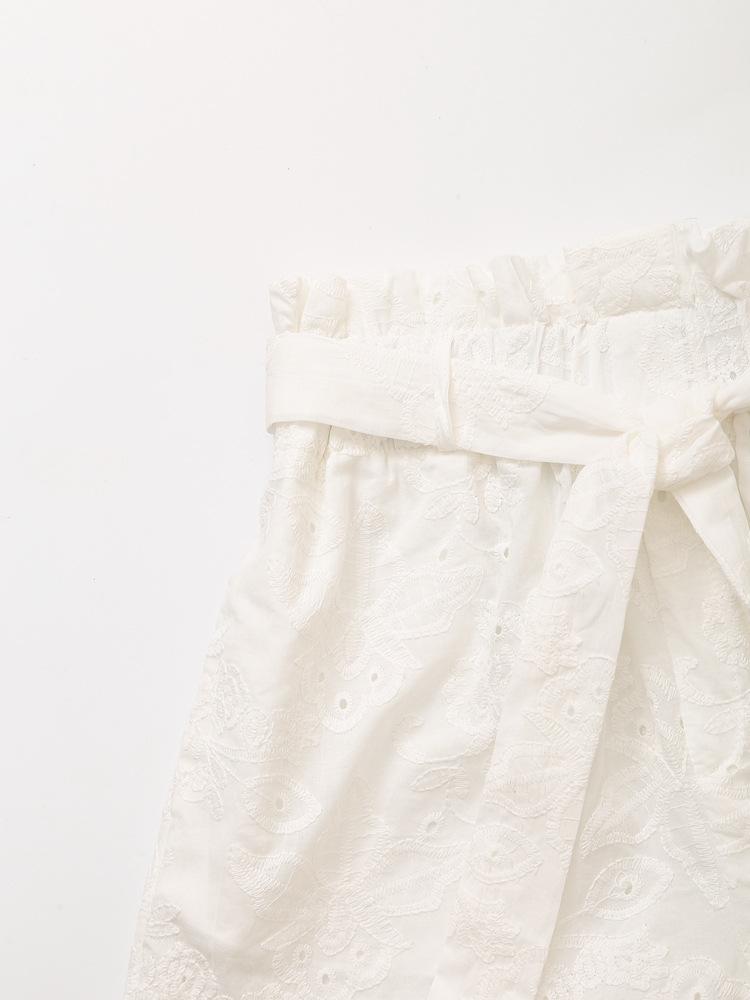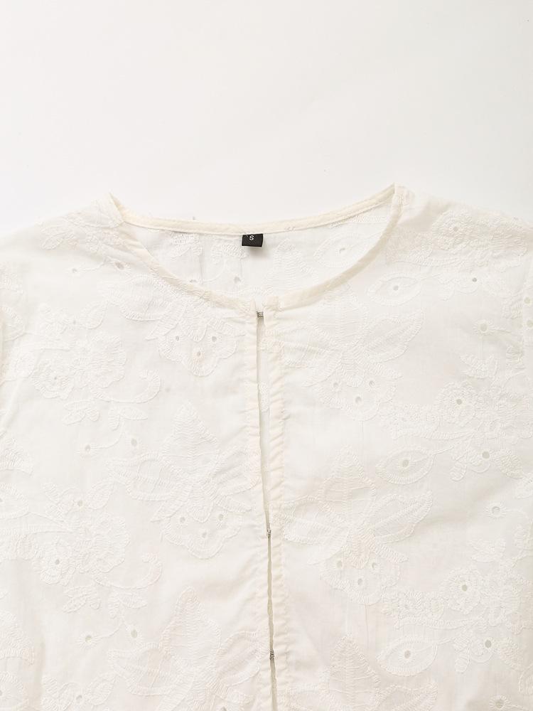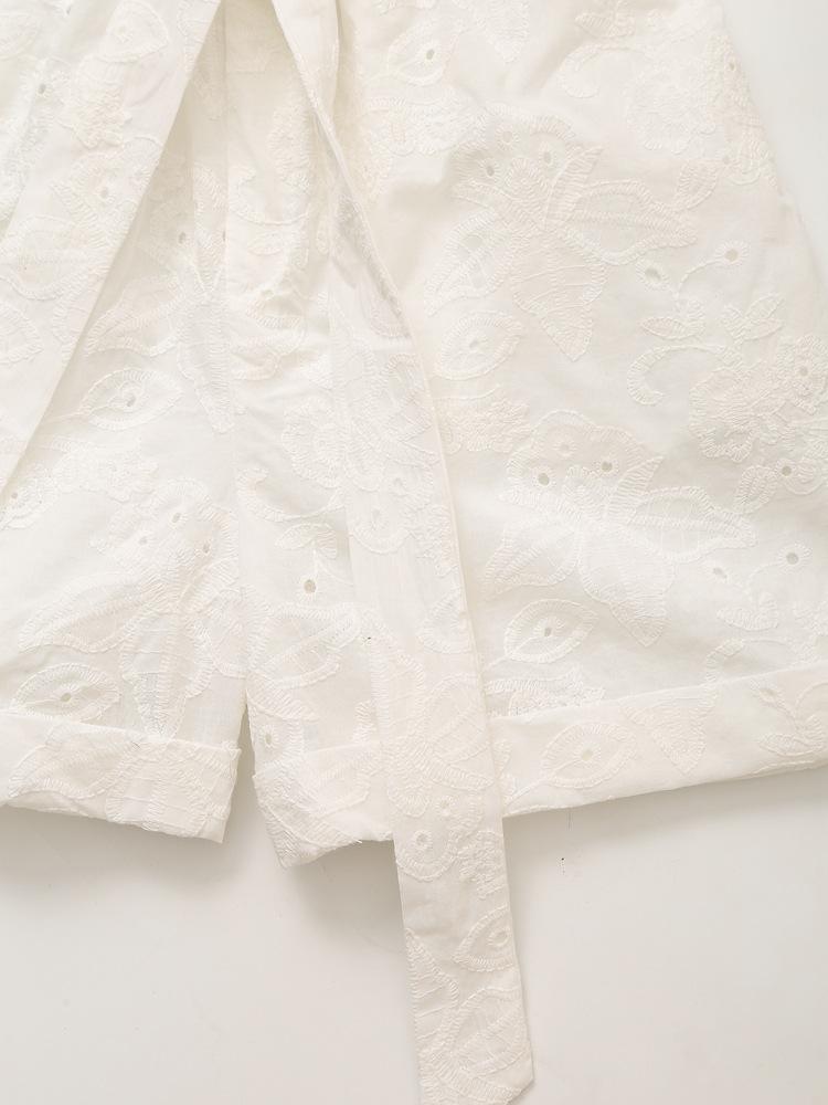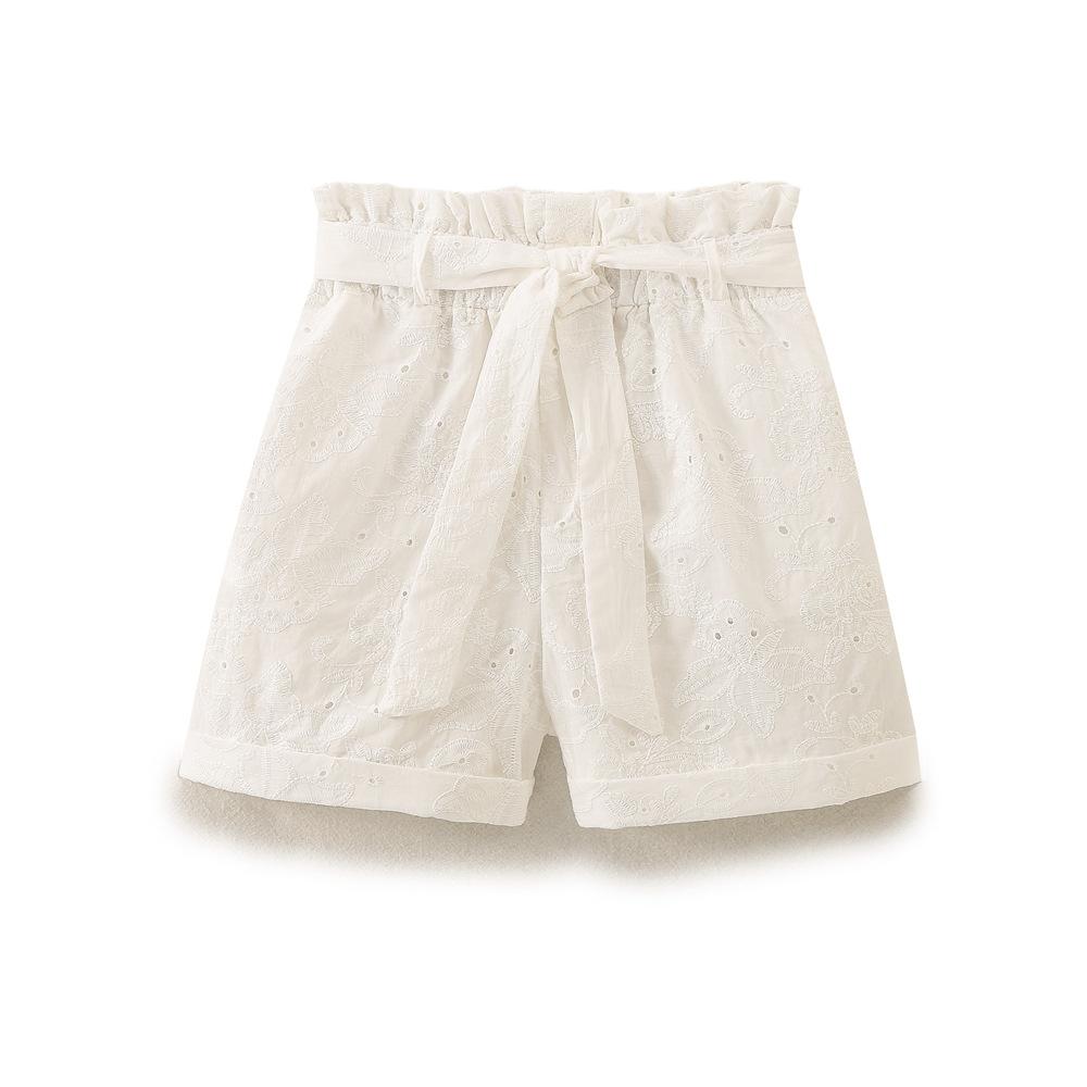 Aliexpress Exportación Transfronteriza Ropa Europea y Americana 2025 Verano Nuevo Blanco Estilo Lujuria Pura Camisa con Recortes Bordados Shorts