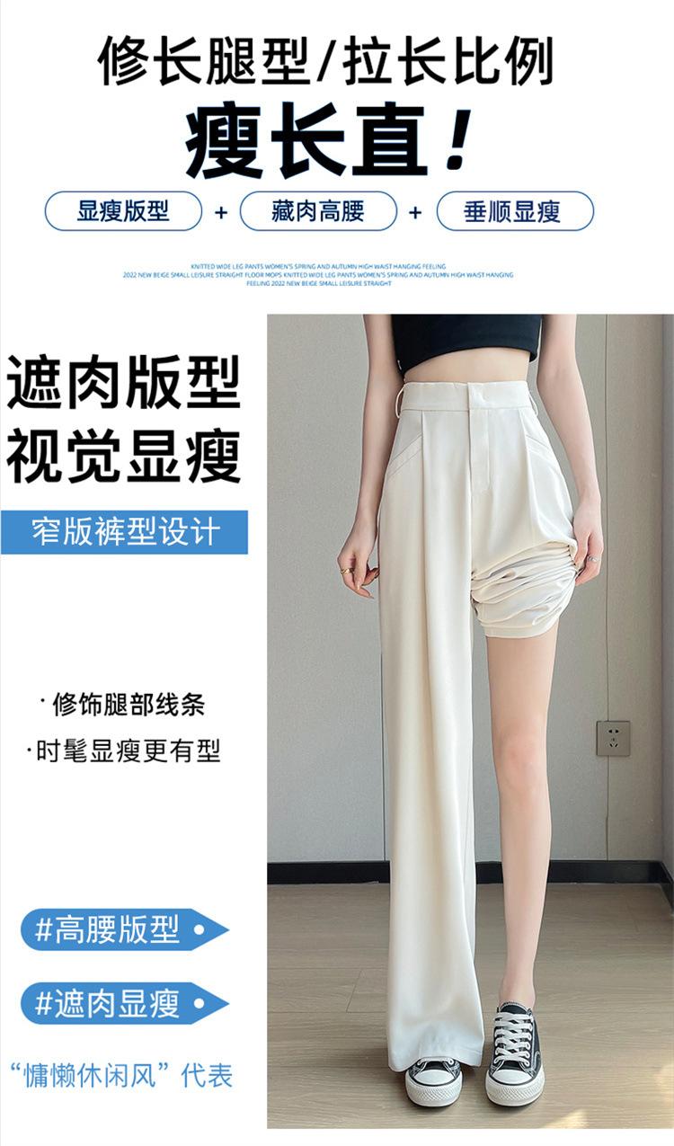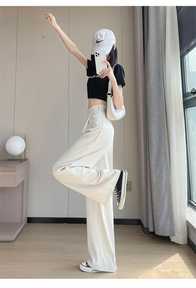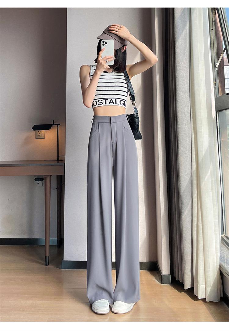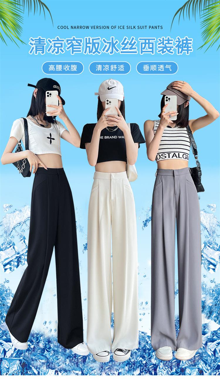 Pantalones de Traje Estilo Verano 2025, Pantalones de Pierna Ancha Estrechos de Cintura Alta, Pantalones Rectos Delgados Casuales Hasta el Piso para Mujer, Modernos