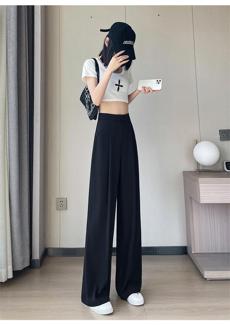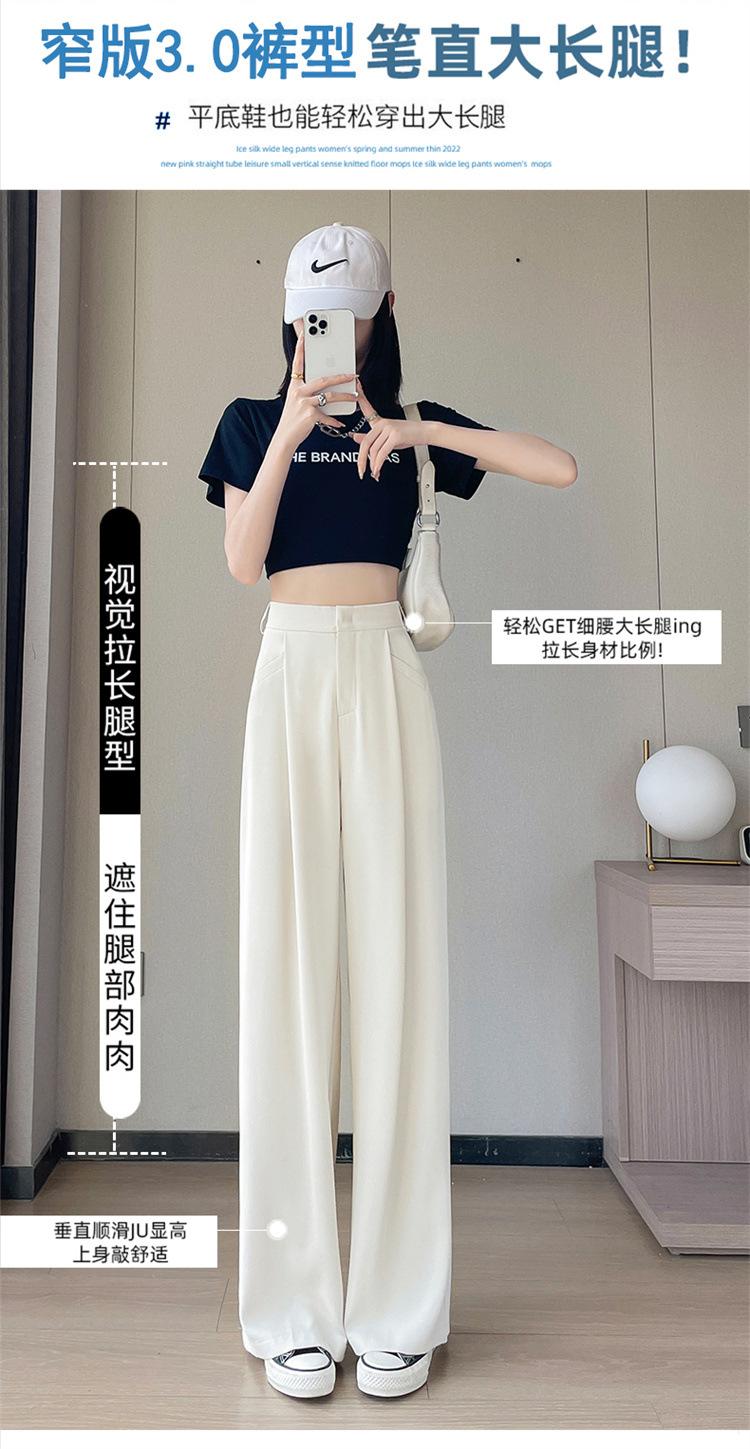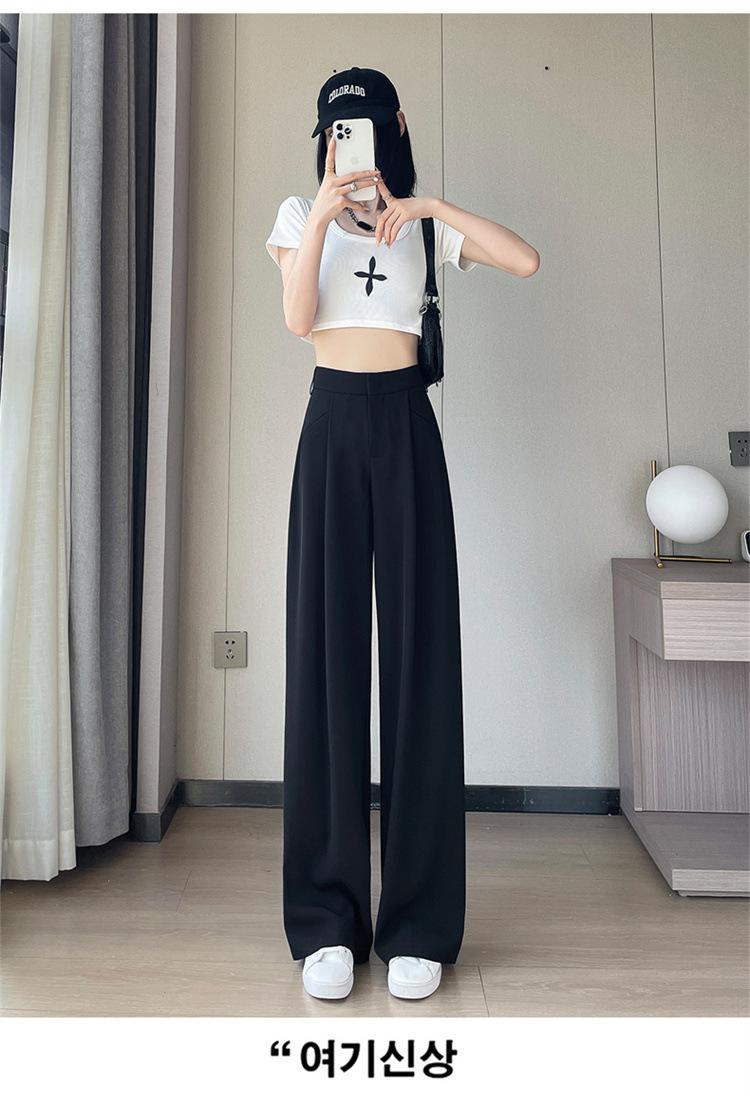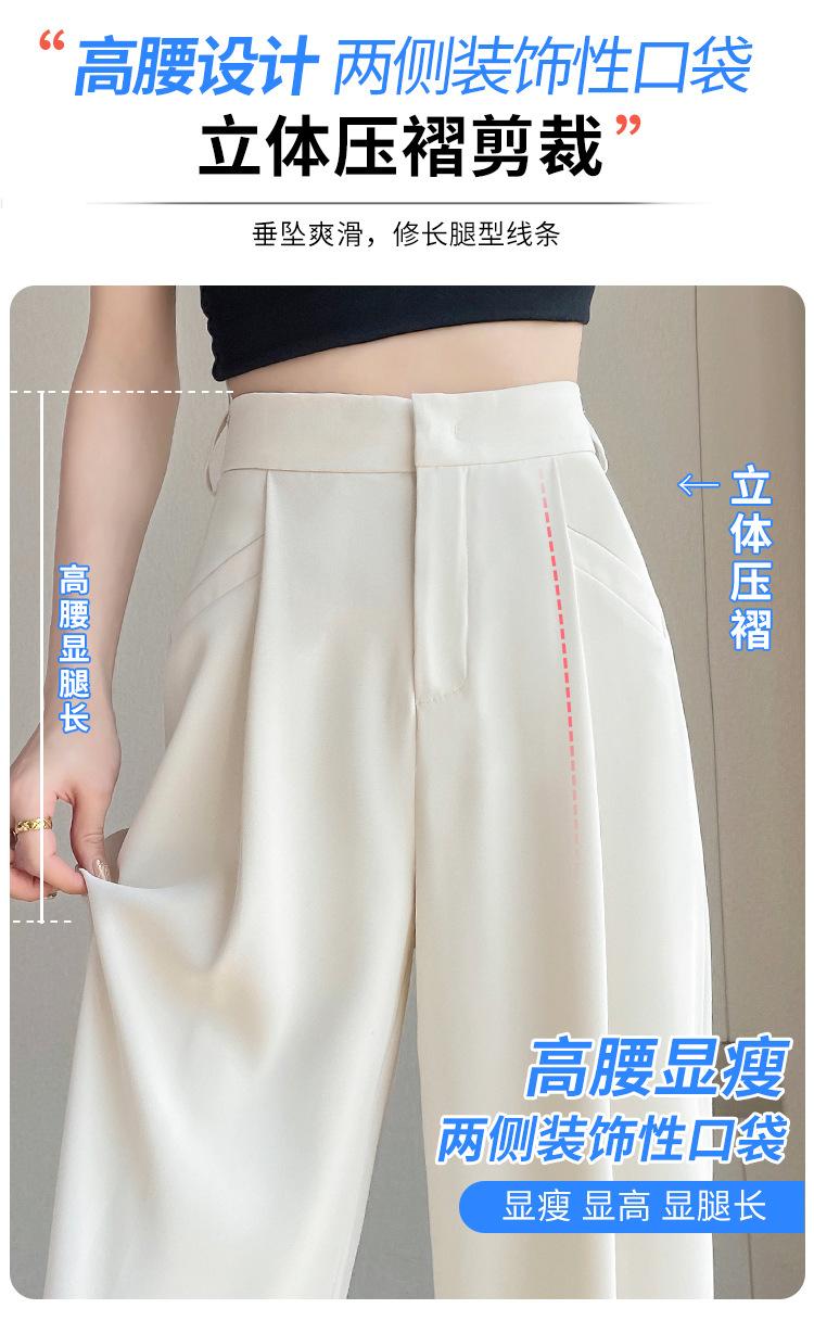 Pantalones de Traje Estilo Verano 2025, Pantalones de Pierna Ancha Estrechos de Cintura Alta, Pantalones Rectos Delgados Casuales Hasta el Piso para Mujer, Modernos