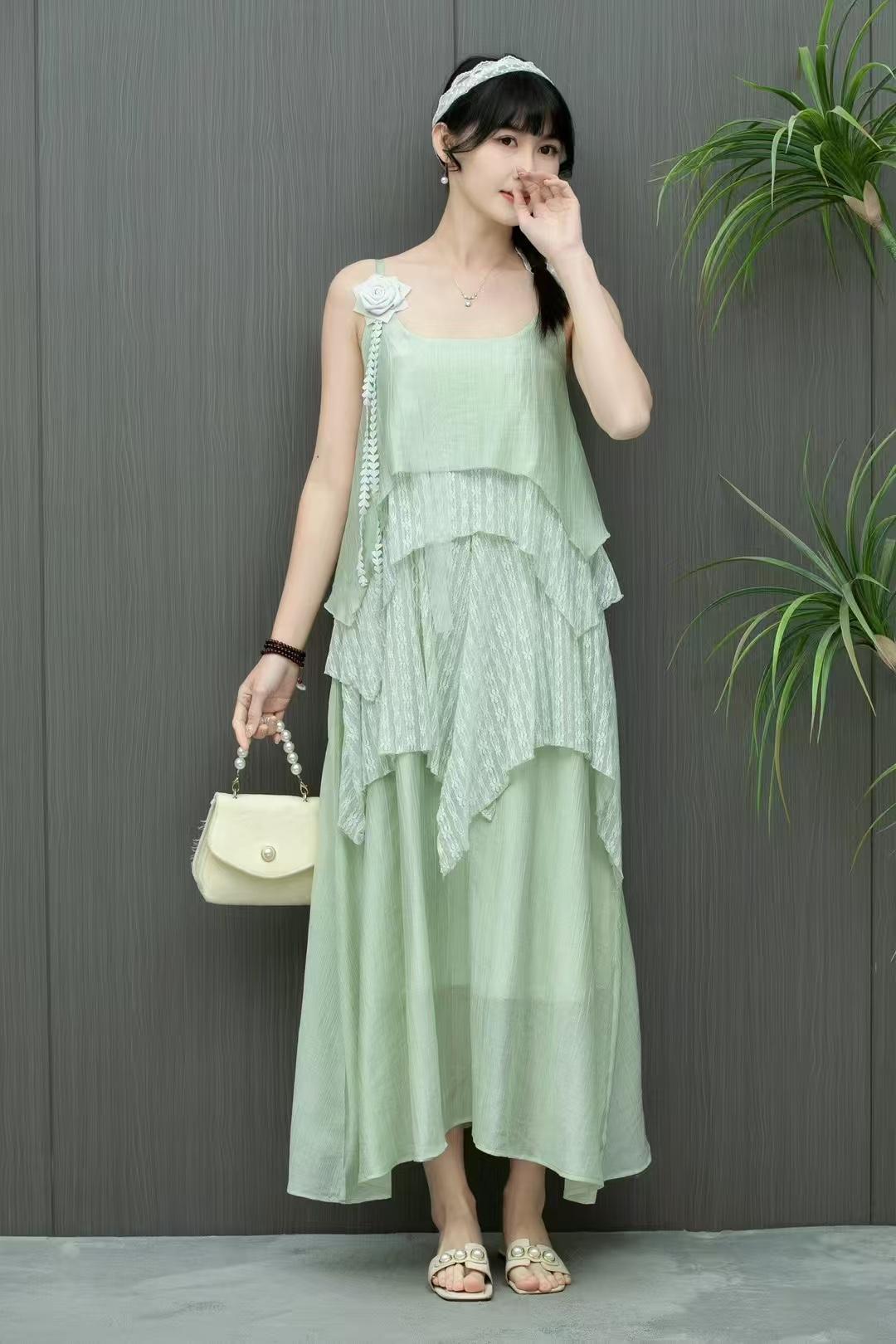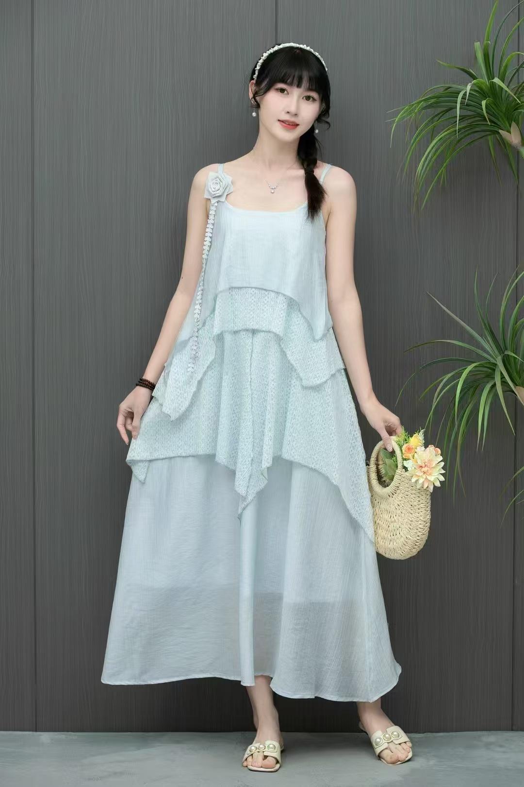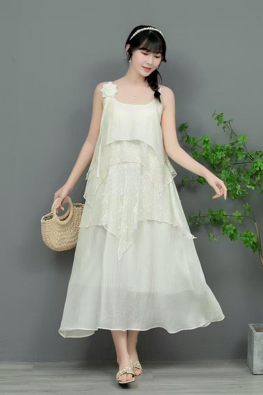 Encaje teñible anudado blanco diseño de costuras de algodón lycra nueva falda de viaje Yunnan Lijiang Sanya Xinjiang