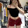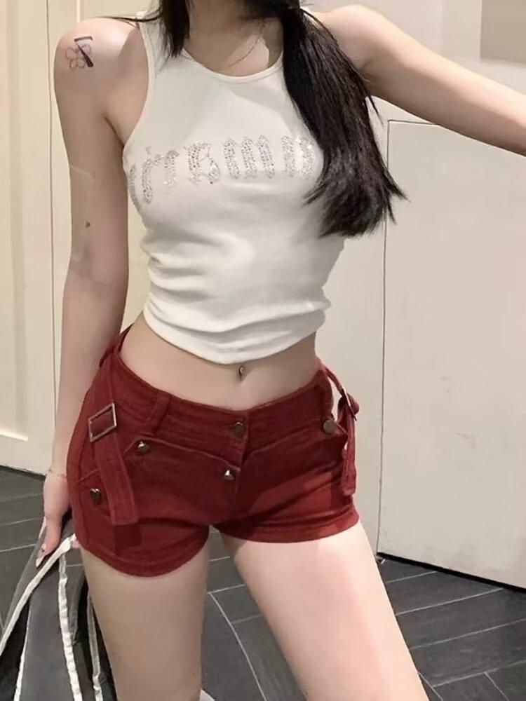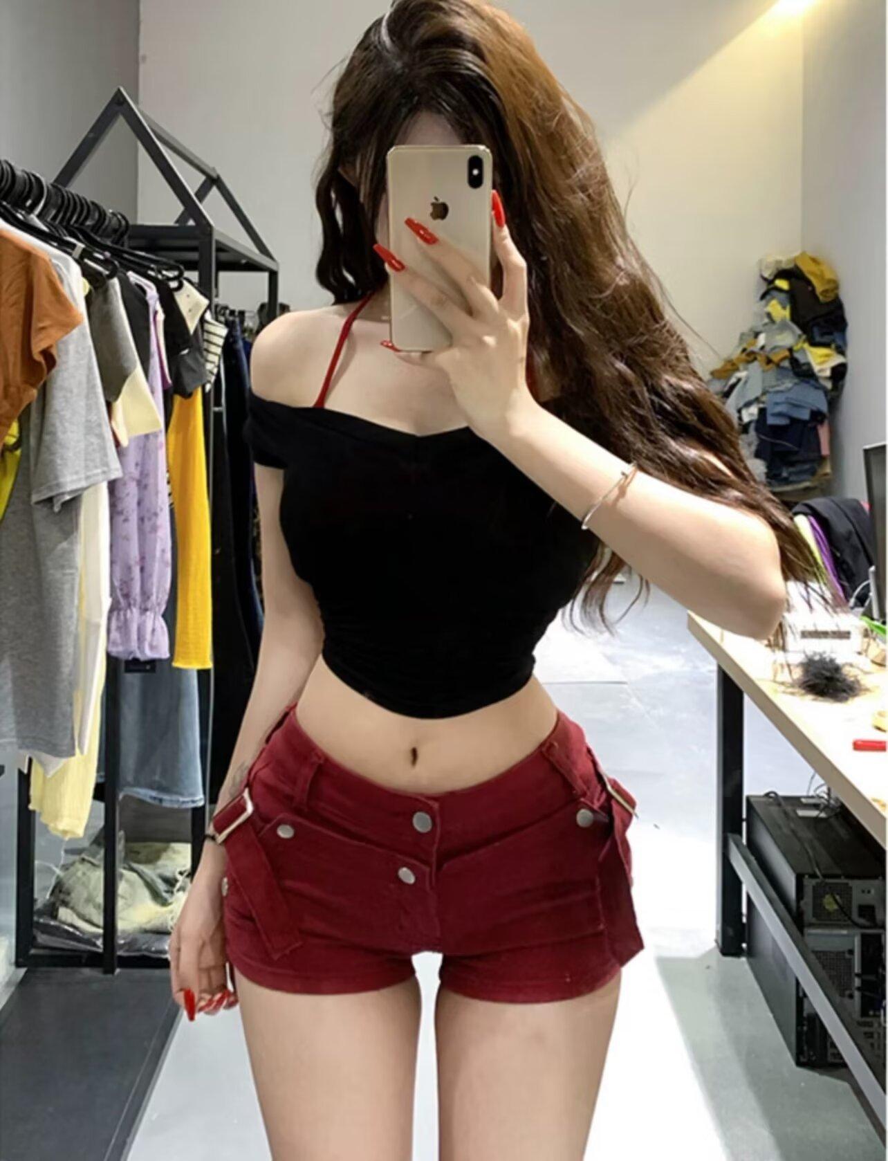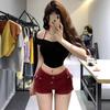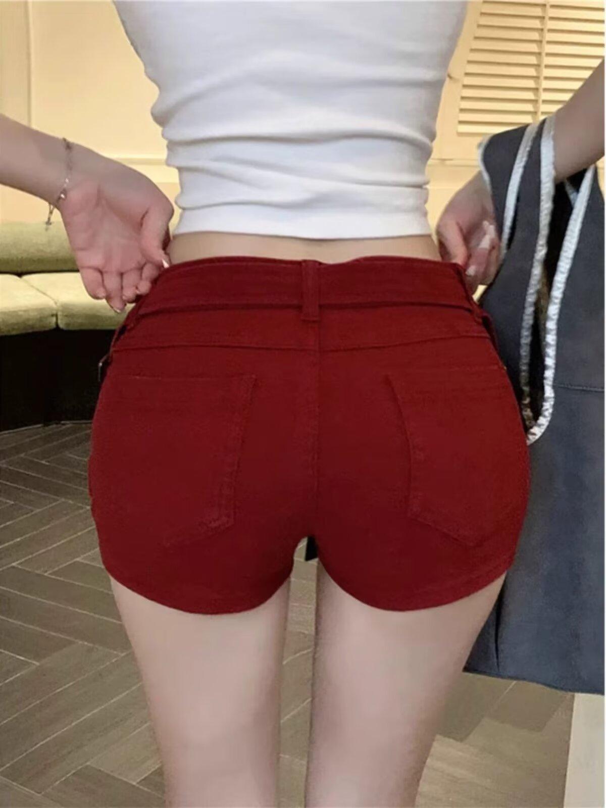 Vestido de Trabajo Retro Americano de Cintura Baja Fong Shorts de Mezclilla para Cadera para Mujer Verano 2025 Nuevo Sexy Ajustado Hot Pants