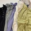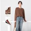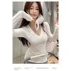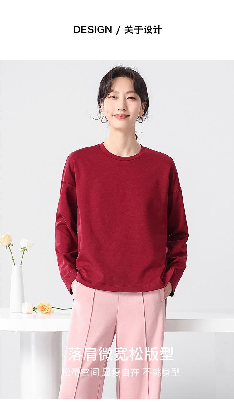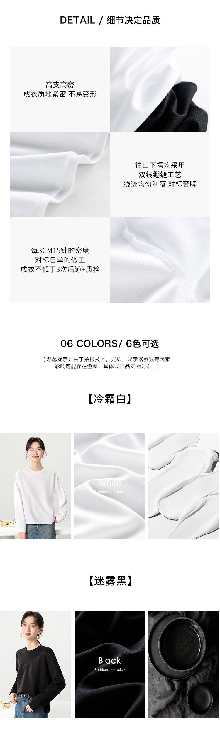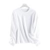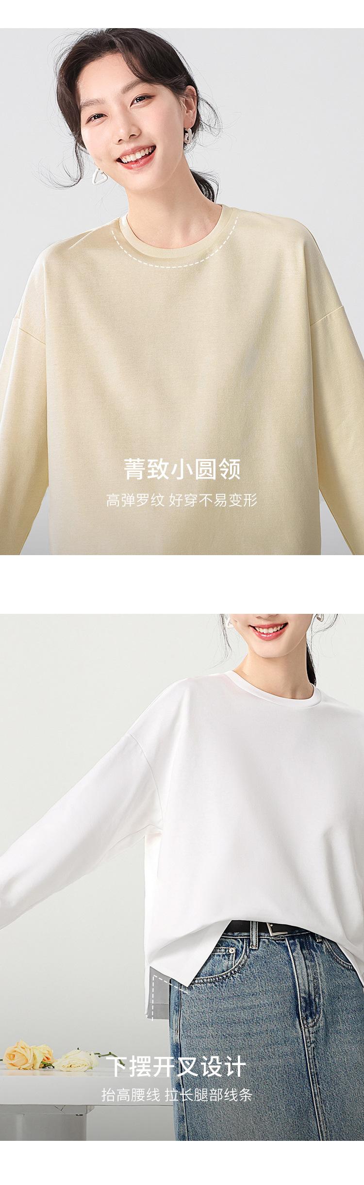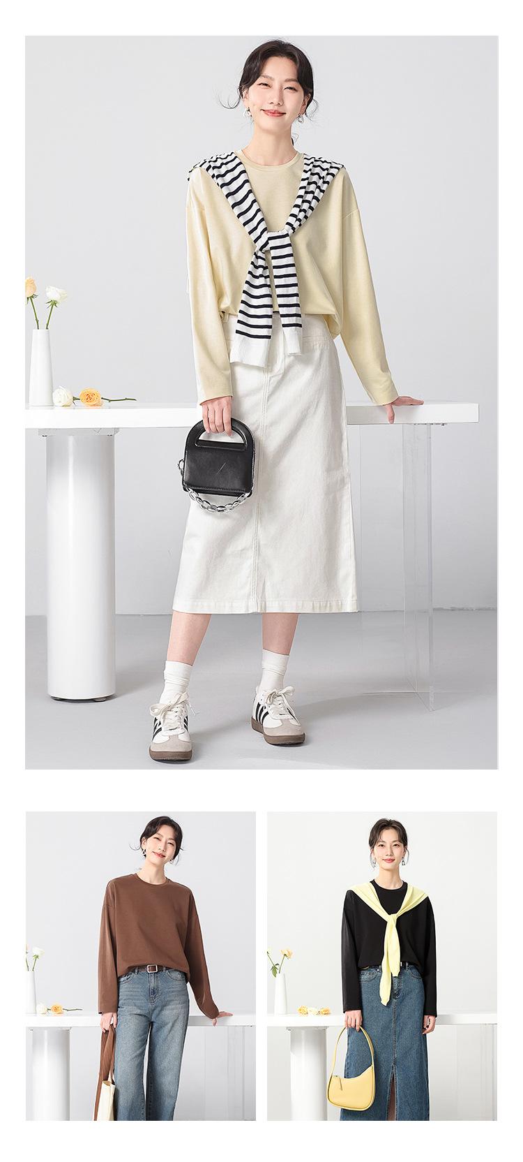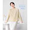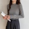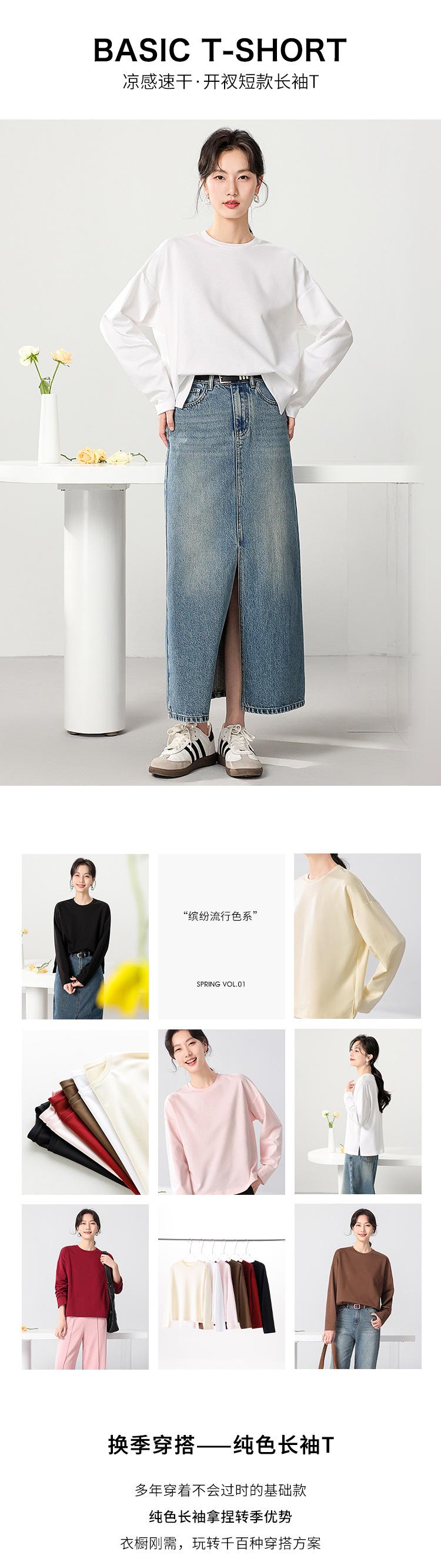 [Hengjia CF] Camiseta de color liso apilada para mujer, holgada, sencilla, fresca, con abertura, cuello redondo, adelgazante, manga corta y larga.