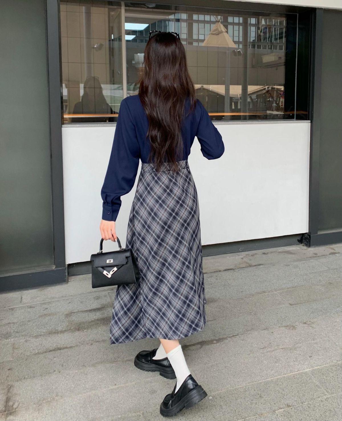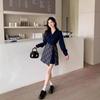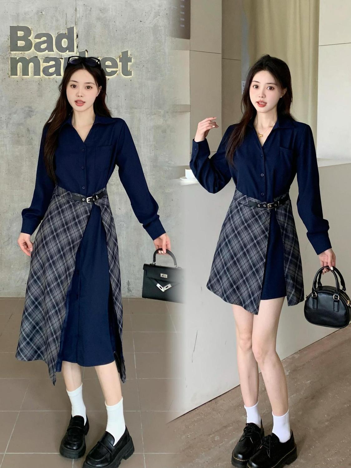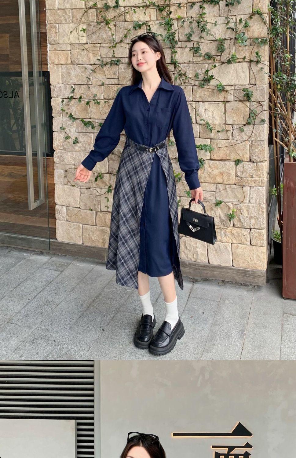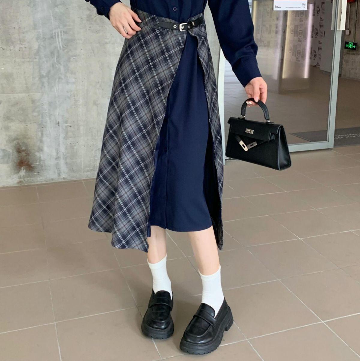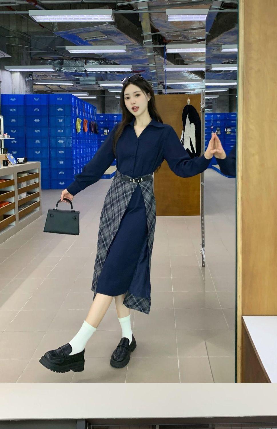 Vestido camisero de dos piezas con diseño de moda y falda corta a cuadros elegante de estilo francés para mujer de principios de primavera