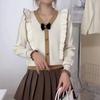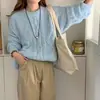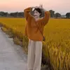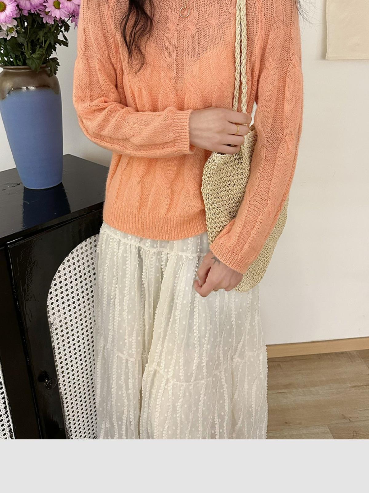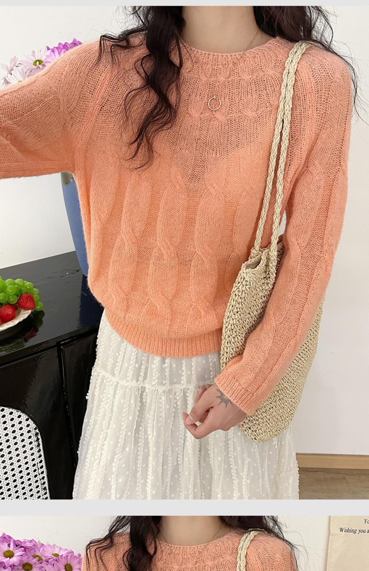 Suéter de manga larga con cuello redondo de mohair de color liso, hermoso estilo francés, para mujer, primavera y otoño, estilo único, sencillo y holgado.